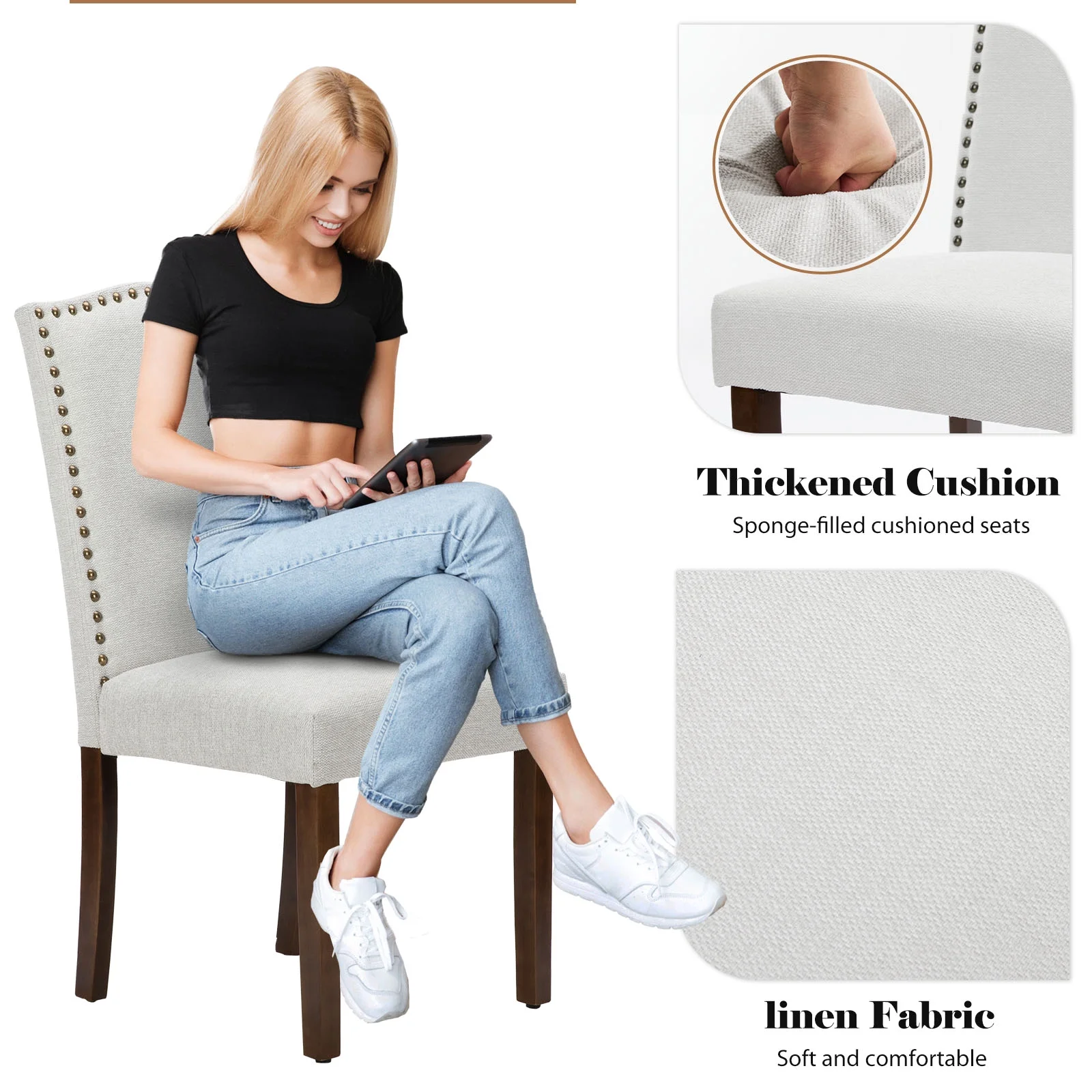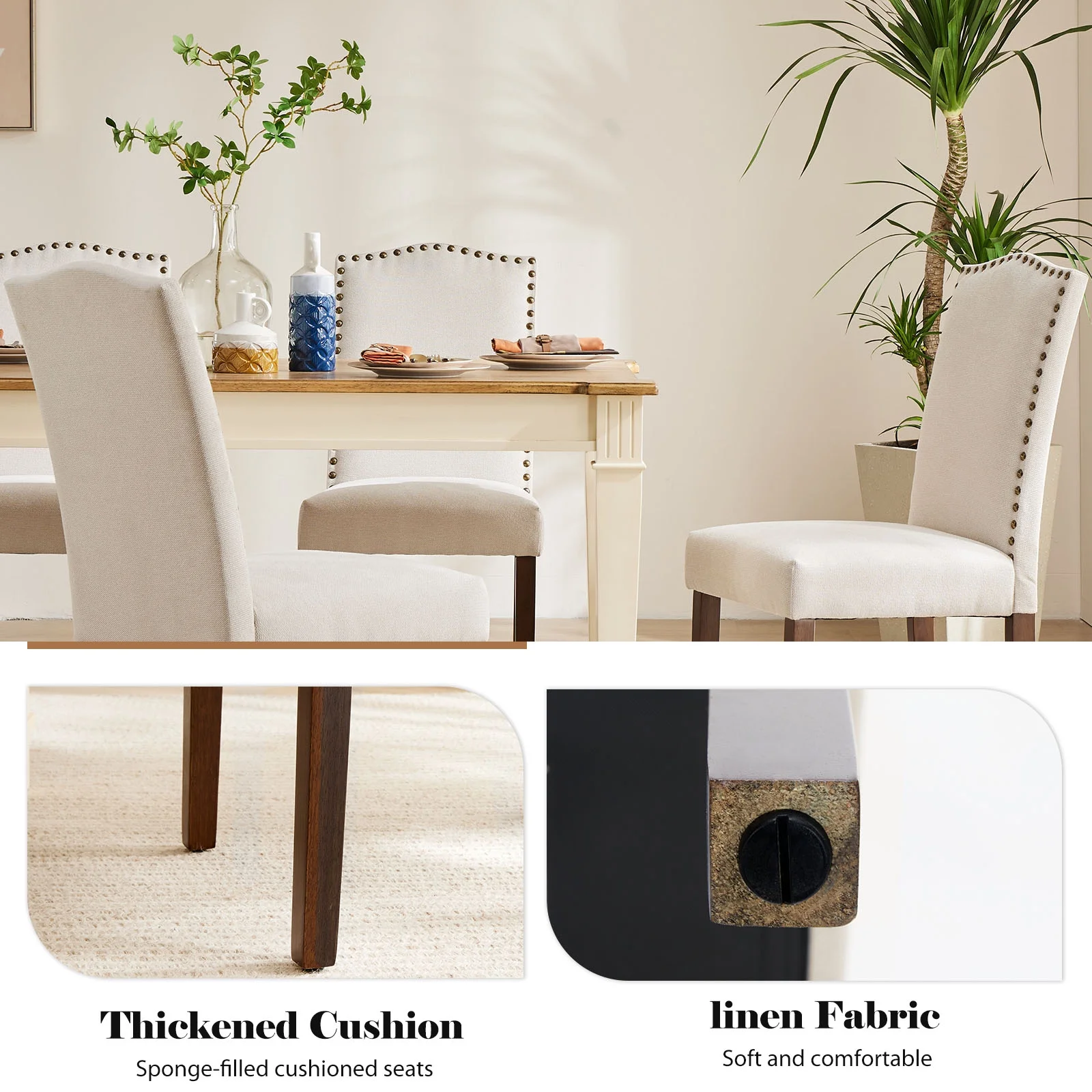 Thanks to their streamlined silhouette and sleek shape, make these dining chairs have an elegant modern style that's just right for your home decor. The living room chairs are designed with heavy-duty rubberwood legs for optimum support to guarantee solidity and durability. Our Dining room chairs have soft padded cushion seats covered in linen fabric which is breathable and comfortable, and easy to clean. Thick sponge filling of the backrest of the seat offers a comfortable sitting experience. The modern dining chair can be widely used for daily dining or special events like meetings, wedding banquets, and celebrations, as a side chair or dining chair in the dining room, living room, meeting room, hotel, restaurants, or any other ceremonial decorations. Don't miss the chance to take edx brand's dining chair home!