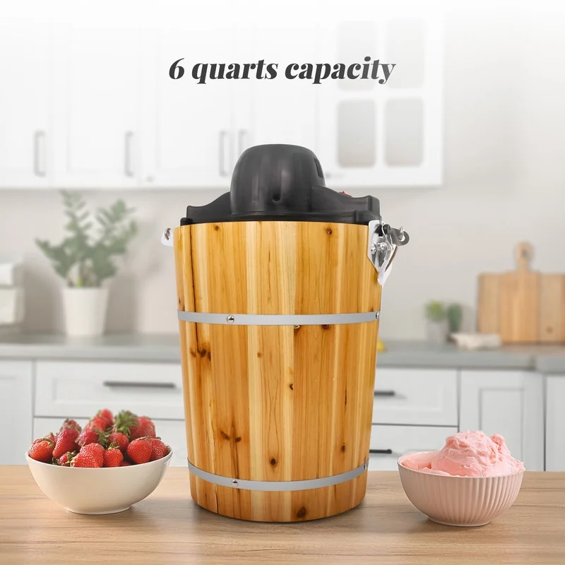 - Makes 6 quarts of cold and creamy ice cream, gelato, frozen yogurt, or sorbet.