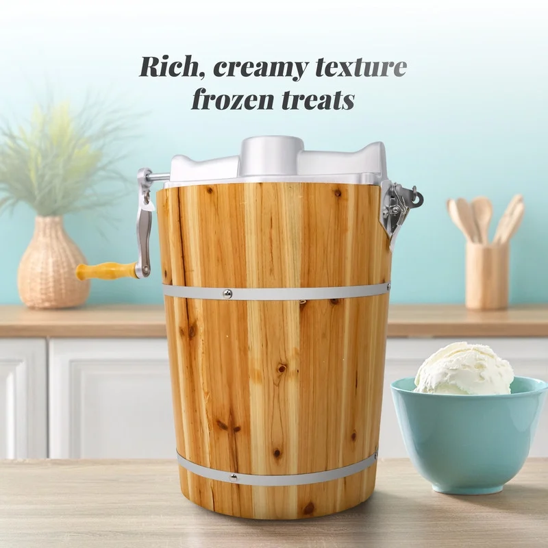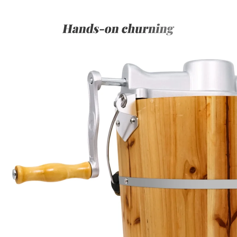 - Use included classic die-cast hand crank to manually churn to firmer consistency.