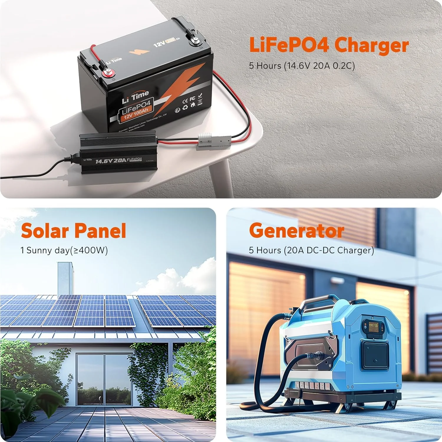 LiTime 12V 100Ah lithium iron batterie provides 4000+ cycles, will be your best choices for outdoor camping power. In order to protect the LiFePO4 battery's safety level and optimize the 12Volt battery performance, LiTime LiFePO4 battery has built-in 100A BMS. Waterproof and lightweight, make it perfect for solar home, RV, motorhome, recreational vehicle, trailer, campers, motor homes, off-grid applications. Each battery passes rigorous testing to ensure safety and performance. Benefit from expert support and a seamless experience with LiTime LiFePO4 batteries, backed by a dedicated team to assist you throughout your solar journey.