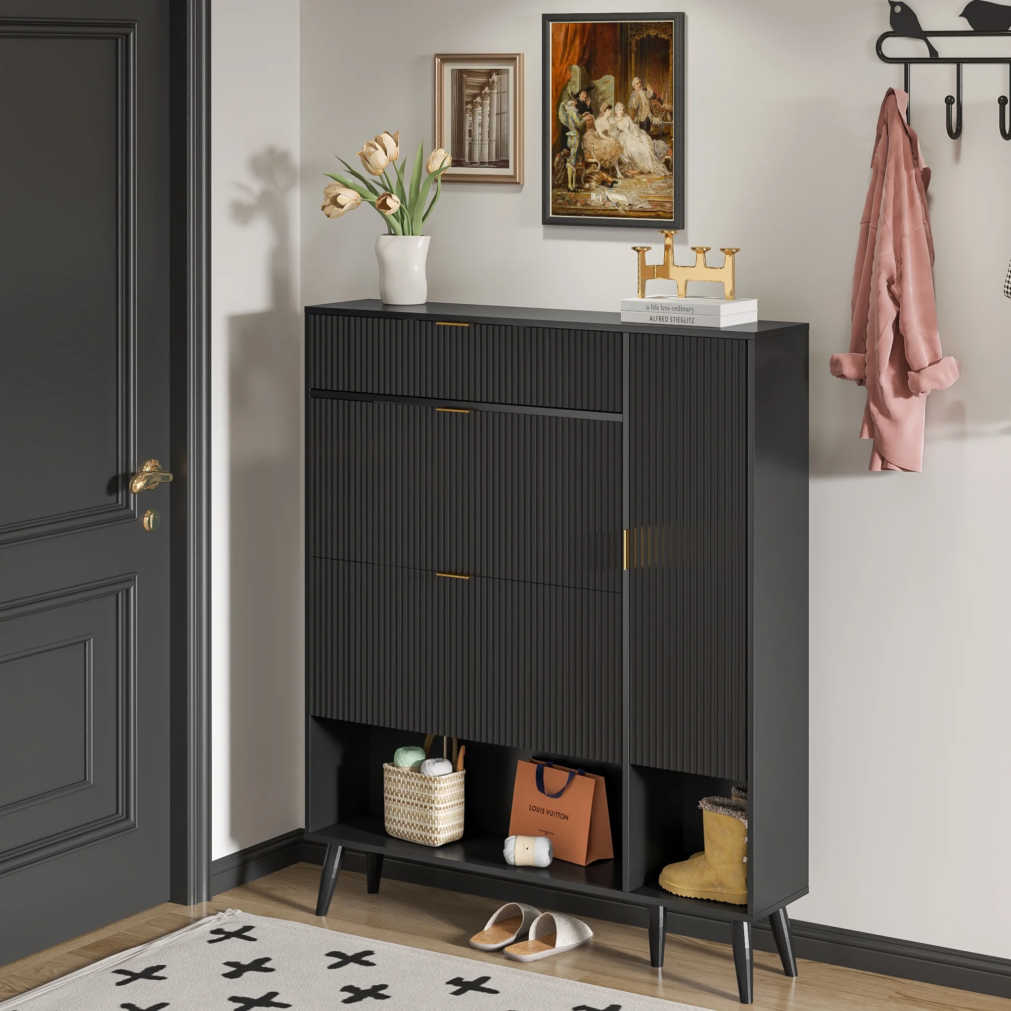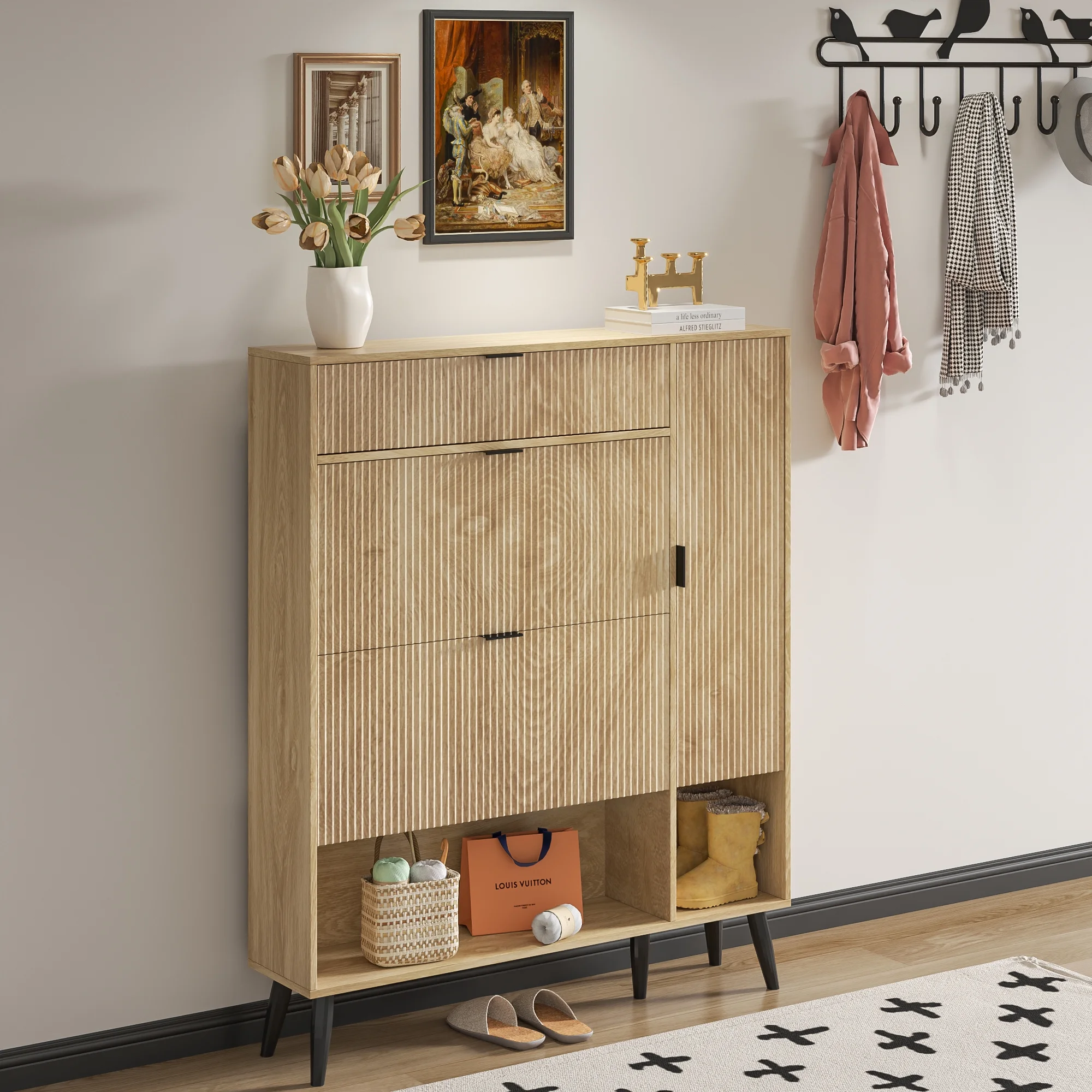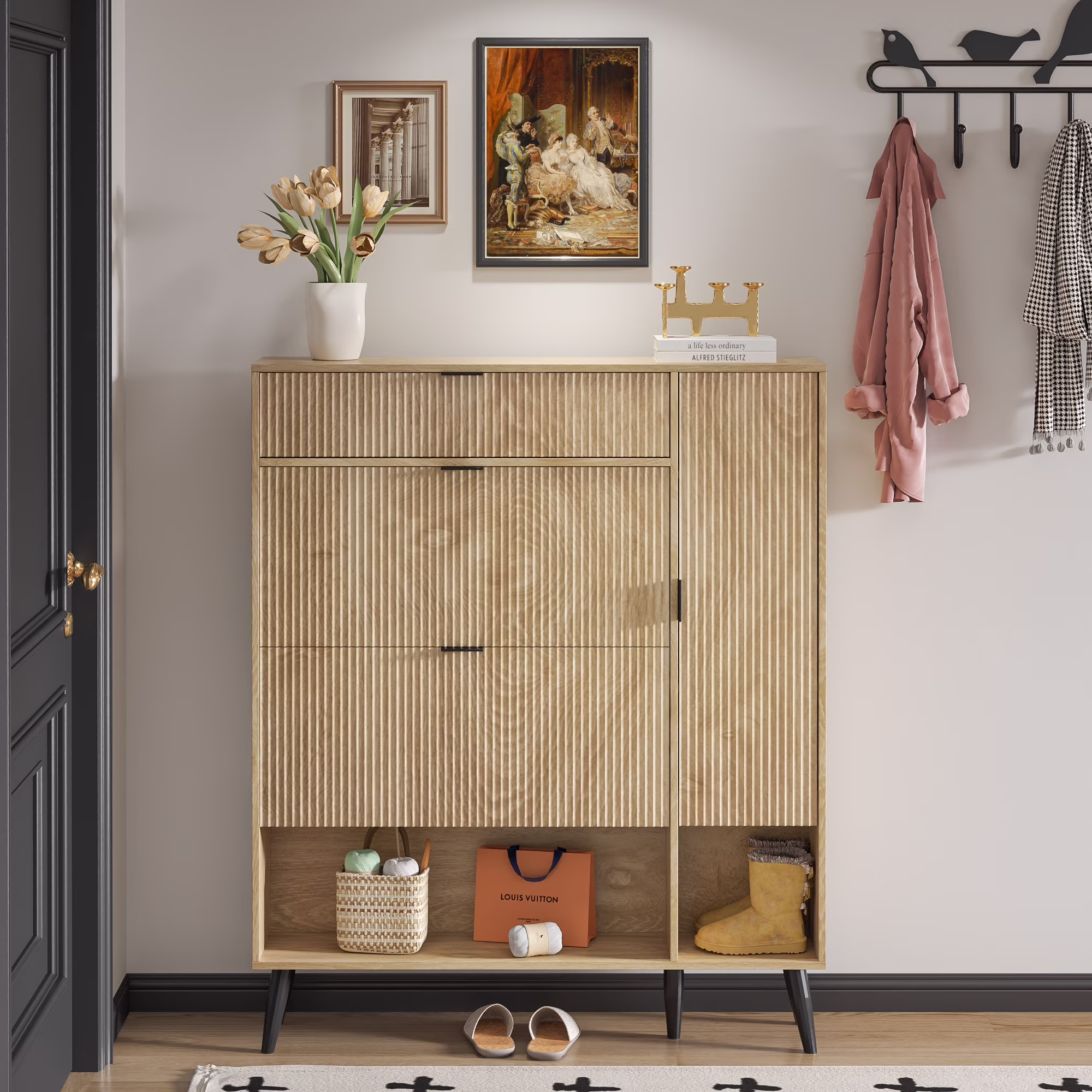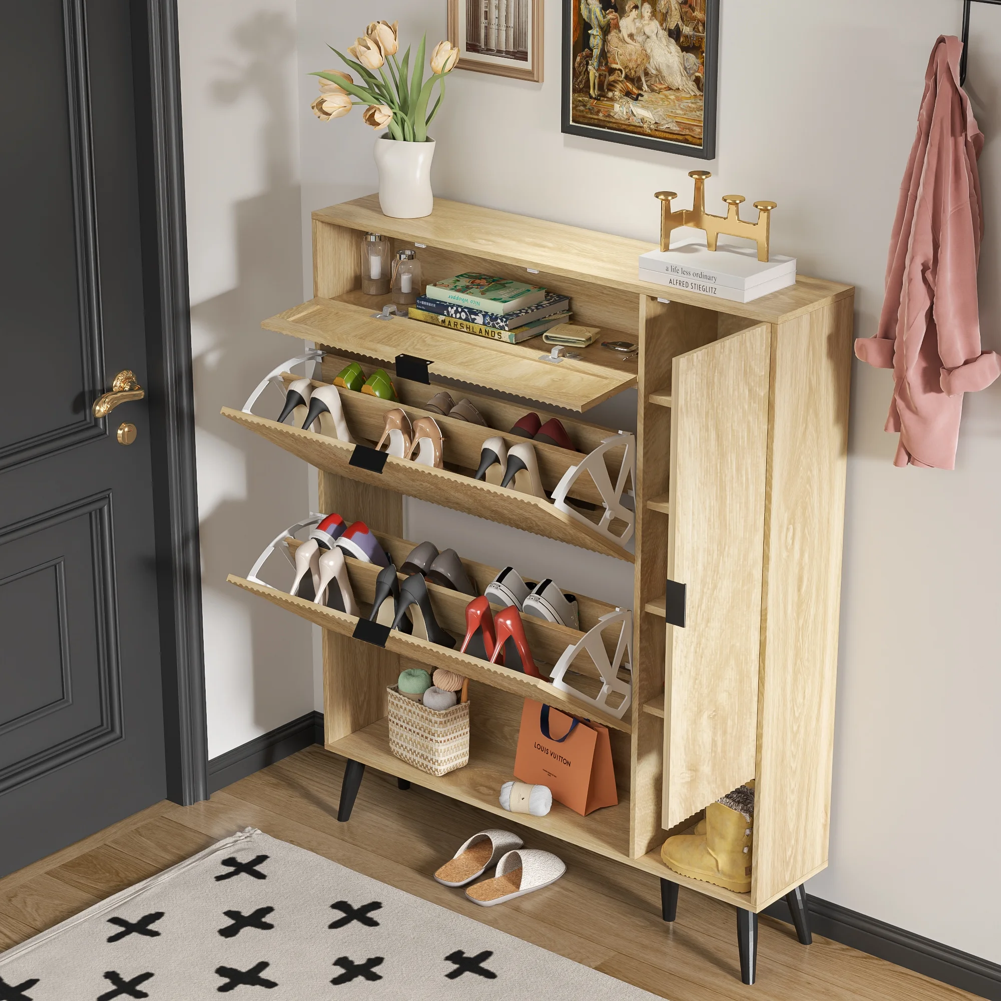 The freestanding shoe cabinet adopts a space-saving flip drawer design, which is easy to open and close.