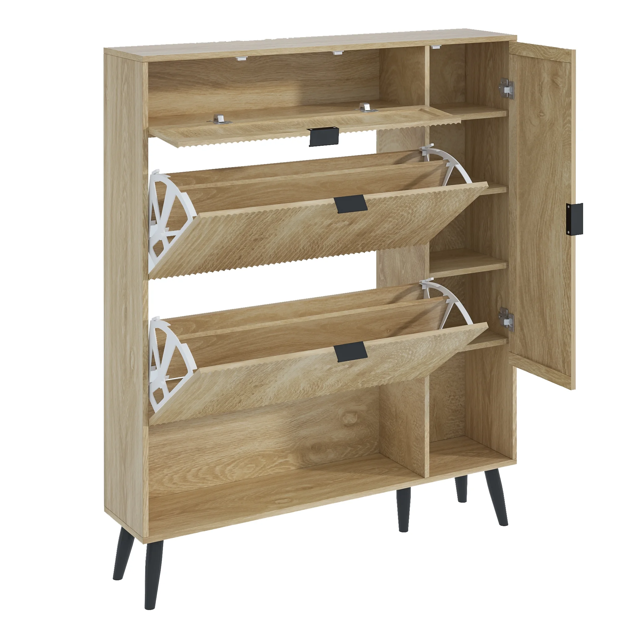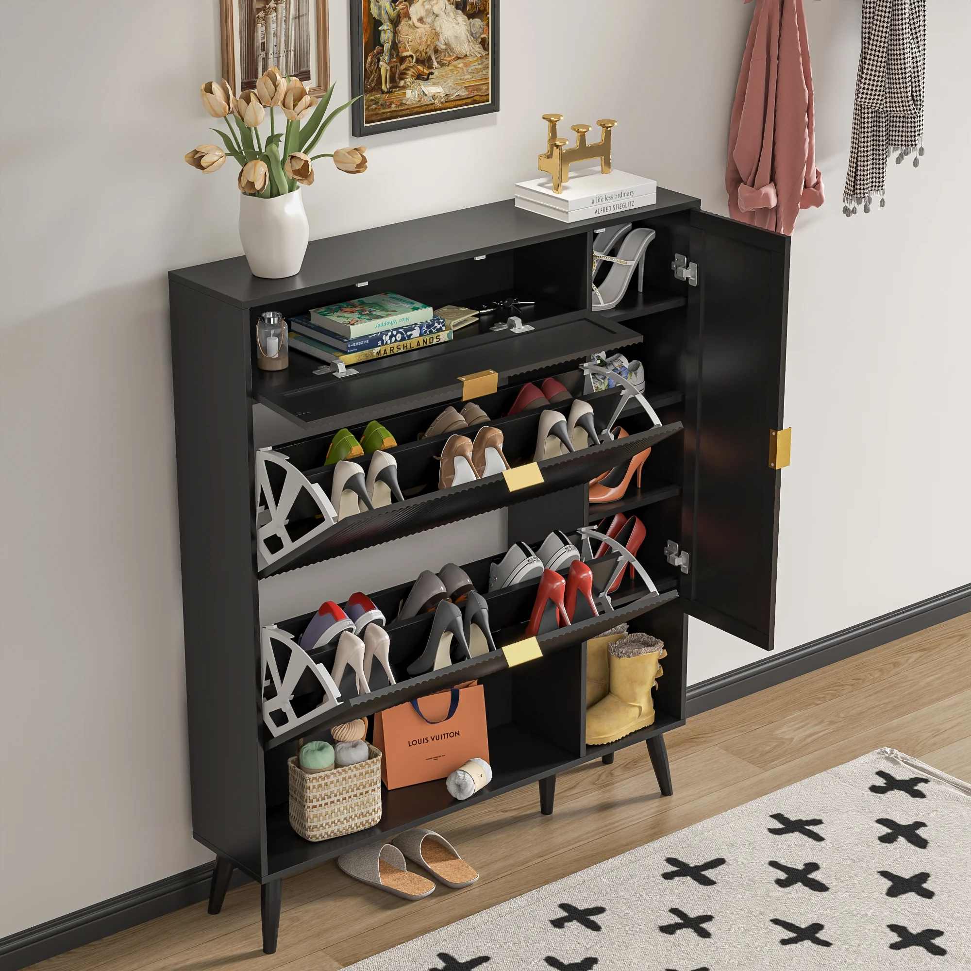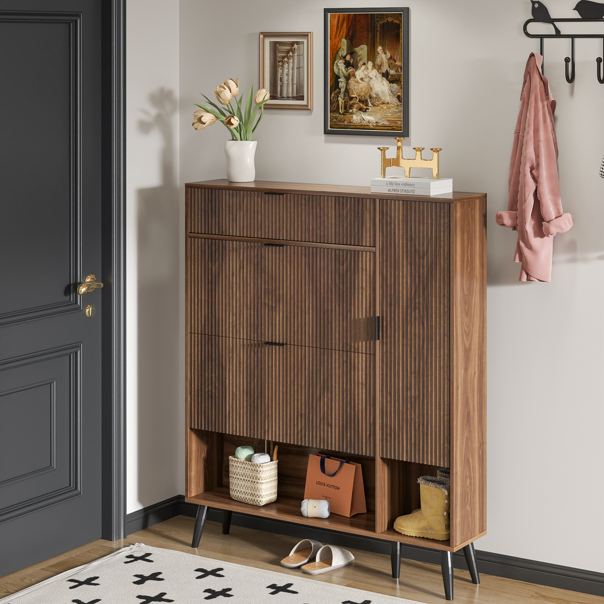 The freestanding shoe cabinet adopts a space-saving flip drawer design, which is easy to open and close.