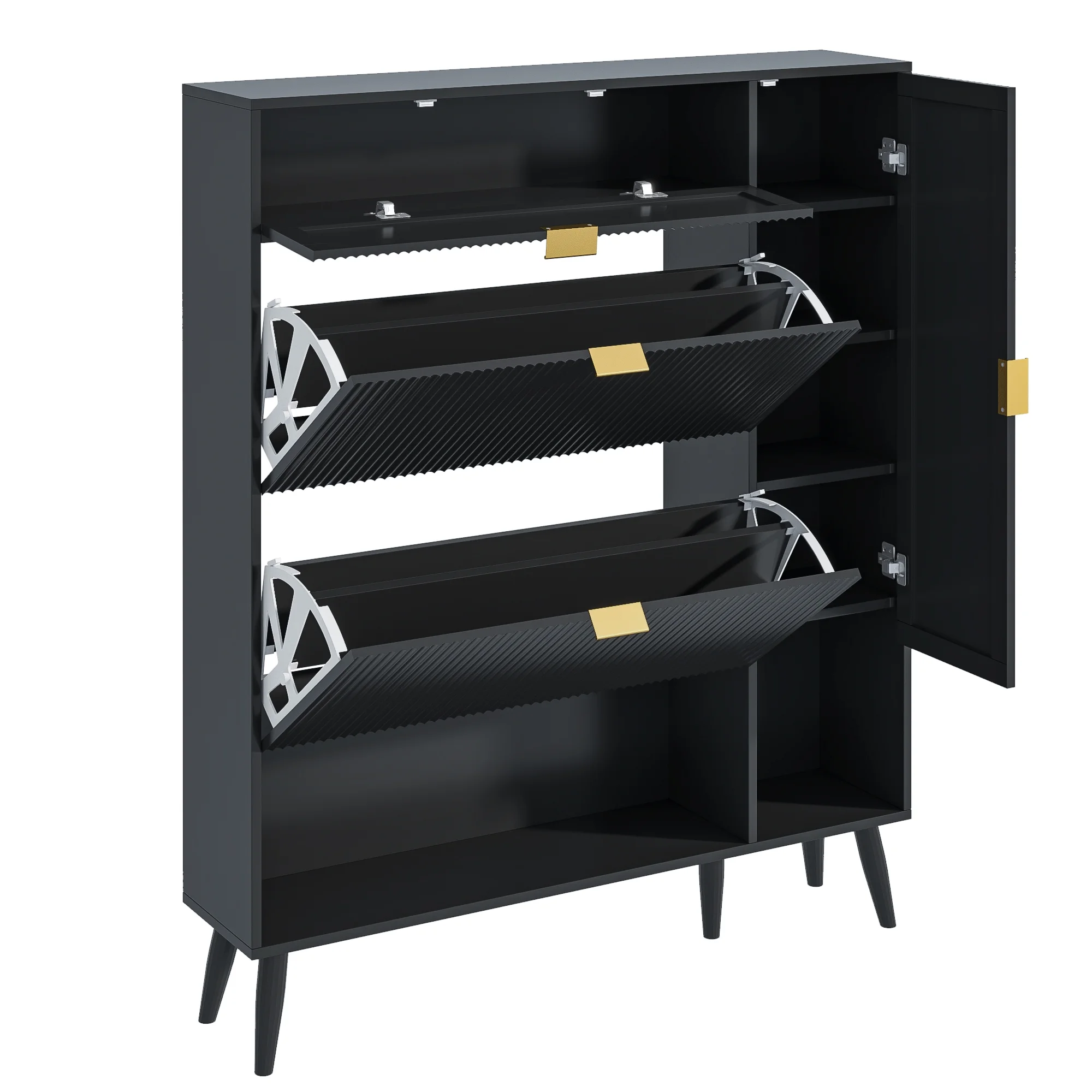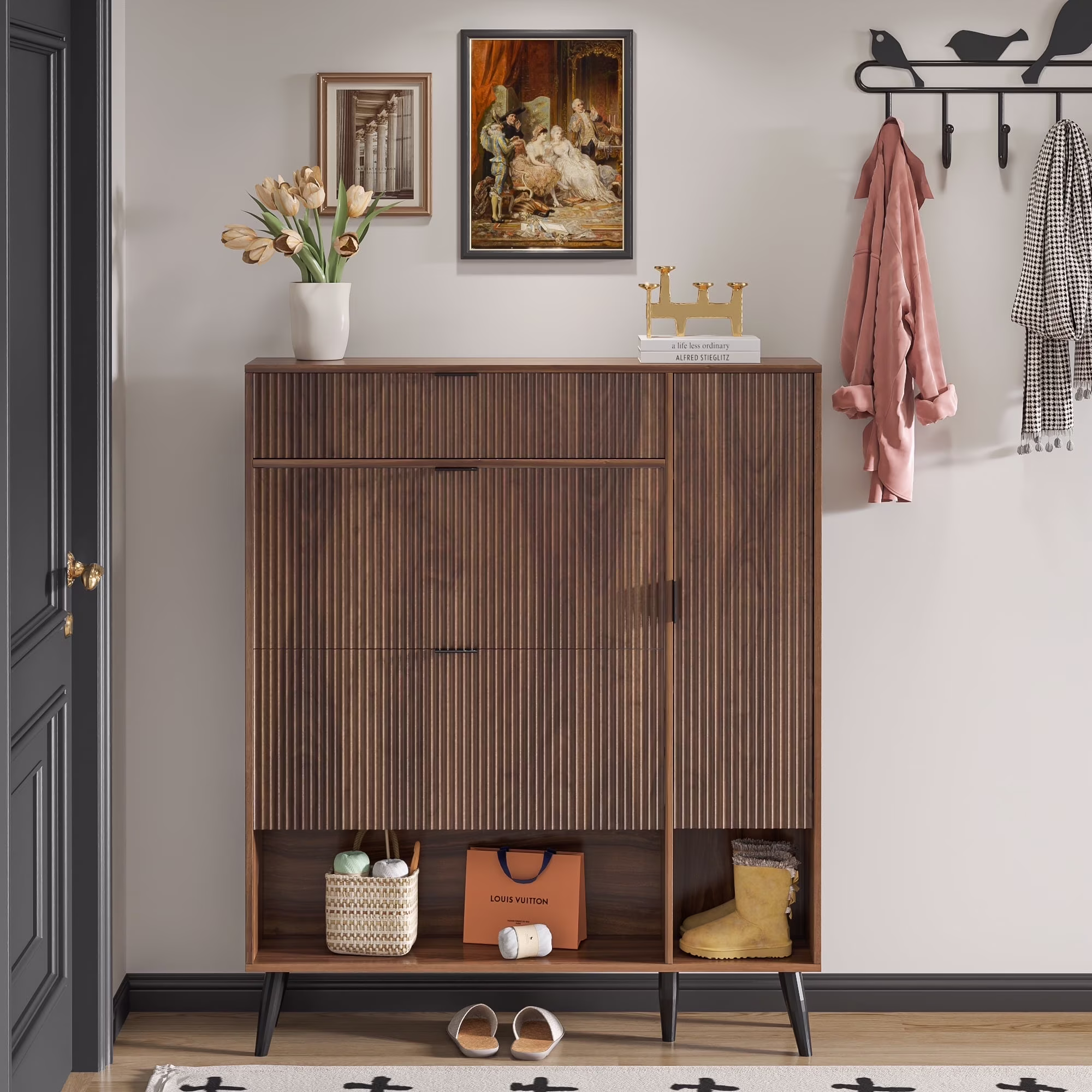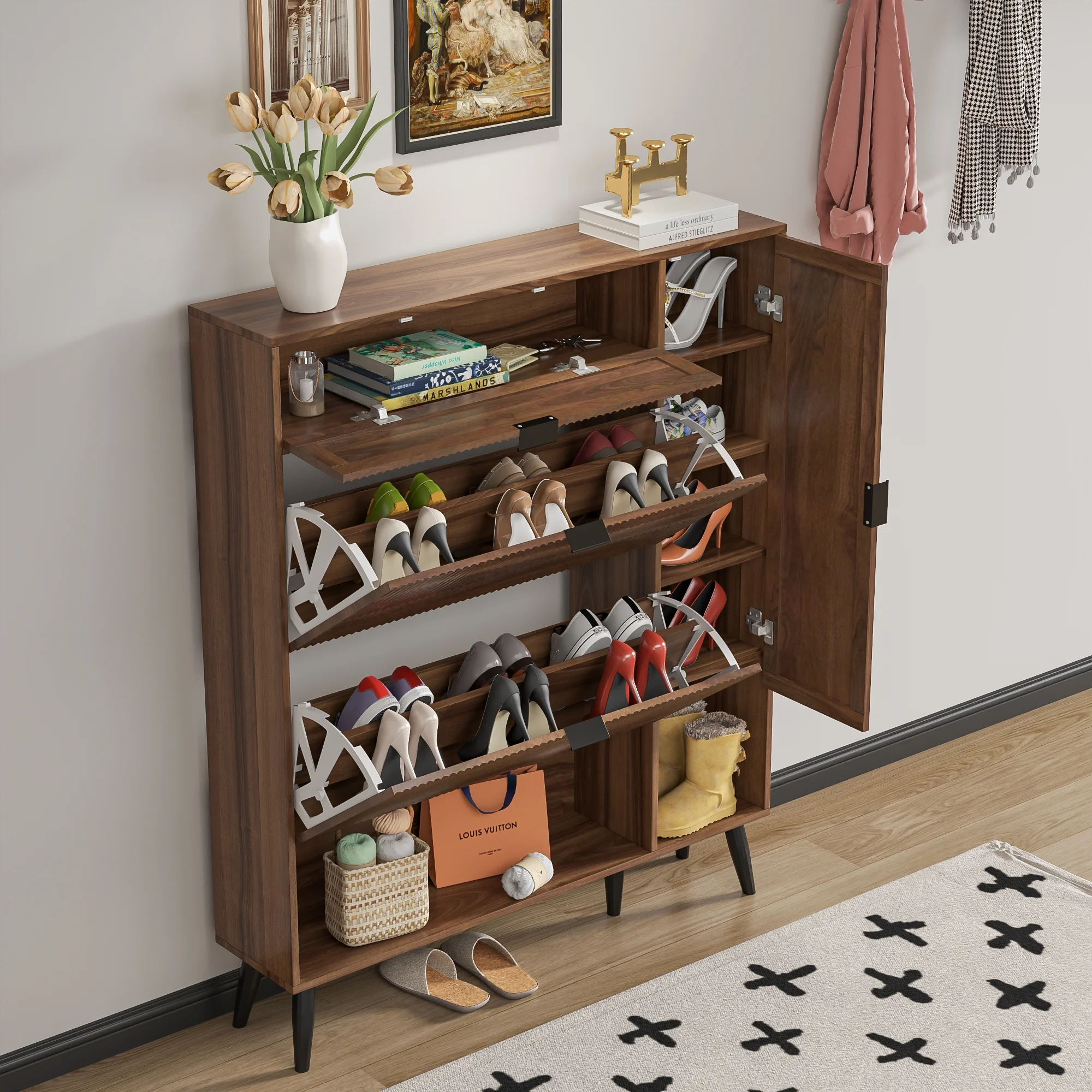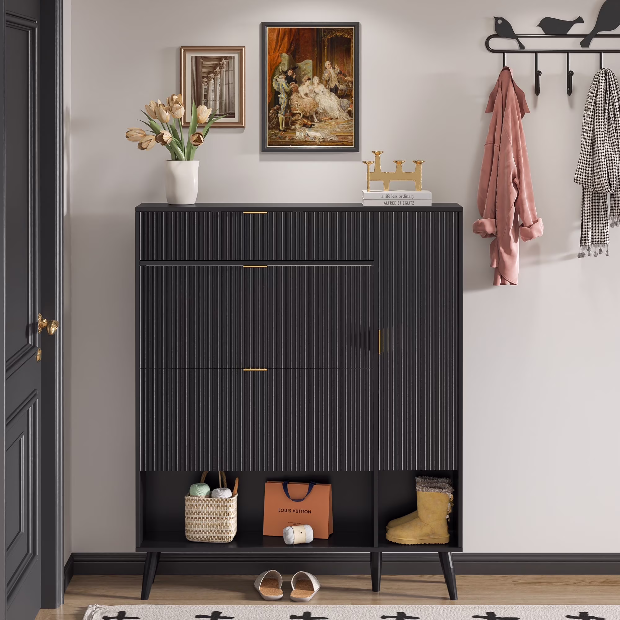 The freestanding shoe cabinet adopts a space-saving flip drawer design, which is easy to open and close.