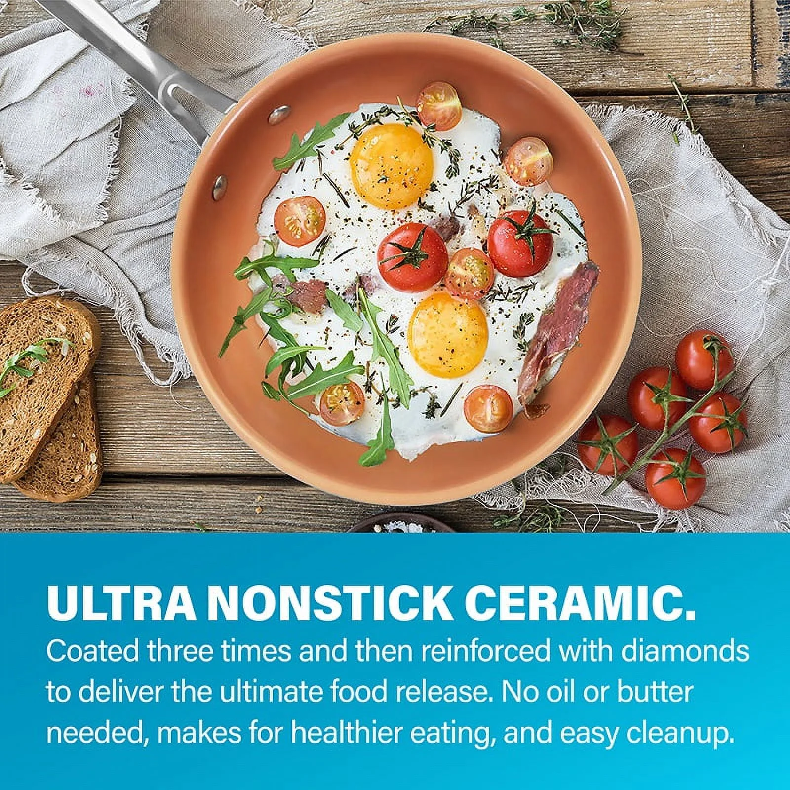 - ULTIMATE CERAMIC NONSTICK �C the Gotham Steel nonstick cooking surface is coated three times and then reinforced with diamonds to deliver the ultimate food release. No seasoning or even oil or butter needed, makes for healthier eating, and provides for a 1-2-3 cleanup.