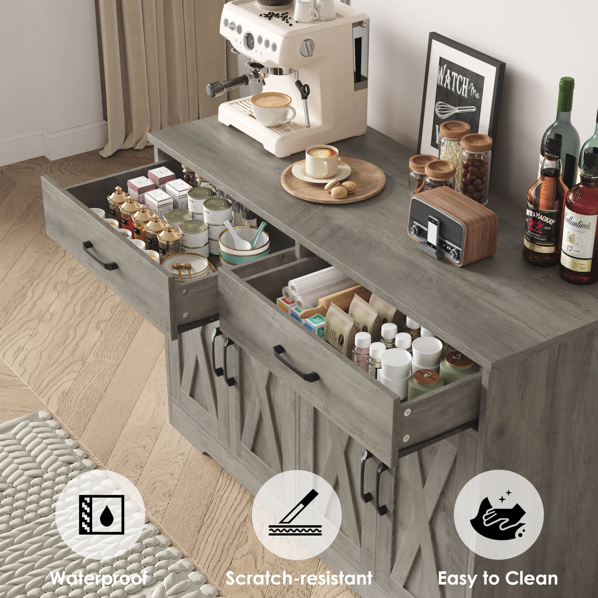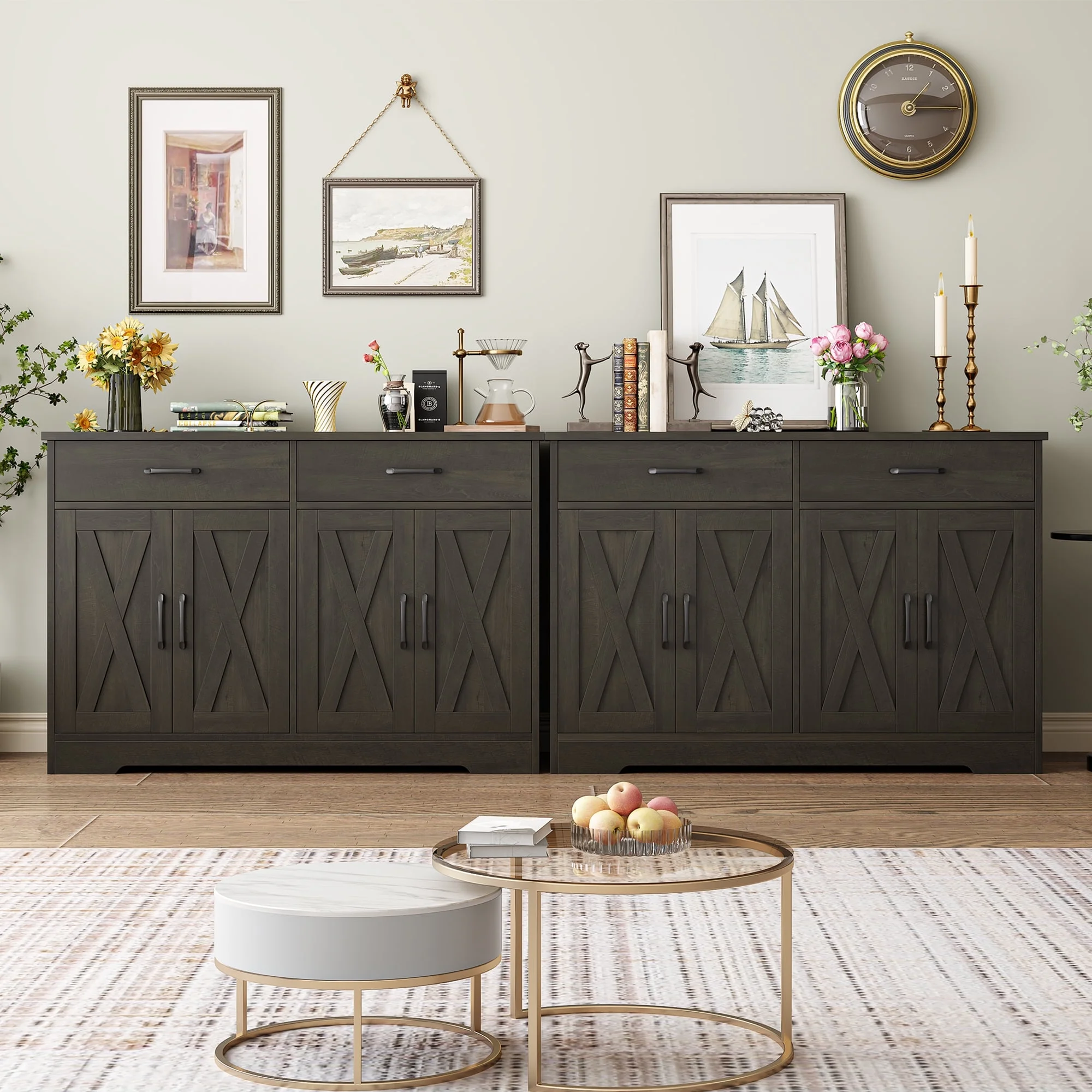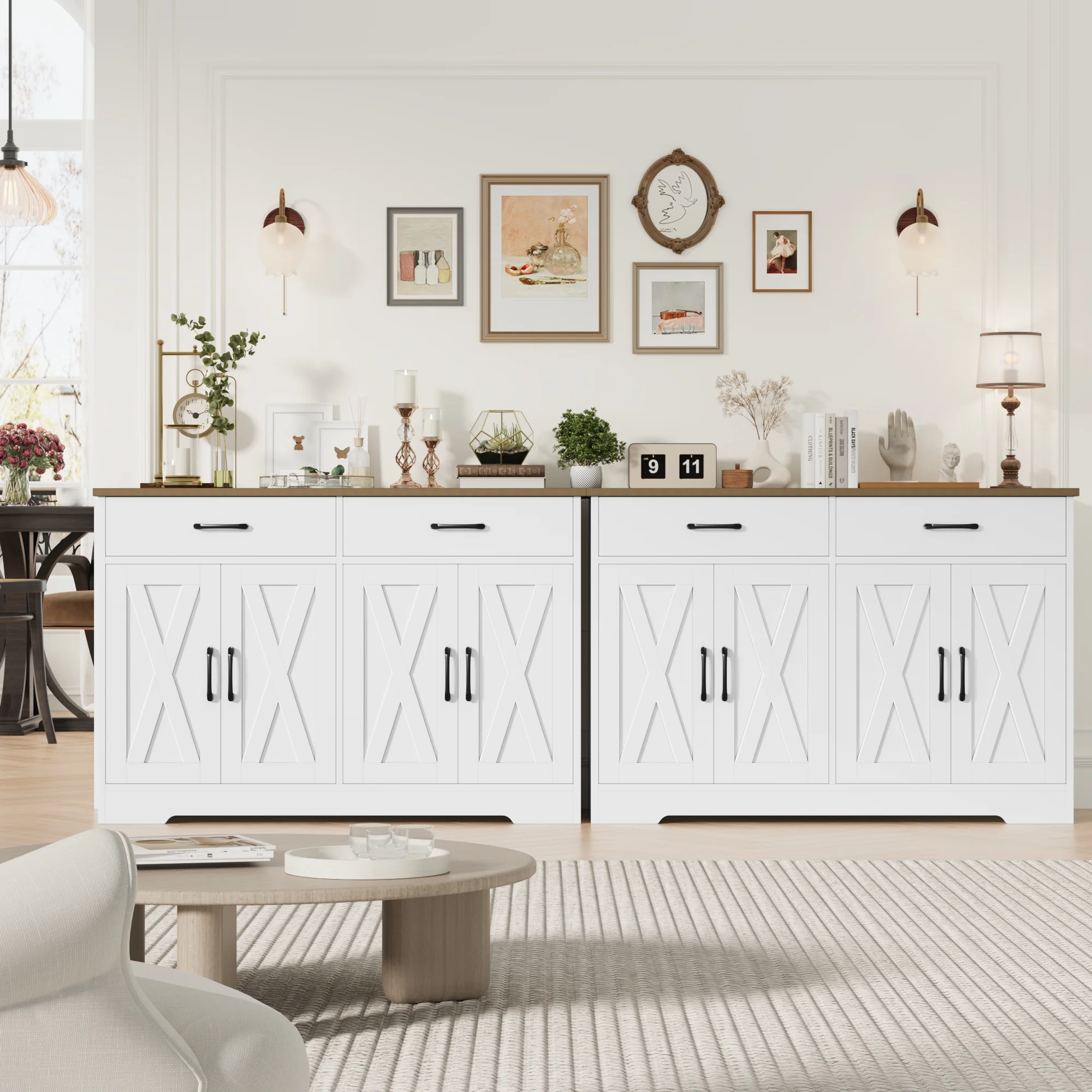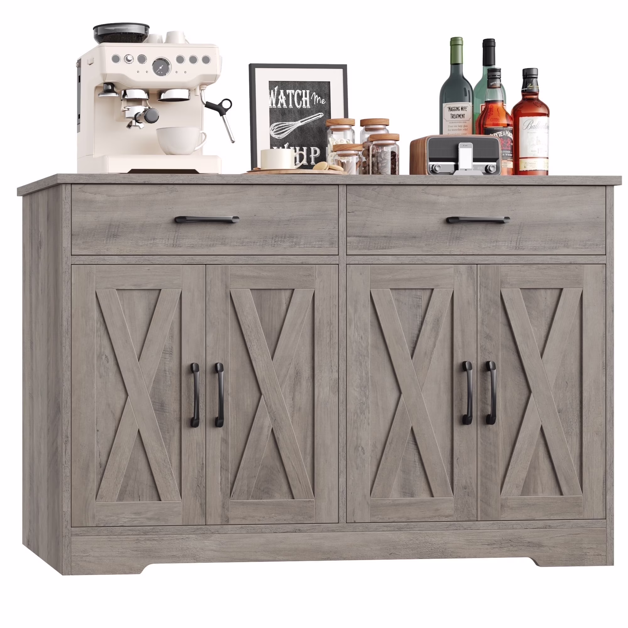 Ample Storage Space: Farmhouse buffet cabinets of 47" inches wide tabletop for beautiful decorations, souvenirs, china and so on. 2 large drawers for knives, forks, cutlery, etc. 4 doors with storage shelves inside, protect your personal items. The living room storage cabinet incorporates both open and closed storage space to meet your different needs.