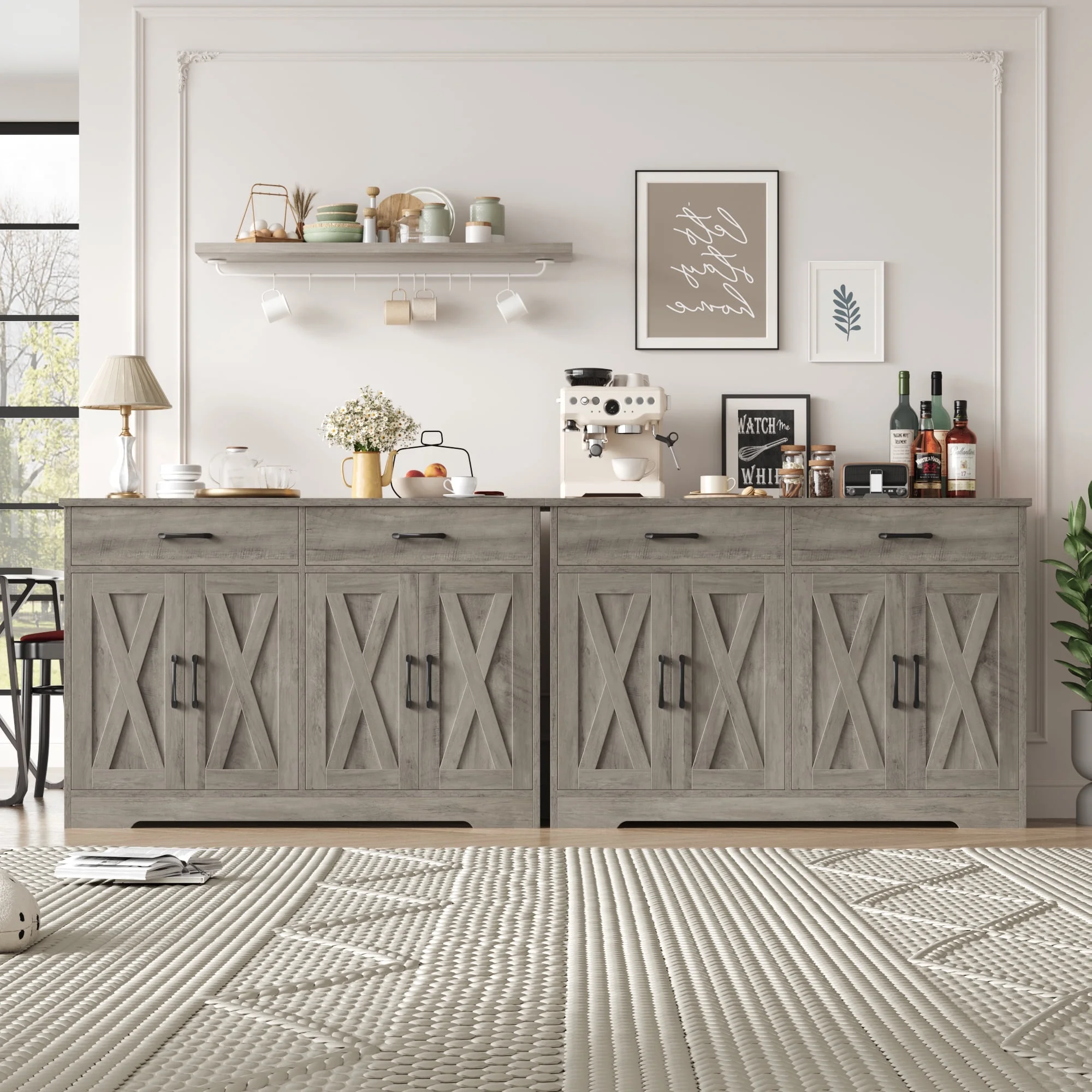 Decor Style and Perfect Use: Our kitchen buffet cabinet with storage Finished in a farmhouse look with natural wood grain and distinctive barn doors, this kitchen storage cabinet perfectly fuses rustic country and vintage.