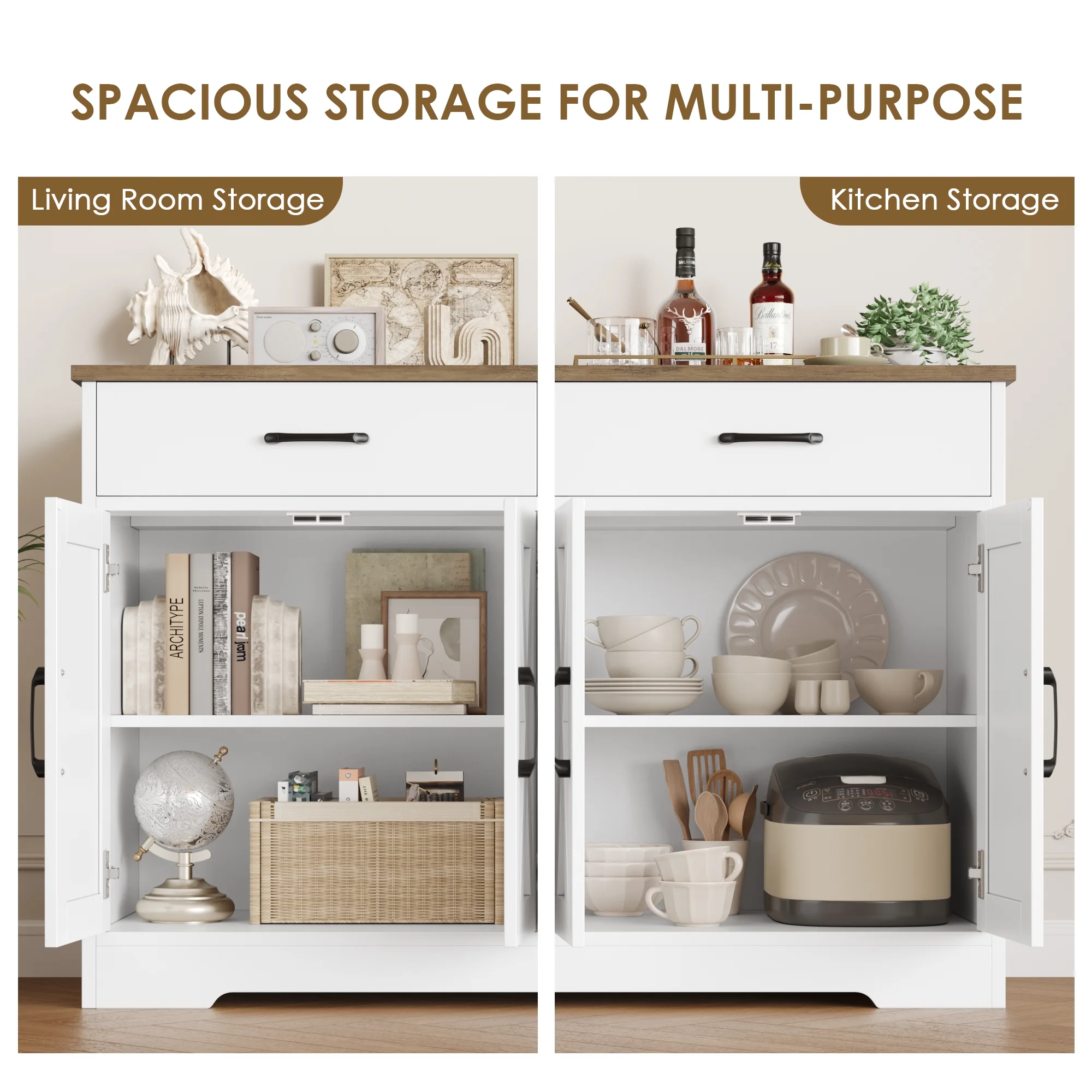 Multifunctional Cabinet: Whether you're seeking for a farmhouse sideboard to keep tableware organized, an extra storage cabinet to tuck away all your odds and ends, a coffee bar to serve your leisure time, or a TV stand to hold the CD player, it's an essential furniture piece that any kitchen, dinning room, entryway or living room would love.