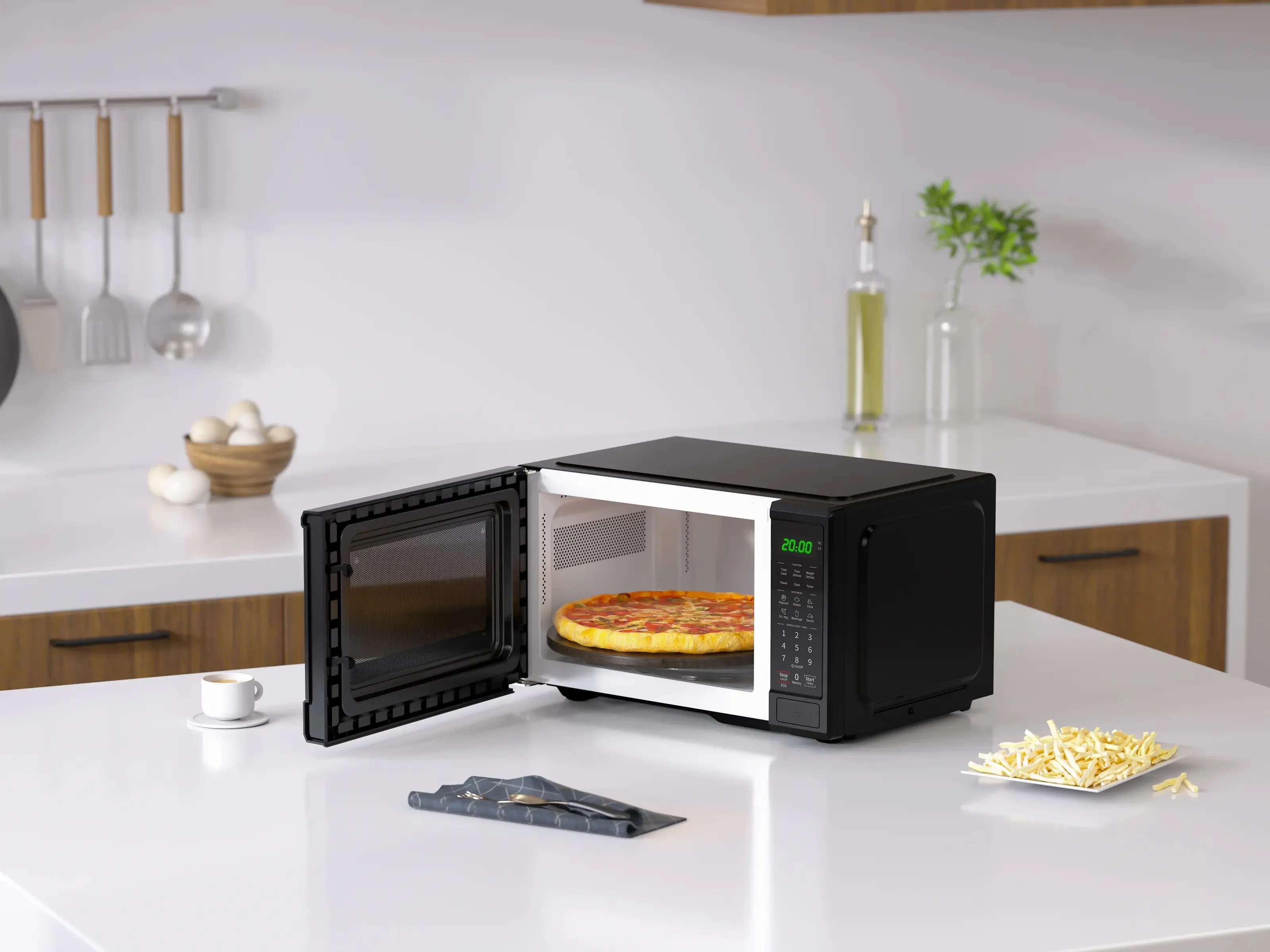 - Enjoy the convenience of this 0.9 cu. ft. countertop microwave oven with its sleek black design that seamlessly integrates into any modern kitchen.