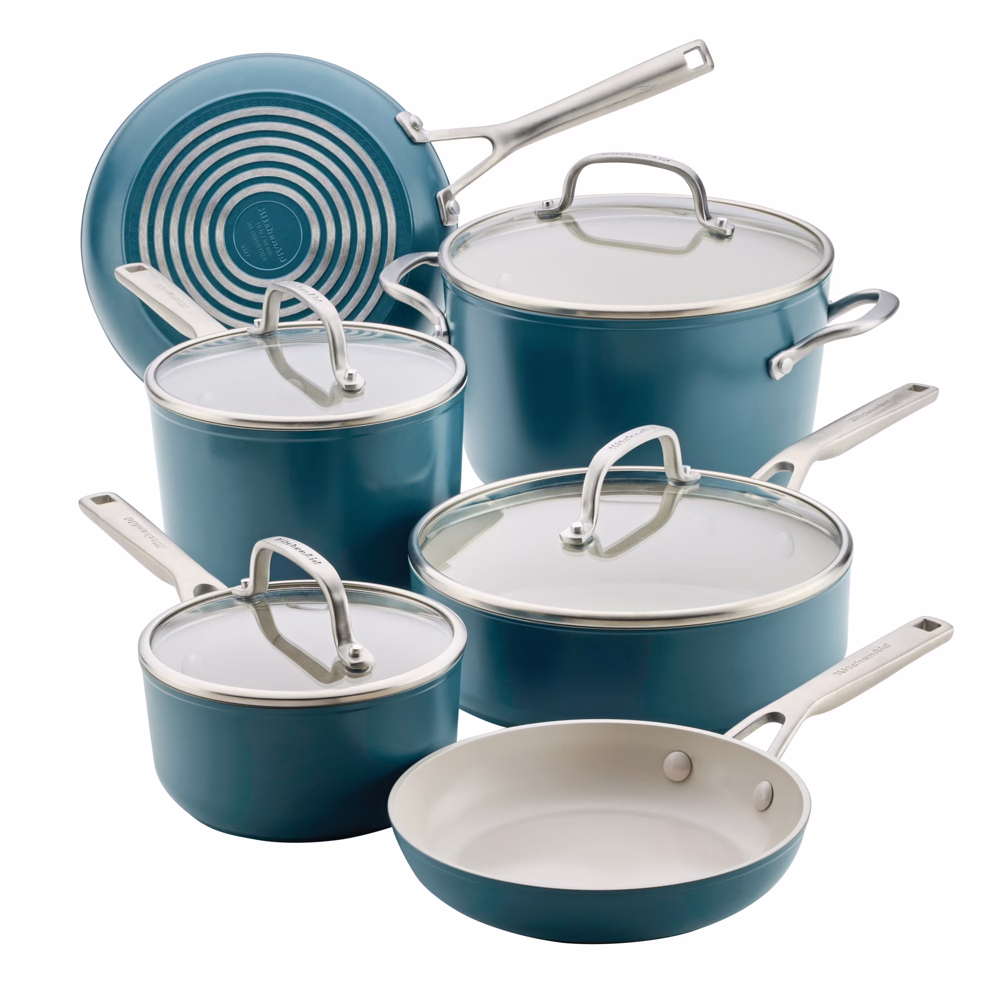 - DURABLE CONSTRUCTION: KitchenAid��s hard-anodized cookware is 8x stronger than aluminum and engineered for lasting performance. Designed with a thick, forged base, each piece ensures fast, even heat distribution for exceptional meals you��ll want to share