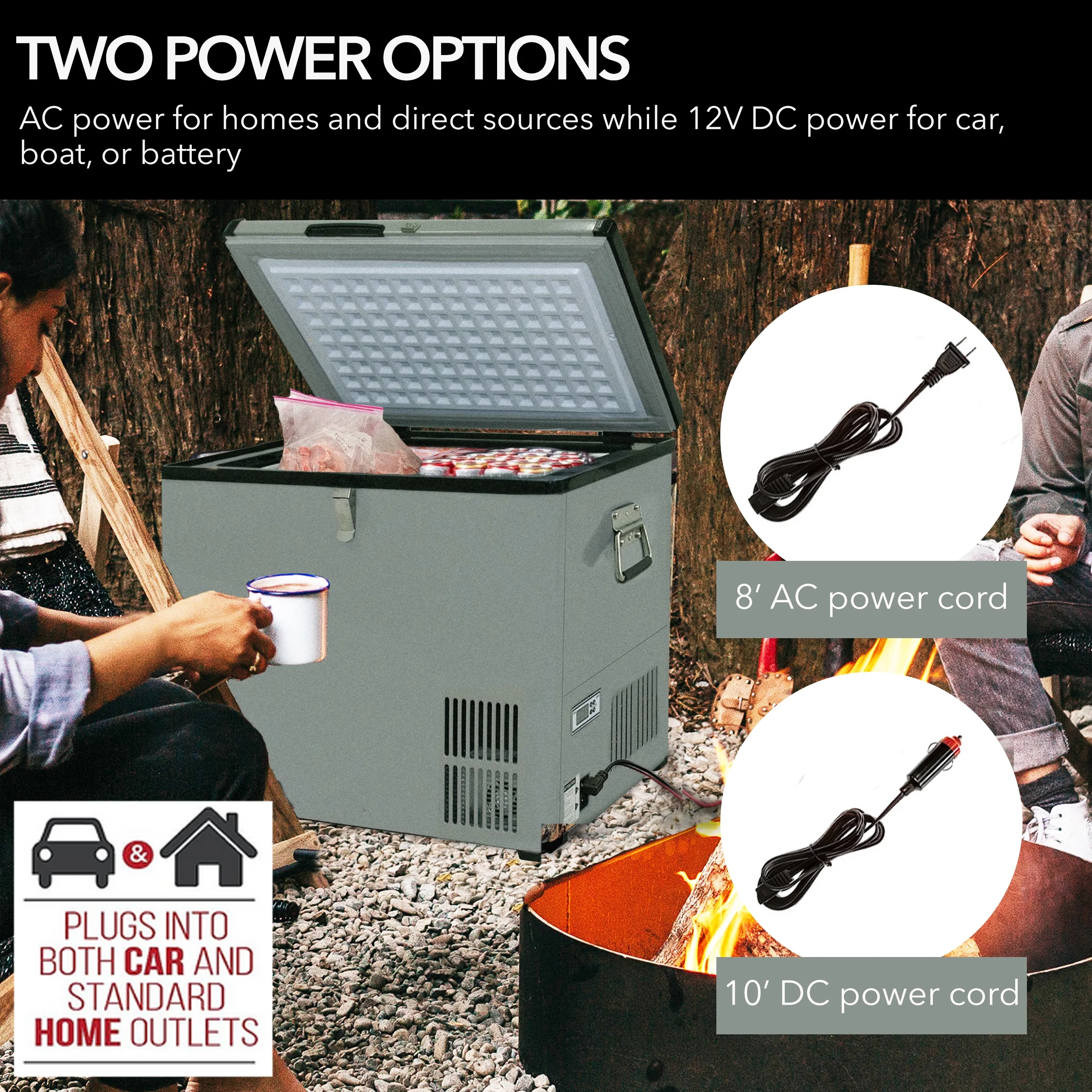 - It is great for use in RVs, boats, campsites, fishing trips, and other outdoor activities, as it is portable and can be powered by either a standard 110V household outlet or a 12V power source like an automotive battery.