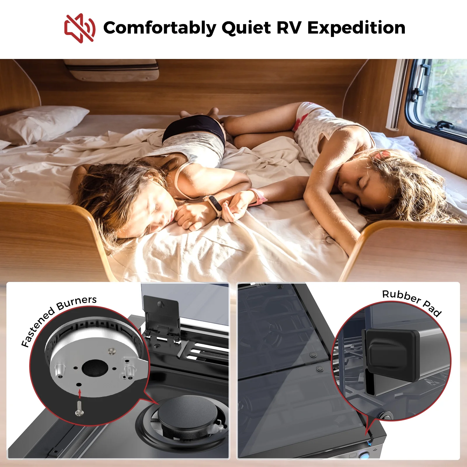 - Designed for the Road: Featuring tight-fitting burners with anti-vibration technology and enhanced anti-vibration rubber pads on the side of the dust cover, it ensures a smooth ride even on rough roads. In addition, the glass cover on top not only protects the burner but also extends your working space.
