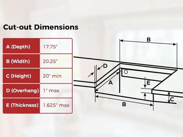 - Cutout Dimensions: 20.25'' x 17.75'' x 4.13''