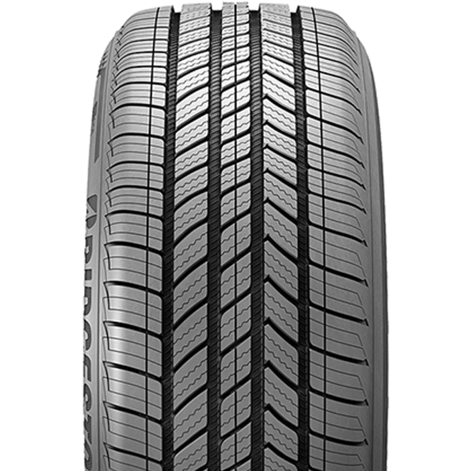The tire promotes high driving comfort levels. It was designed with Bridgestone's QuietTrack technology which provides a detailed computer-optimized tread pattern to lower the road and tread pattern noise heard in the vehicle's cabin. The tread features in-groove quiet tracks, optimized shoulder slots and a variable pitch sequence that work together to decrease the road noise generated during the drive. They dampen and cancel the road and tread pattern noise out before they can ruin the passenger's driving enjoyment. On the other hand, the model's steel belt reinforced polyester casing keeps its optimal shape under the driving pressure, while the ComfortCruise Technology's computer designed rounder footprint keep the tire's contact with the road surface. This enables the tire's close road contact, which allows it to absorb the shock of driving. This ensures that the road vibrations are not felt while the tires are in motion. As a result, the model guarantees a quiet and comfortable driving experience.