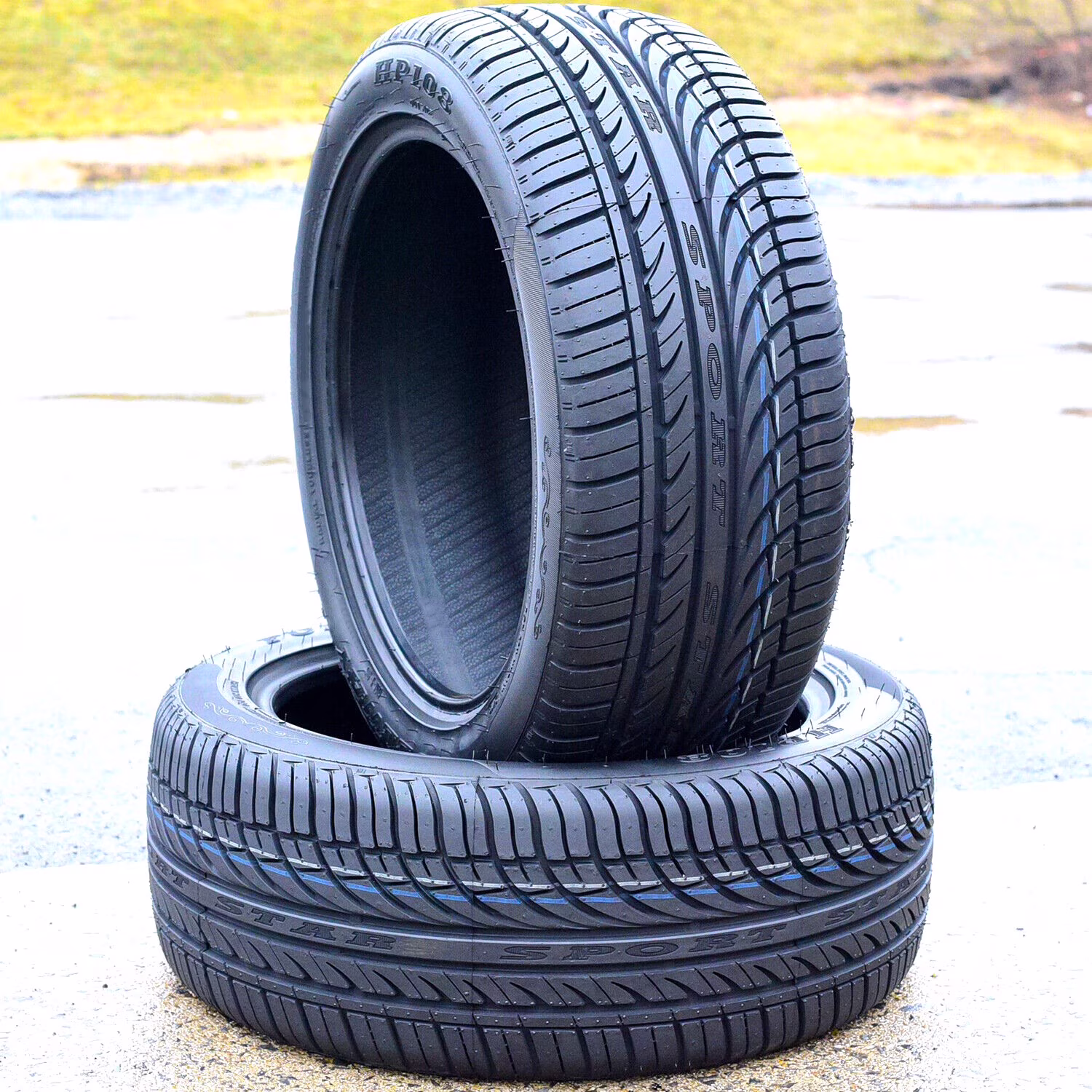 The HP108 offers a quiet and enjoyable drive. The tire's tread pattern helps lower the road noise heard in the cabin of the vehicle by channeling the airwaves through the footprint. In this manner, the airwaves do not come into contact with the tread elements, which prevents the formation of road and tread pattern noise. As the noise cannot be heard in the vehicle's cabin, it cannot dampen the passengers' driving enjoyment. This provides a quiet and comfortable driving experience.