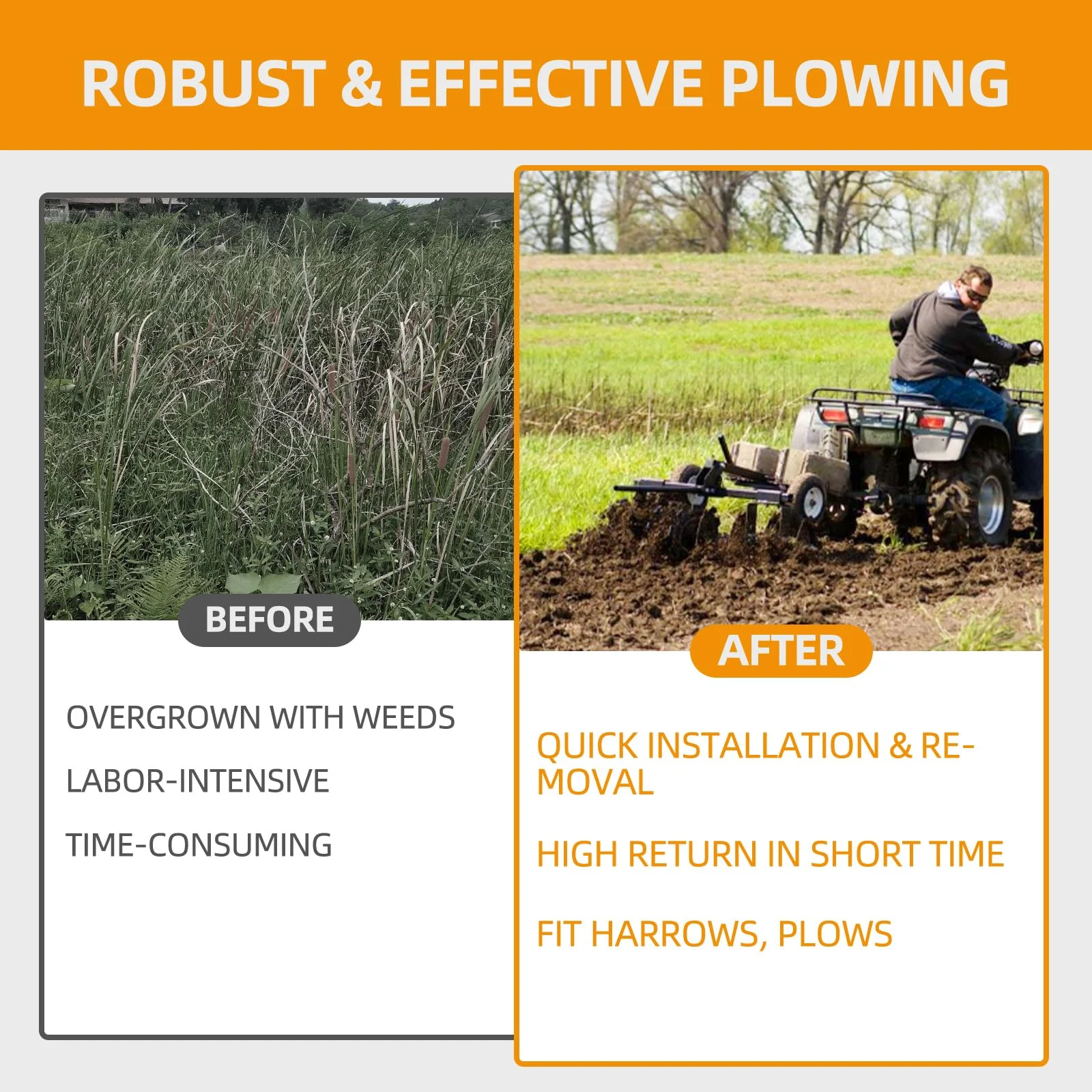 - Connect Any Ground Engaging Products To Your ATV/UTV: Manual Implement Lift is fit for Box Scraper, Moldboard Plow, Cultivator, Disc Harrow, Rear Blade. That help take your passion for the outdoors to the next level.