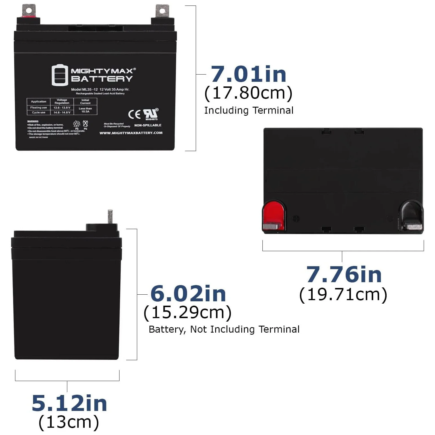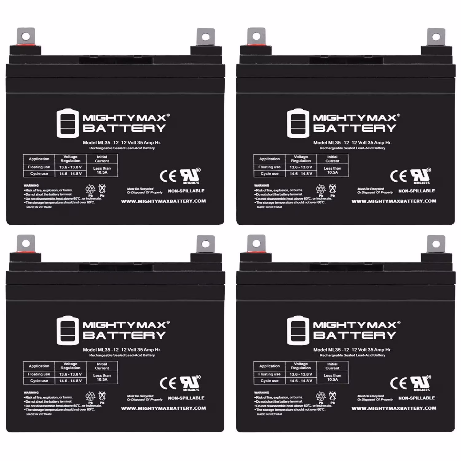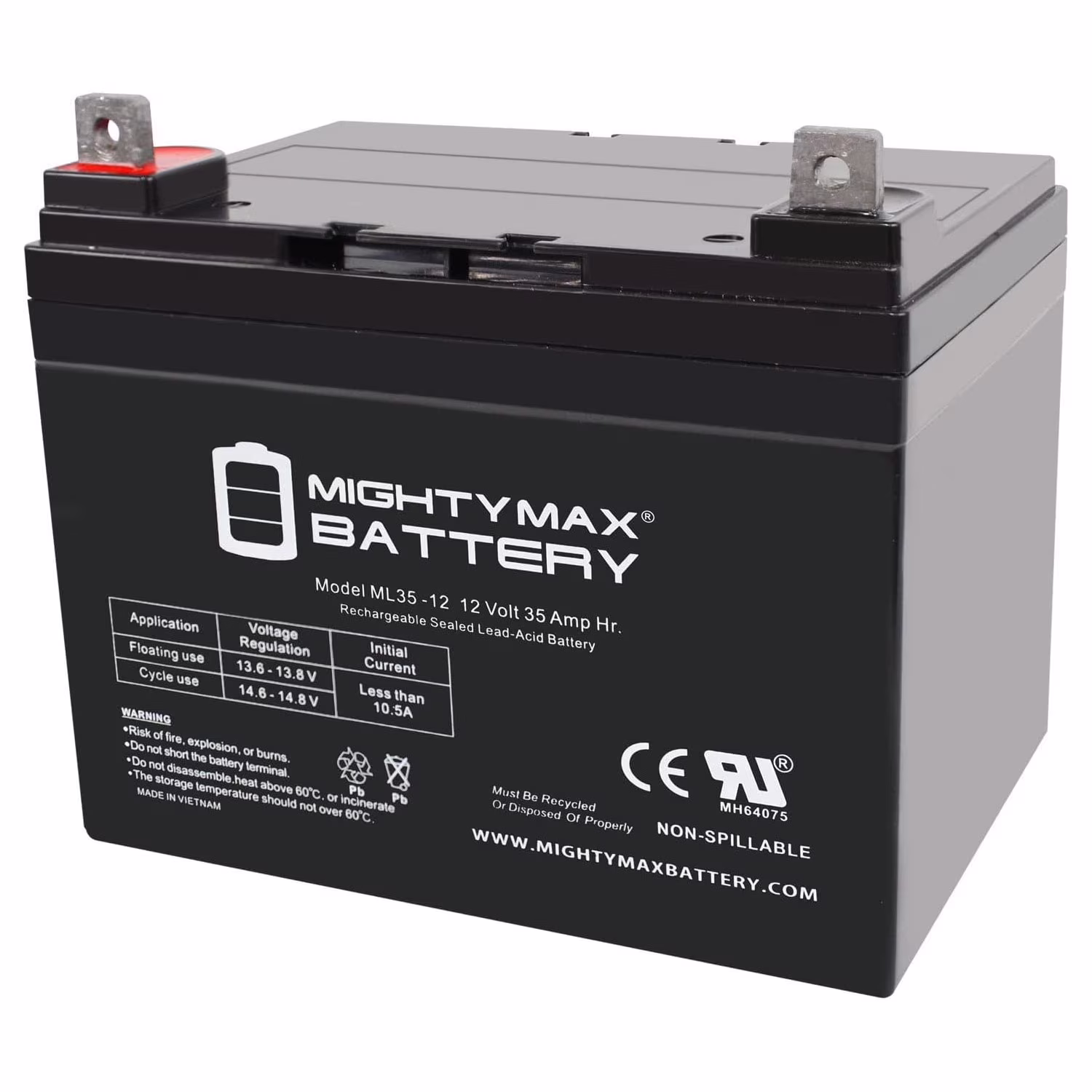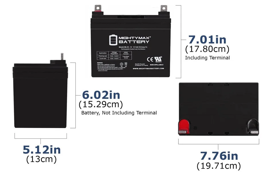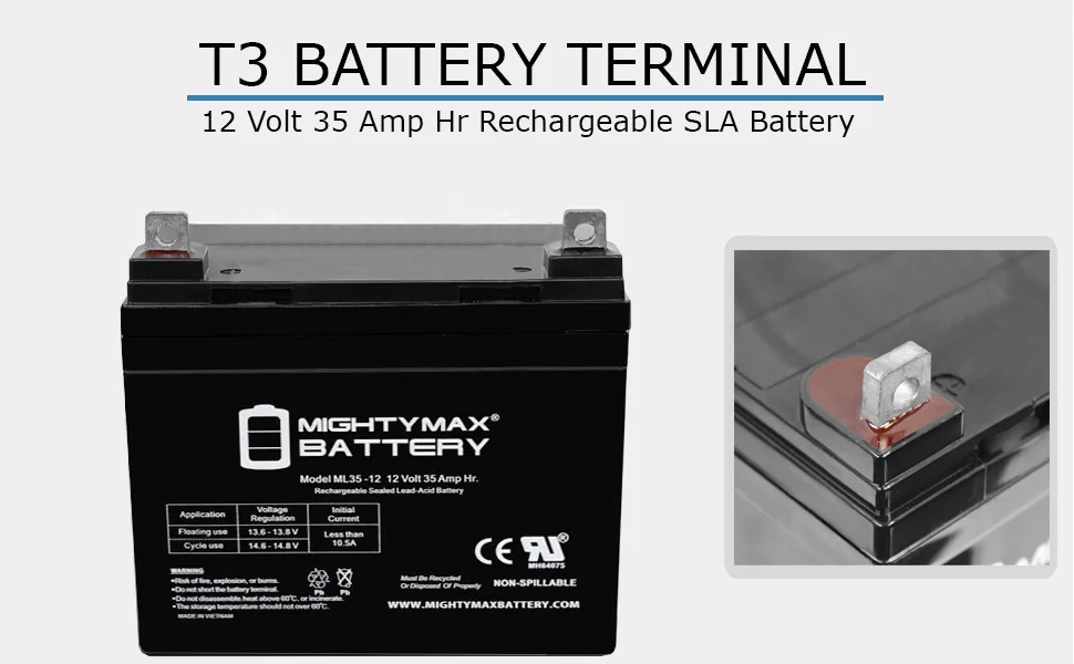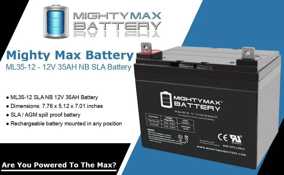 - ML35-12 SLA is a 12V 35AH Sealed Lead Acid (SLA) rechargeable maintenance free battery - UL Certified