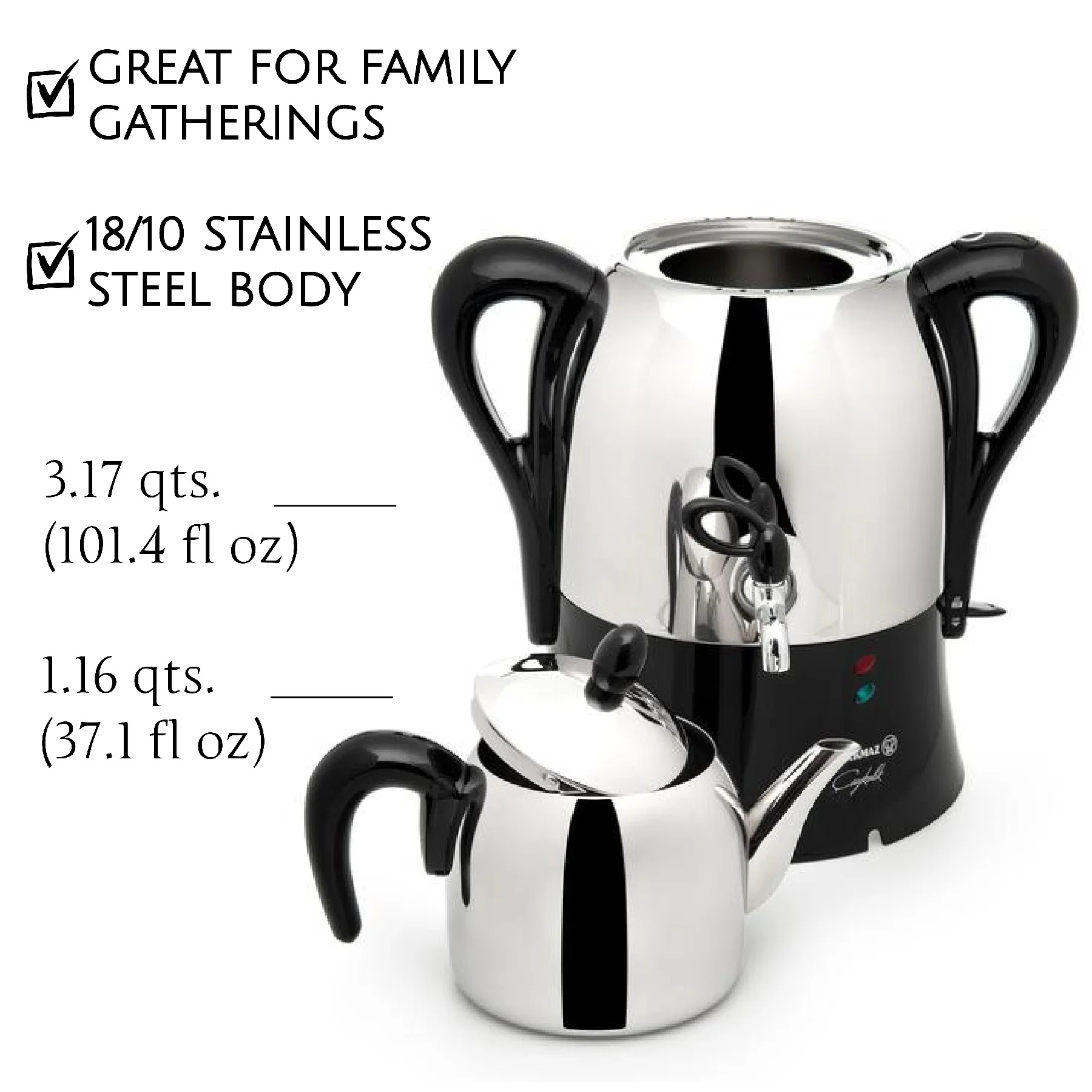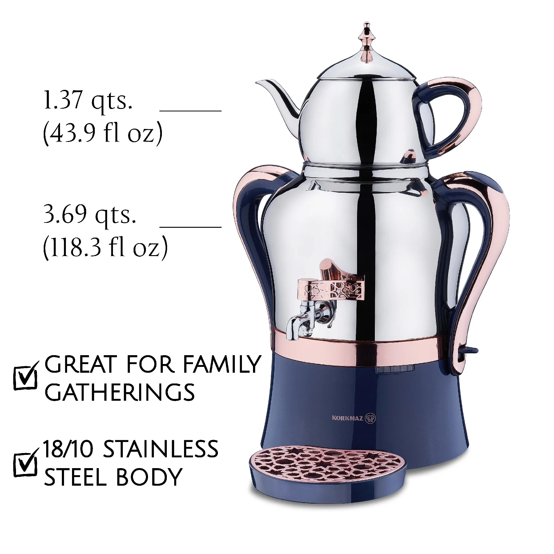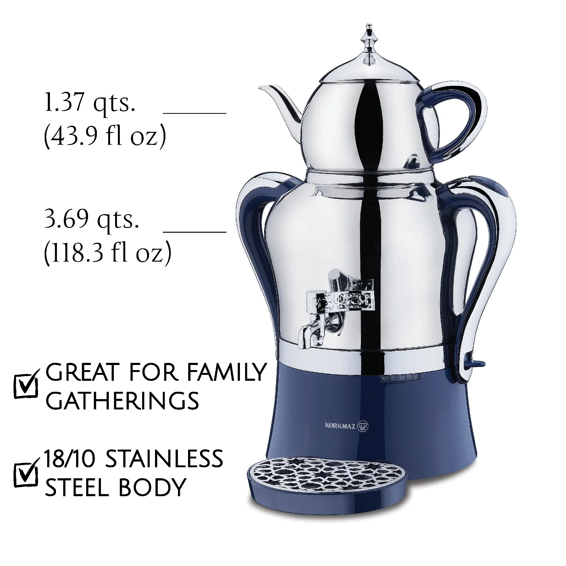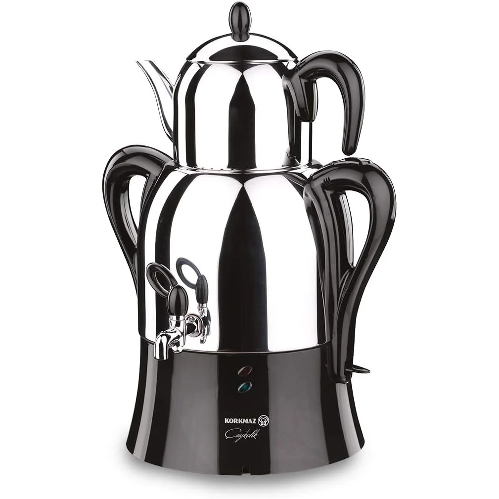 - Premium Quality Construction: Crafted from durable stainless steel, the Korkmaz Hanedan Samovar ensures longevity and reliability in brewing your favorite Turkish tea