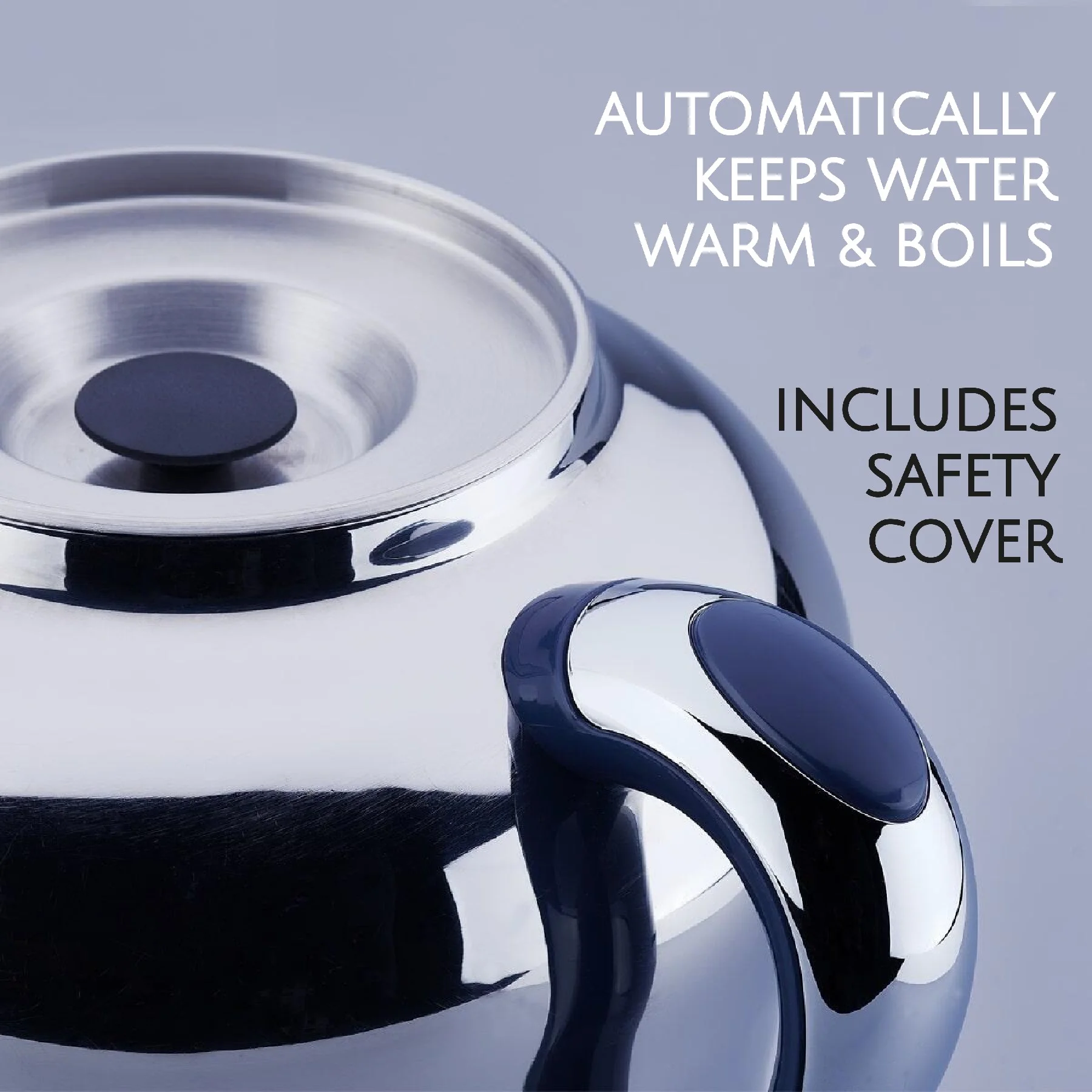 Korkmaz Hanedan Premium Silver 18/10 Cr-Ni Stainless Steel Dishwasher Safe Electric Tea Maker