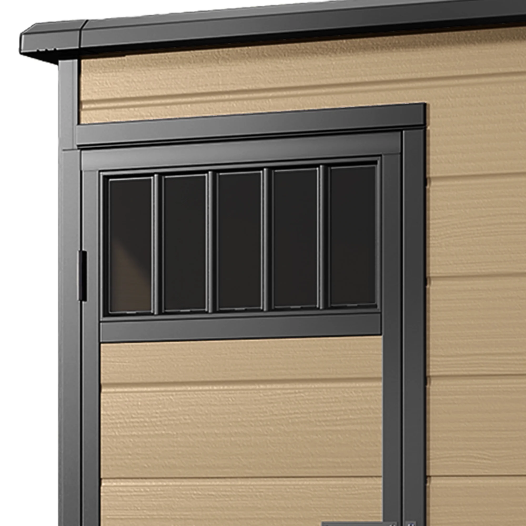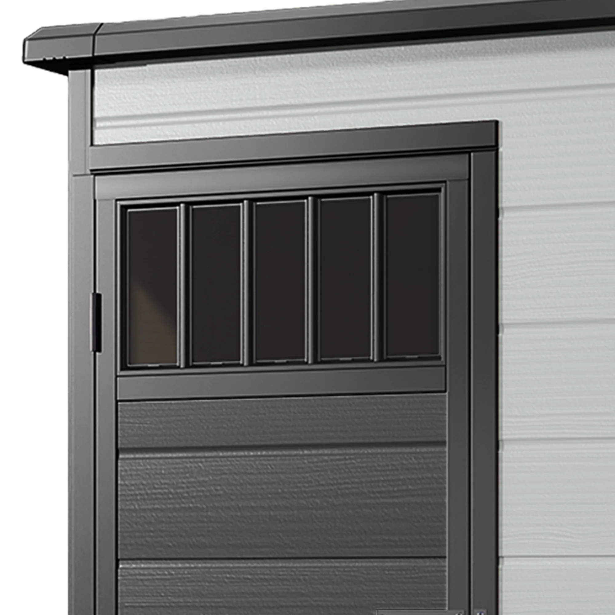 - Premium Fence-Style Front Window: Features a signature 23.2" x 11.4" decorative window design that enhances backyard aesthetics while letting in natural light for a brighter, more functional shed interior.