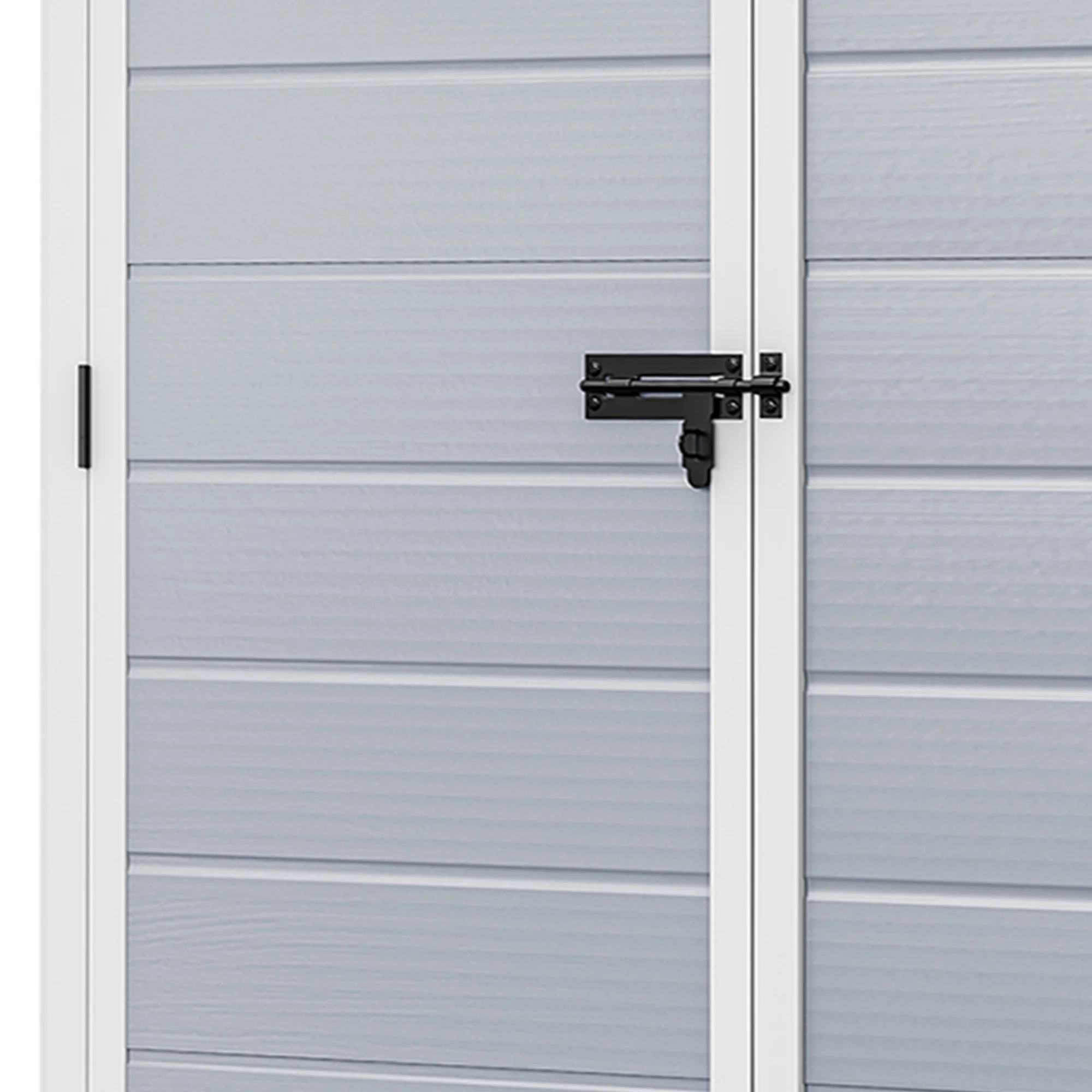 - Secure Lockable Doors: Reinforced steel latch (The lock is not included) and heavy-duty hinges keep valuables safe, providing reliable security for garden gear, outdoor utility tools, outdoor trash can, winter gear and sports equipment, and backyard essentials.