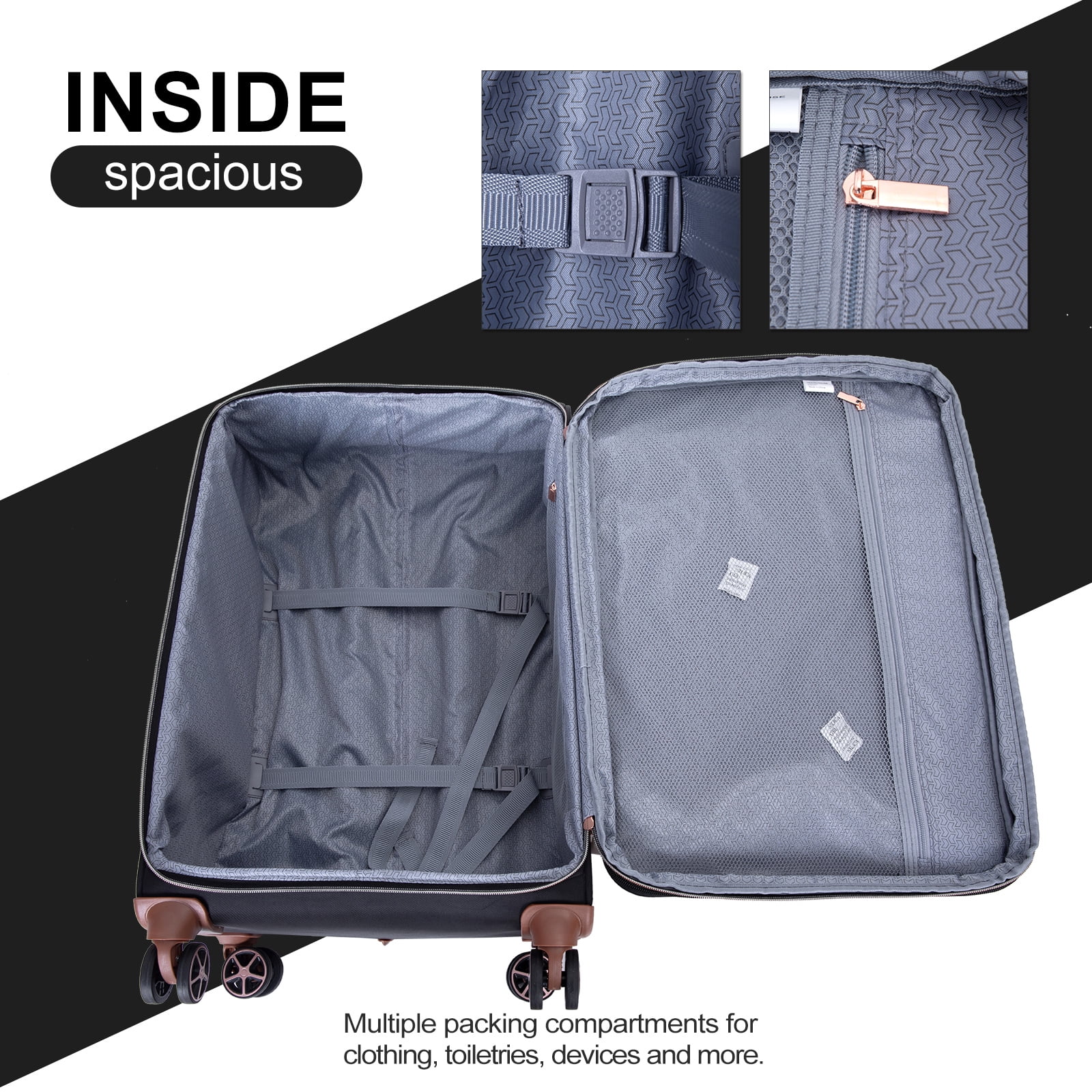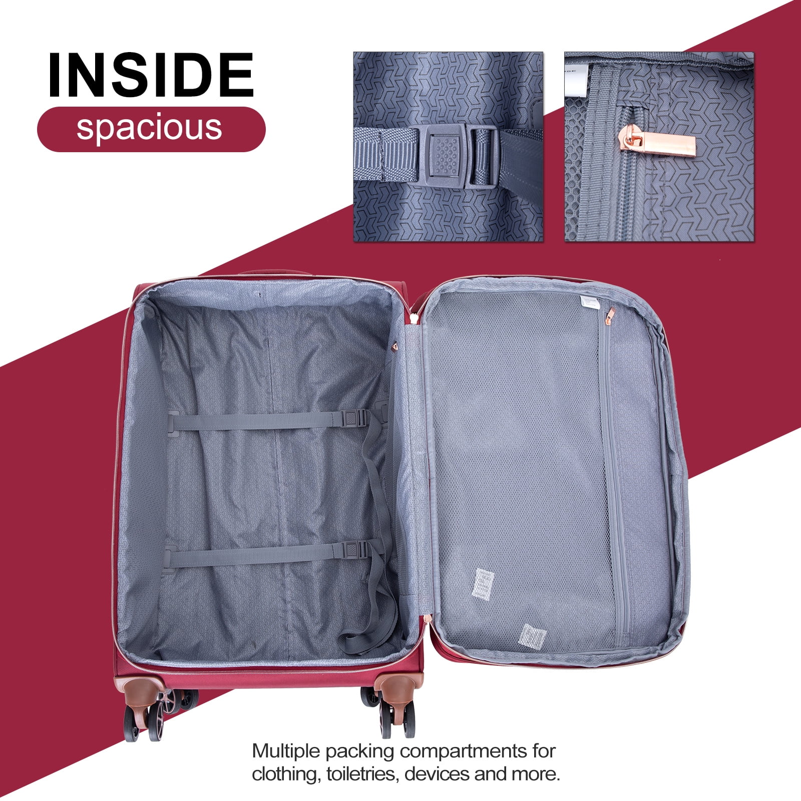 - ��Organized & Secure Interior��Interior mesh zip pocket and elasticated,Squared full-capacity design, Capacity : 20in38L 24in63L 28in93L