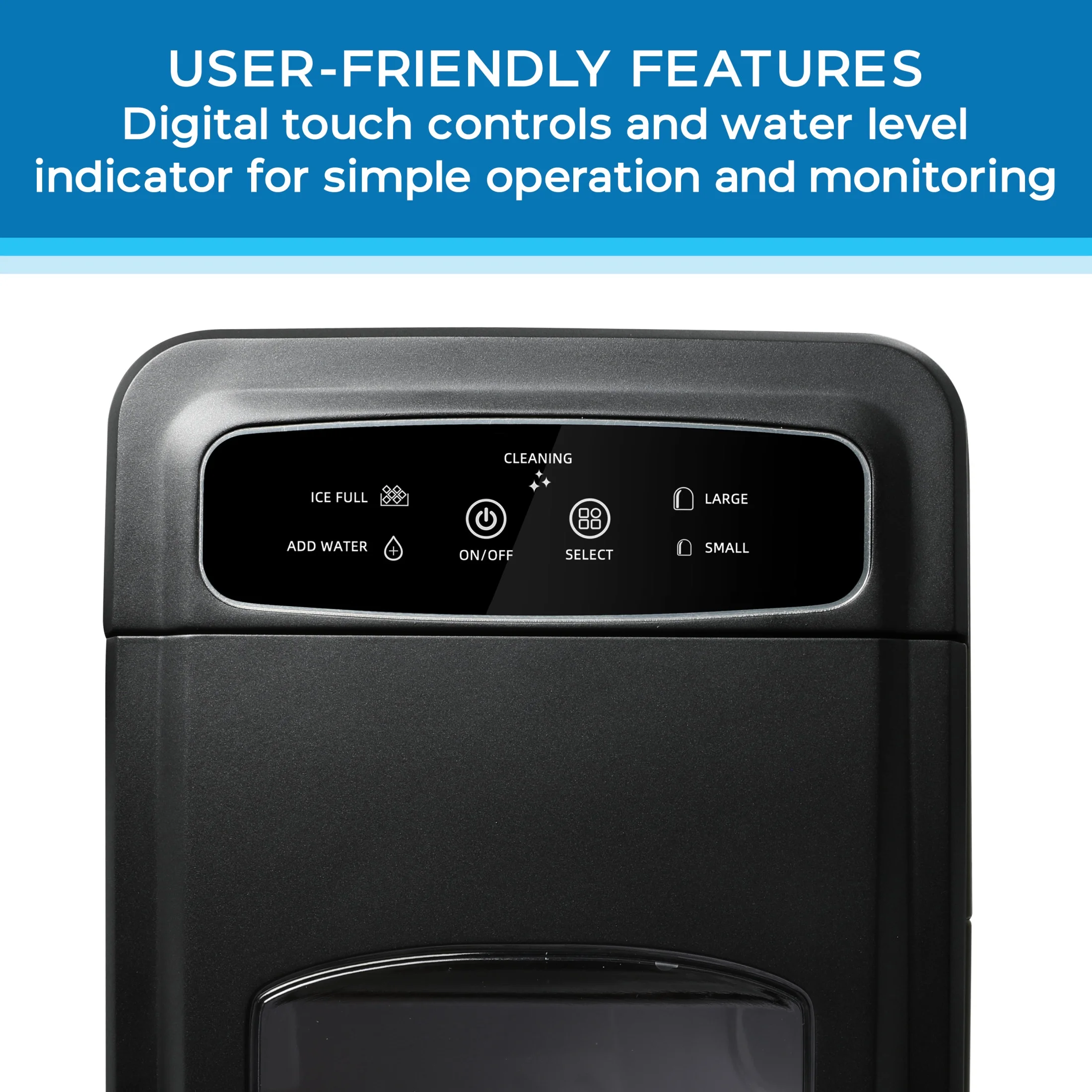 - Features "Add Water" and "Ice Full" indicators.