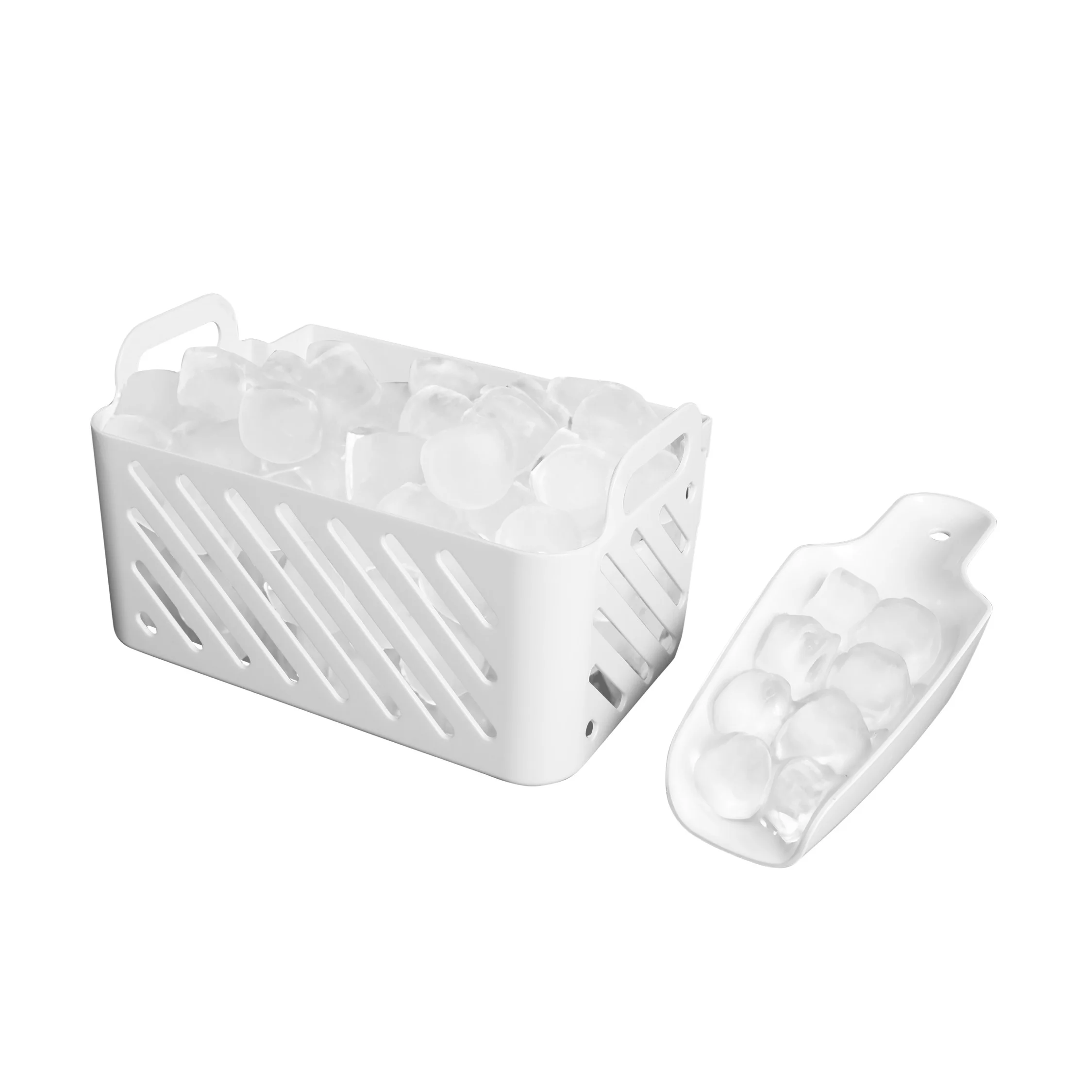 - Includes ice scoop and ice tray for easy handling and serving.