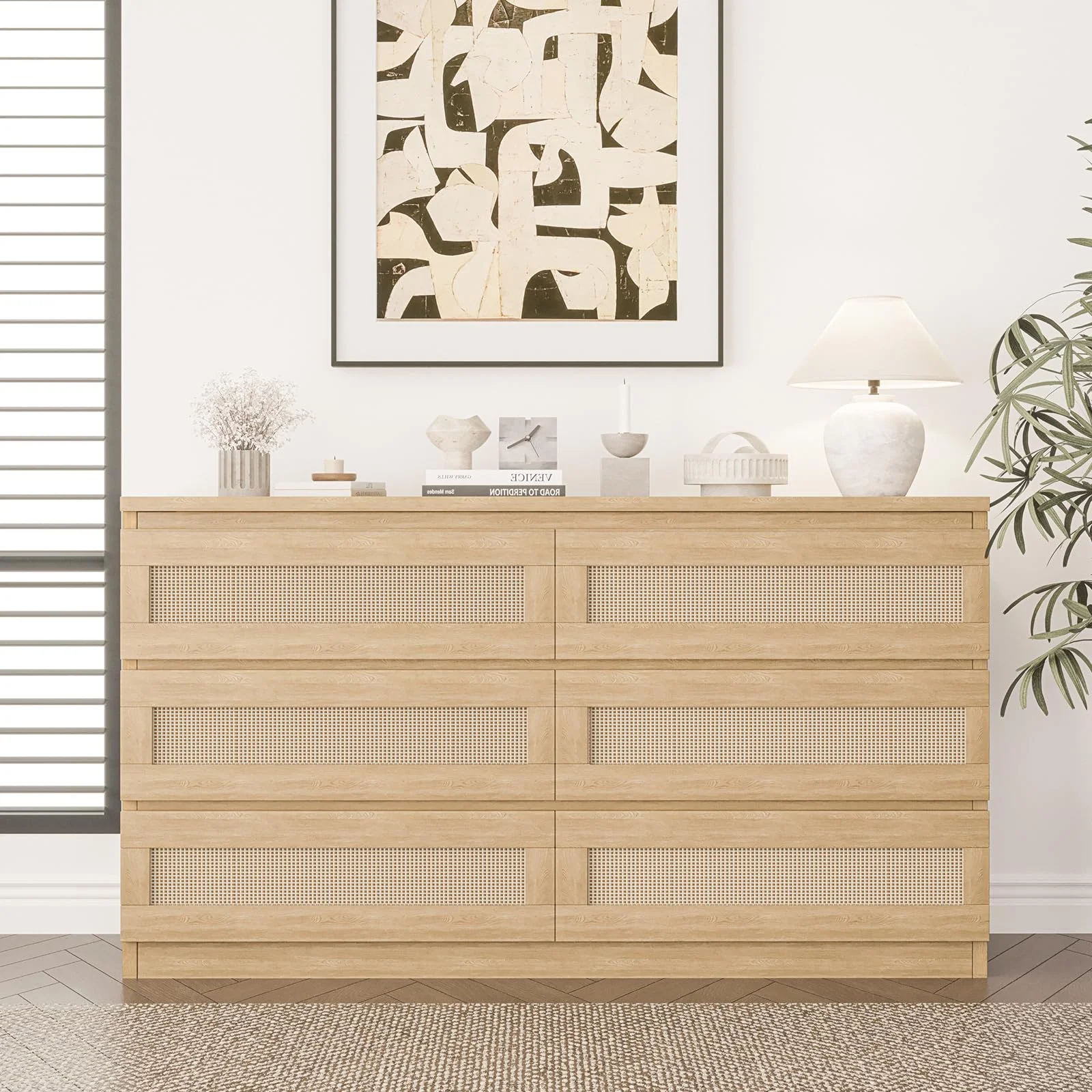 Upgrade your bedroom storage and decor with the Practical 6-Drawer Rattan Dresser, a versatile and stylish furniture piece that brings organization and aesthetic appeal to your living space.