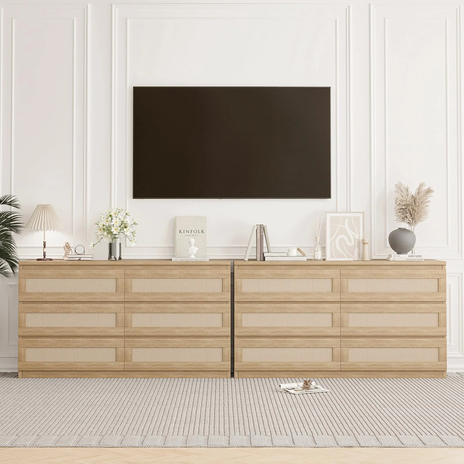 - Funky Simplicity: The 6 double drawers add rattan to the simple monochromatic wood panel, adding a certain fun and premium aesthetic to this kids dresser. This modern and minimalist dresser 6 drawer is compatible with kinds of decorative styles. Create a simple but not dull living environment for your home.