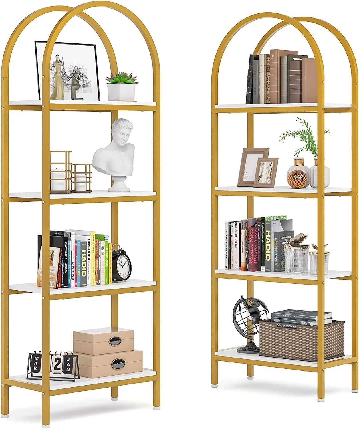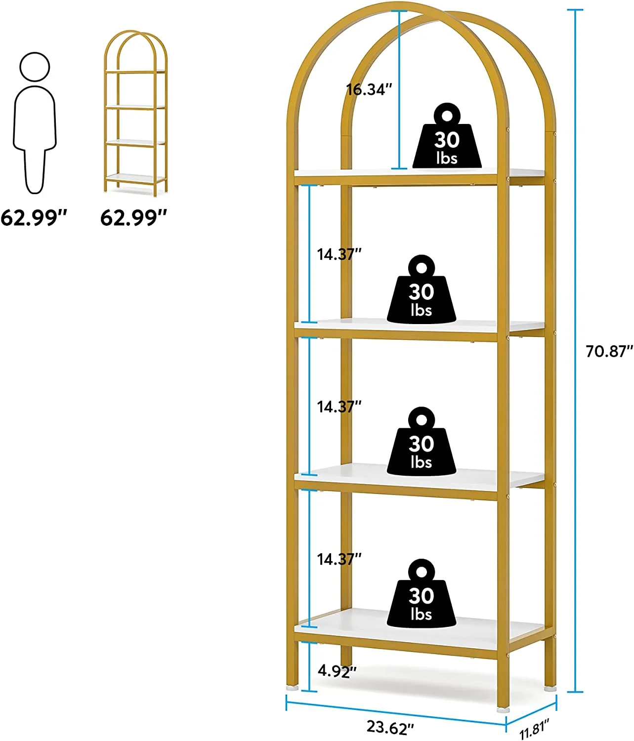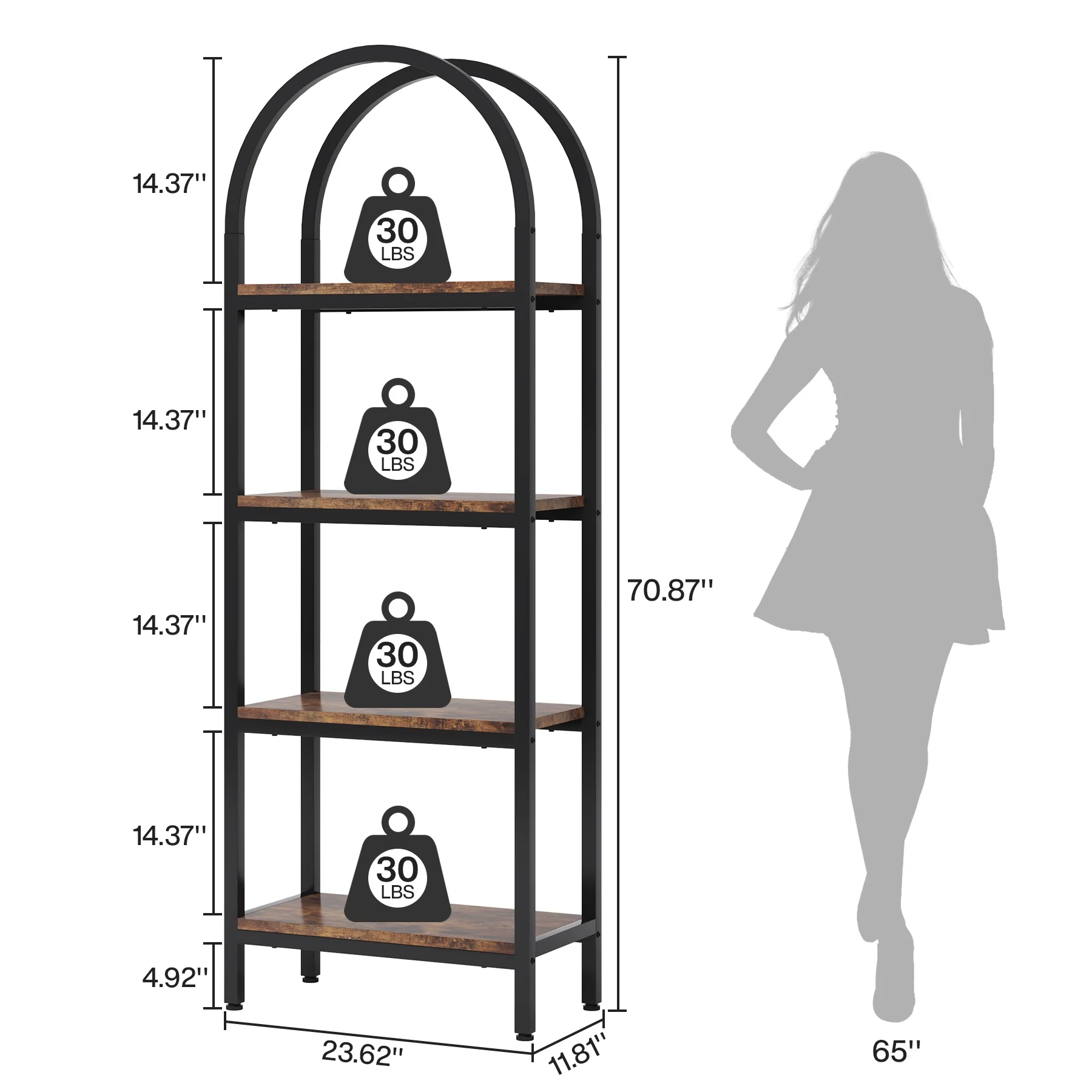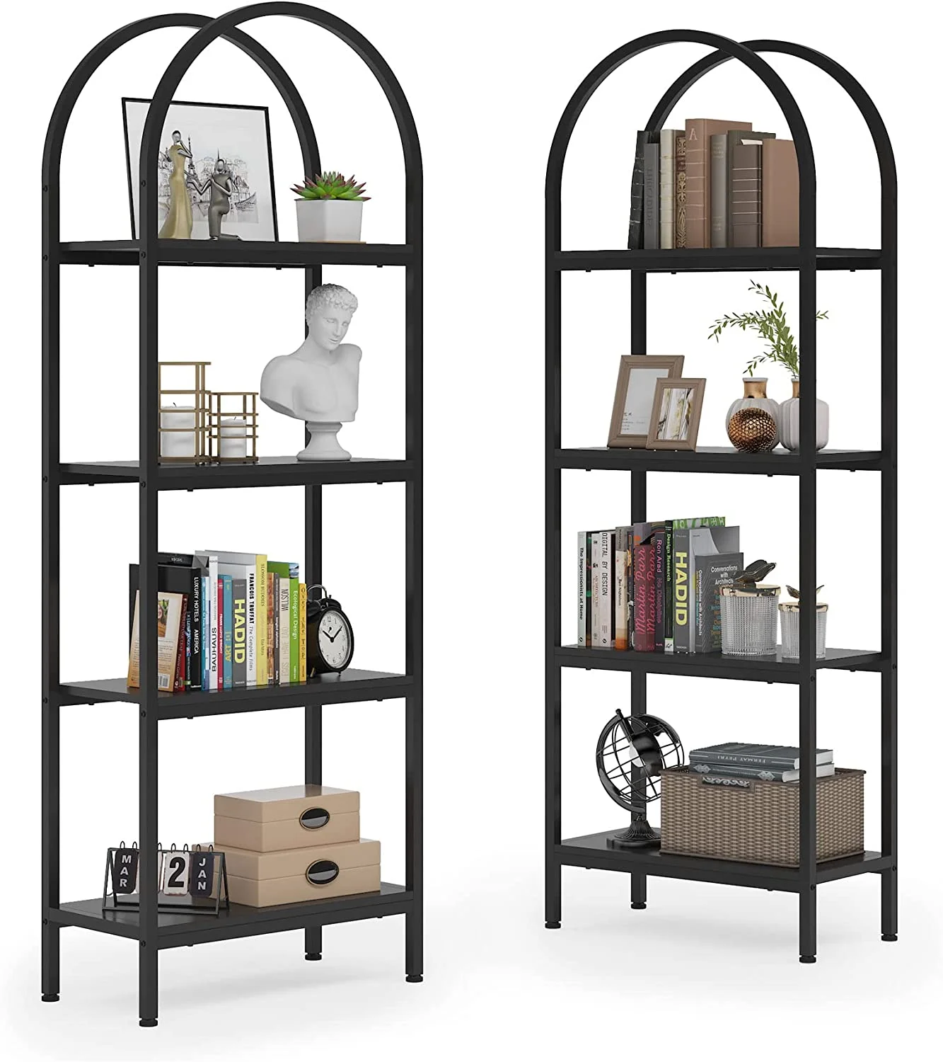 - Spacious Storage: The 4-tier arched bookcase offers a vast amount of storage space suited for a variety of items including books, photos, potted plants, or decorative pieces. Its space-enhancing nature also makes it perfect for showcasing awards and cherished keepsakes. Dimensions: dimensions 11.81" D x 23.62" W x 70.86" H