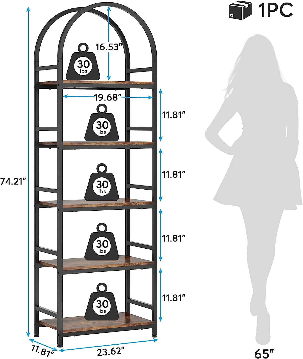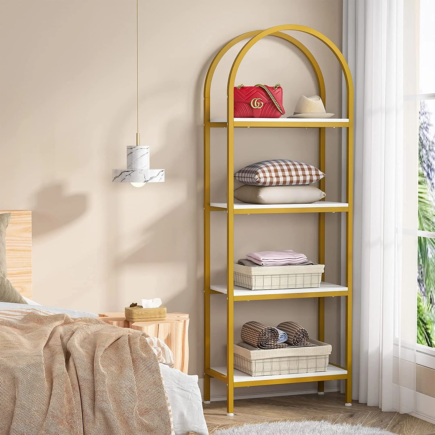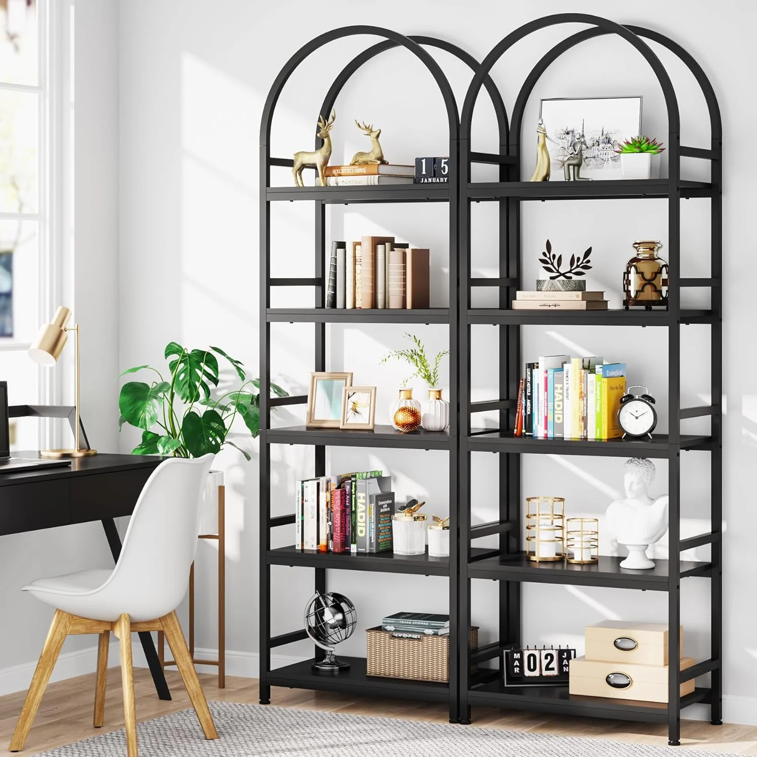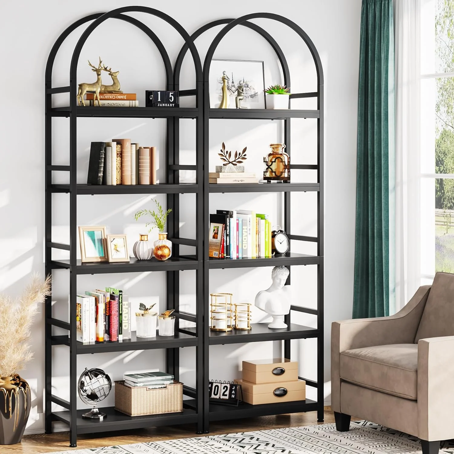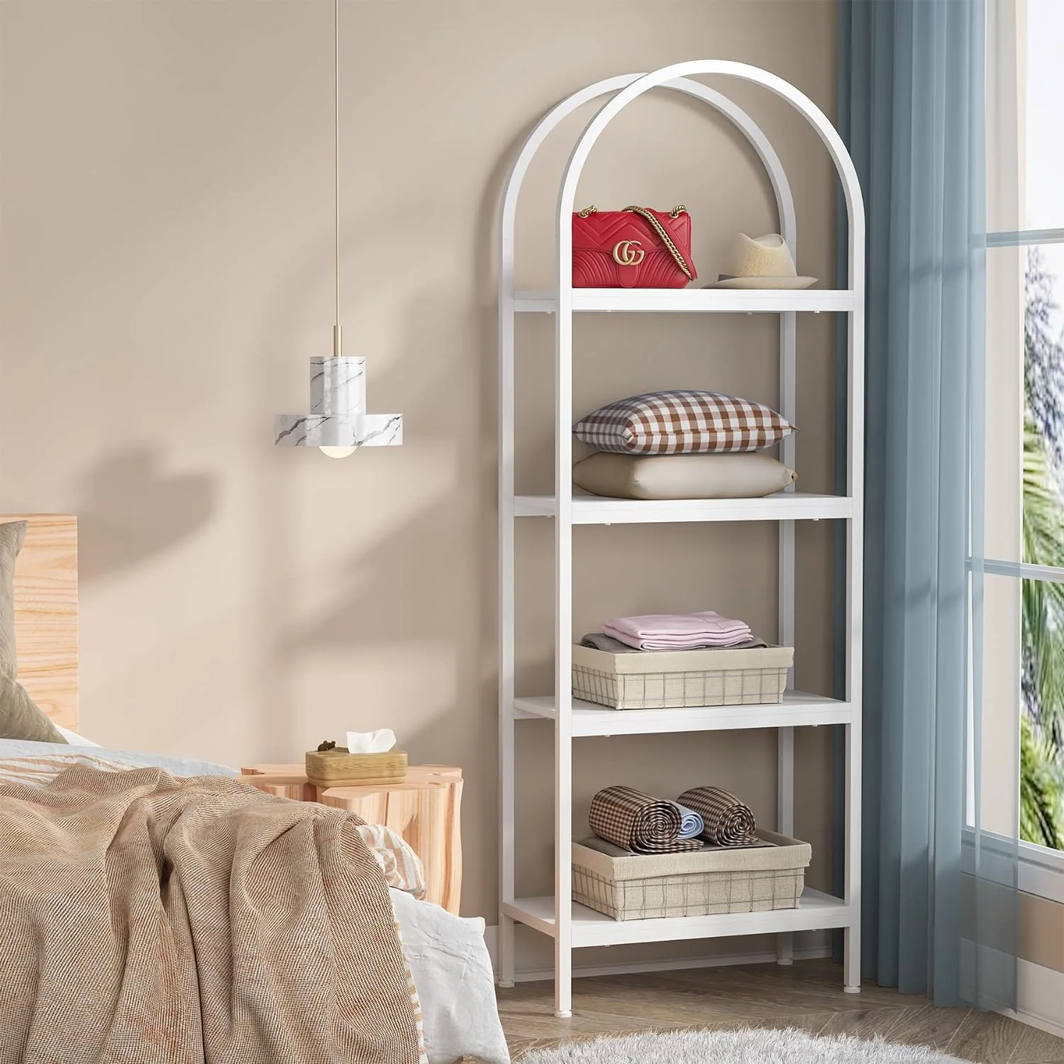 - Spacious Storage: The 4-tier arched bookcase offers a vast amount of storage space suited for a variety of items including books, photos, potted plants, or decorative pieces. Its space-enhancing nature also makes it perfect for showcasing awards and cherished keepsakes. Dimensions: dimensions 11.81" D x 23.62" W x 70.86" H