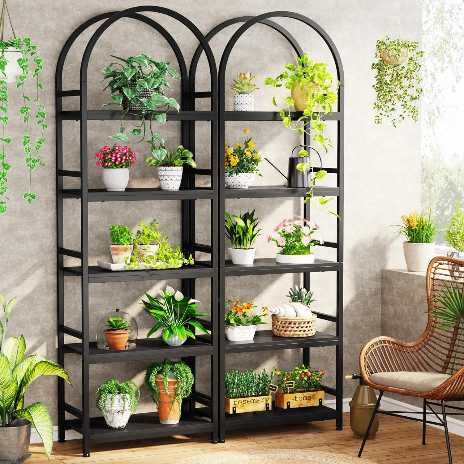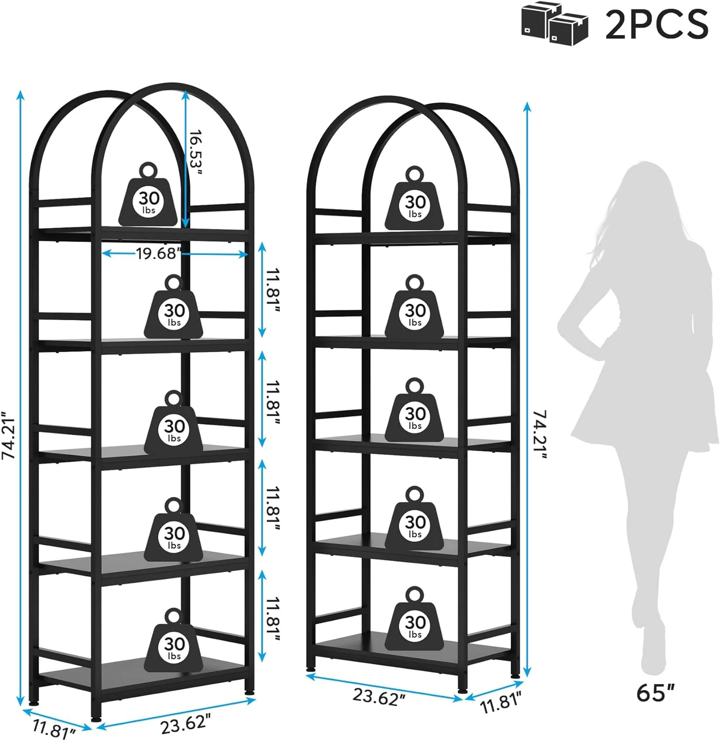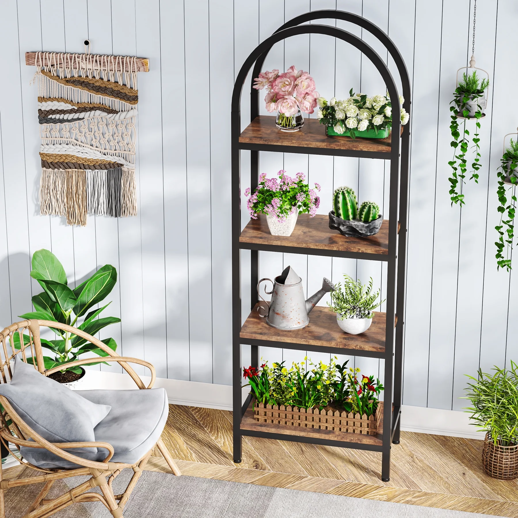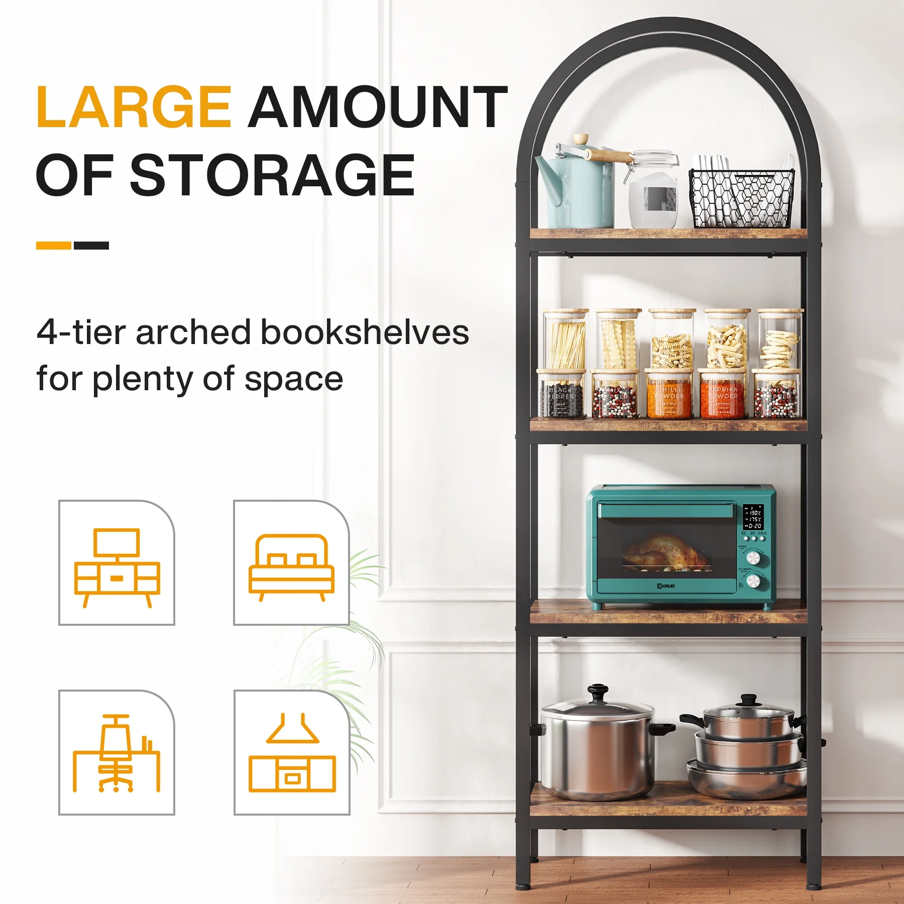 - Spacious Storage: The 4-tier arched bookcase offers a vast amount of storage space suited for a variety of items including books, photos, potted plants, or decorative pieces. Its space-enhancing nature also makes it perfect for showcasing awards and cherished keepsakes. Dimensions: dimensions 11.81" D x 23.62" W x 70.86" H