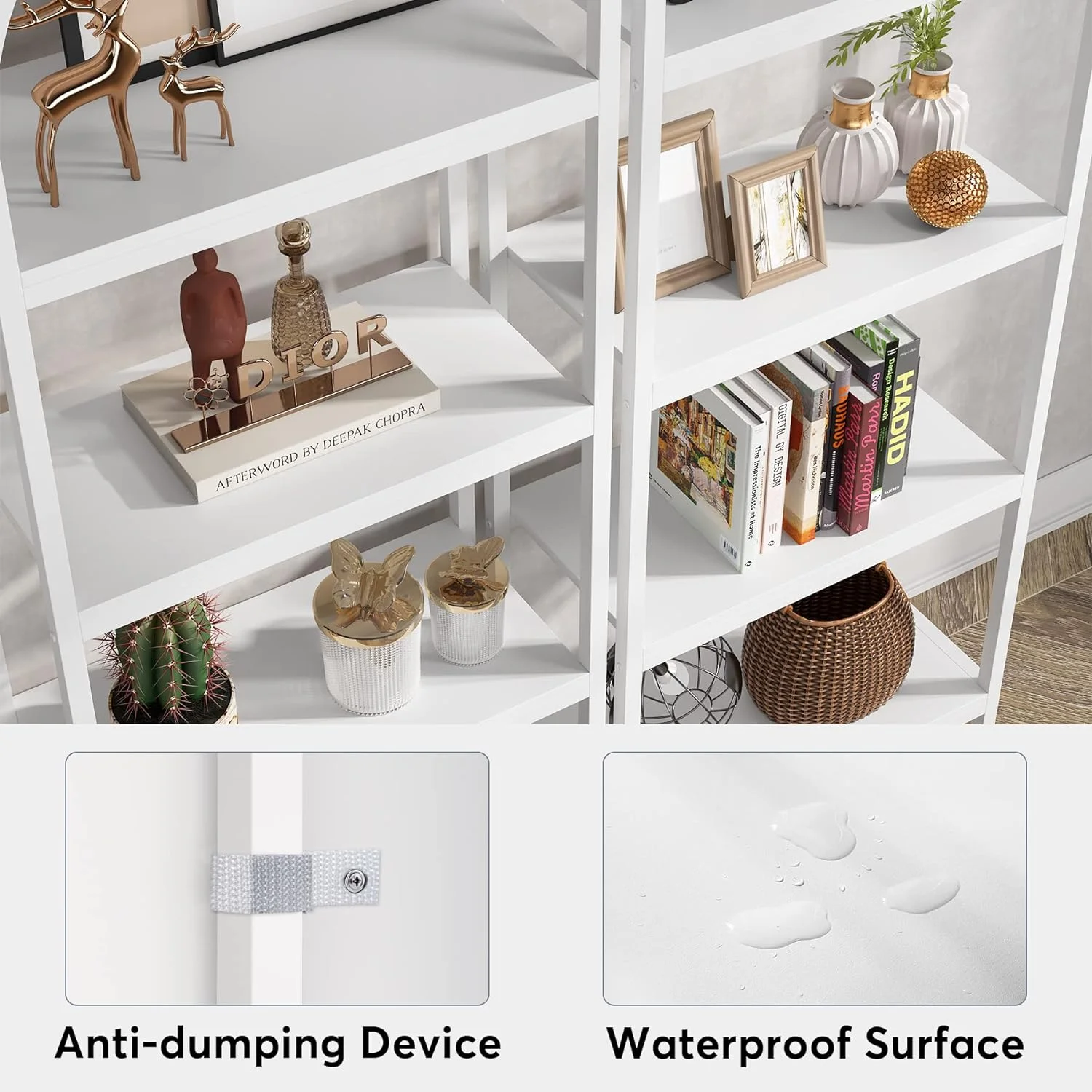 - Superior Build: Created using top-quality E1 particle board and reinforced by a strong metal frame, the tall bookshelf promises strength, stability, and an extended lifespan. It also boasts a premium anti-rust coating, bringing sophistication to each panel, which can hold up to 30 lb.