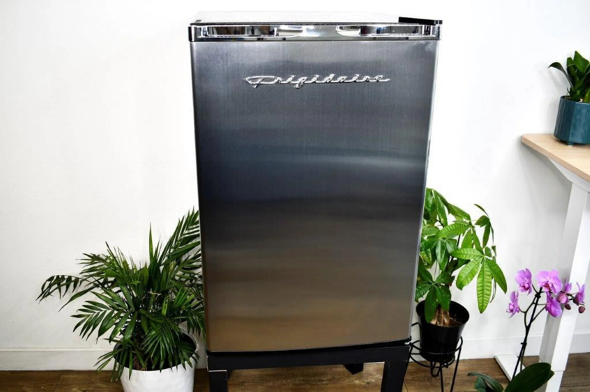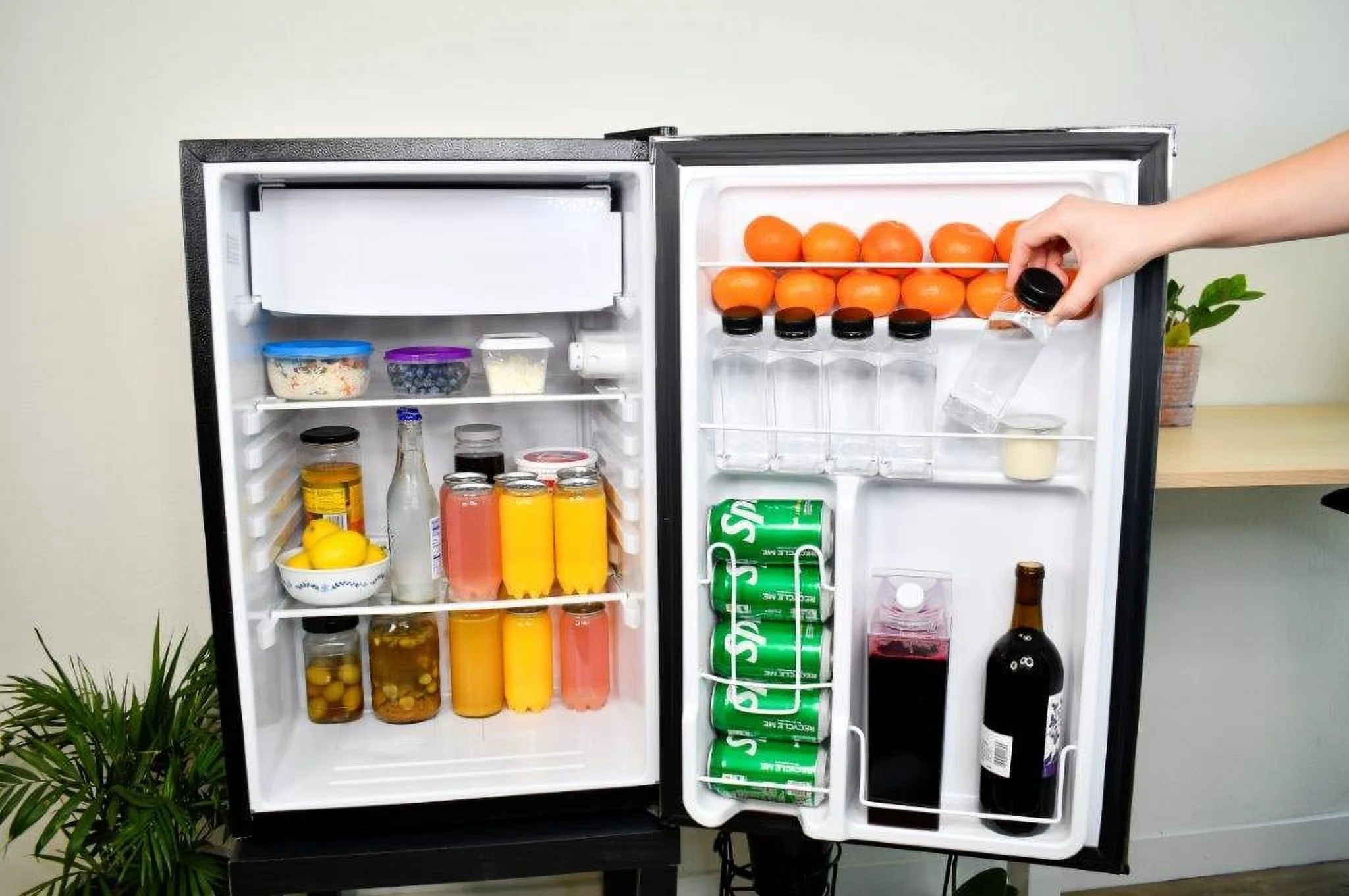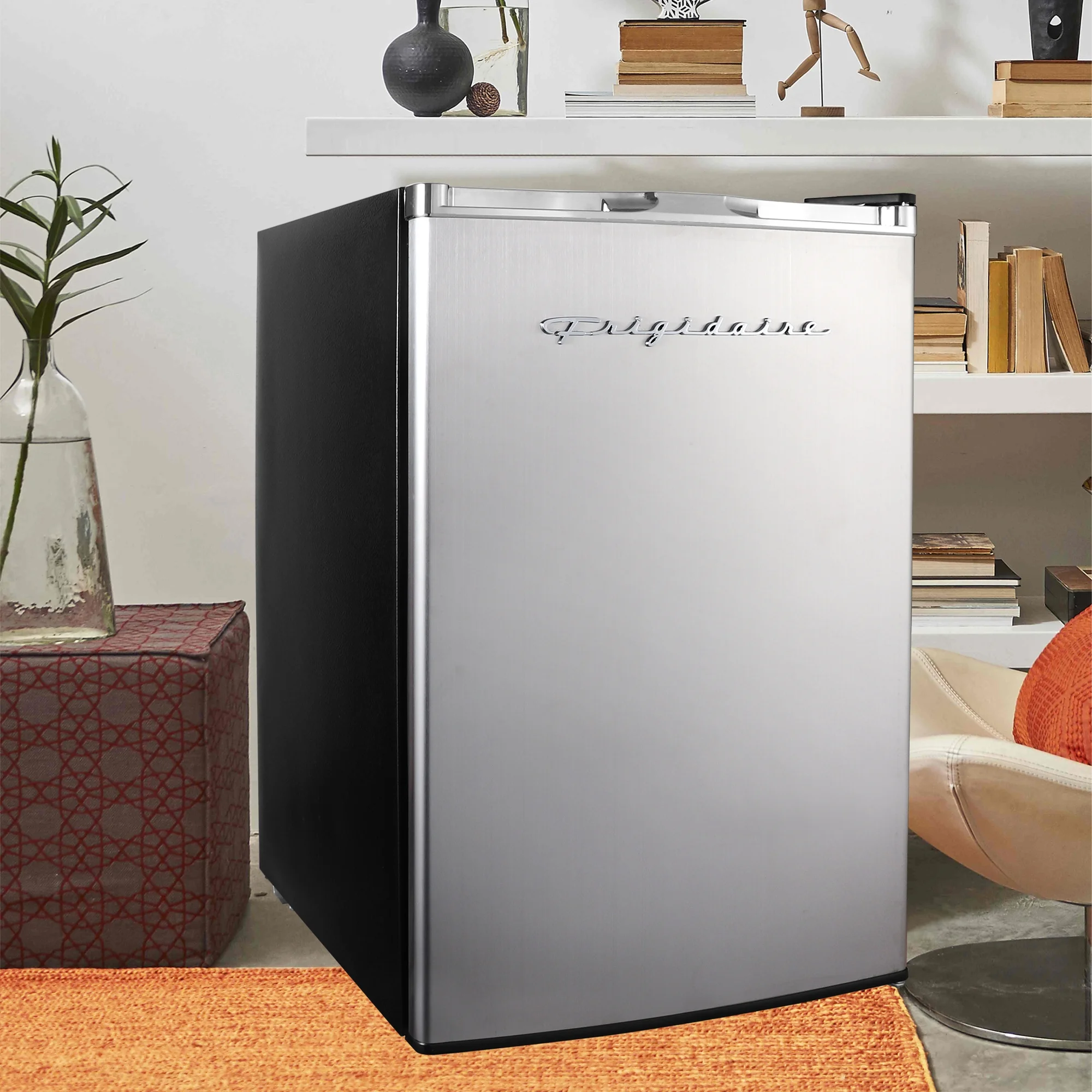 - Modern Aesthetic - Elevate your space with this stylish small fridge. The eye-catching design infuses a modern sleekness into any room. The compact refrigerator��s size and stylish design make it a great addition to your bedroom, office, or dorm room.