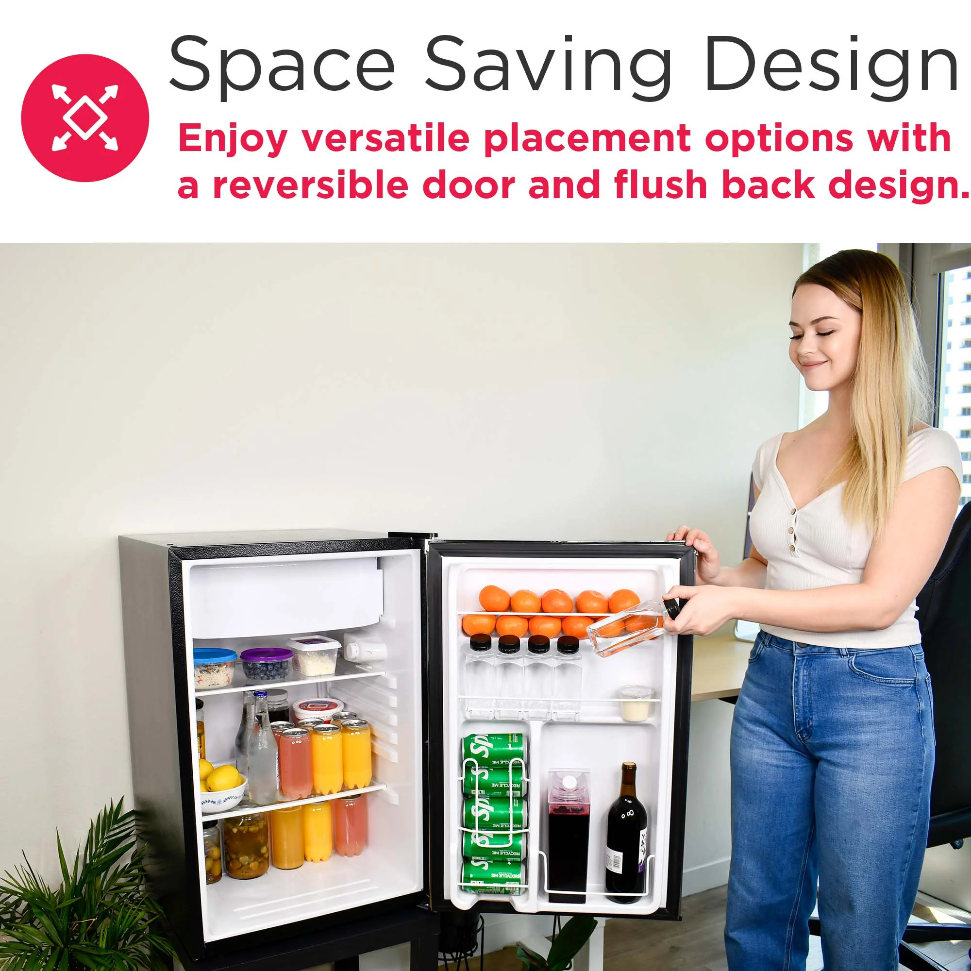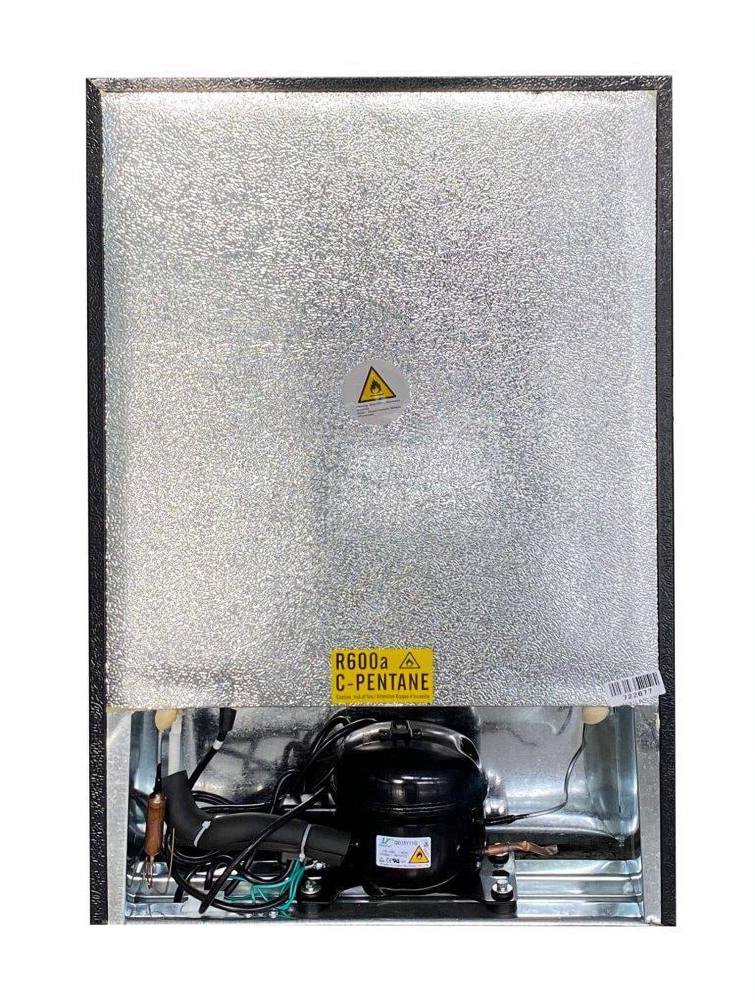 - Spacious Design - Featuring a 4.5 cu. ft. capacity, this compact fridge offers plenty of storage for bottles, cans, snacks, and more. The space-saving flush back design allows for seamless placement against walls, making it perfect for smaller spaces.