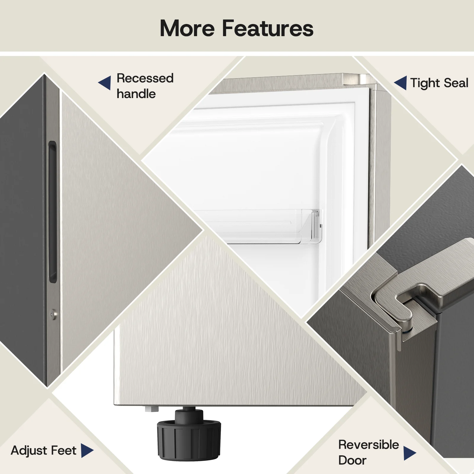 Tight Sealing Strip: The silicone sealing strip ensures that the cold air inside the convertible freezer/refrigerator does not escape, the temperature fluctuation is small, and the nutrition and flavor of the ingredients are perfectly sealed.