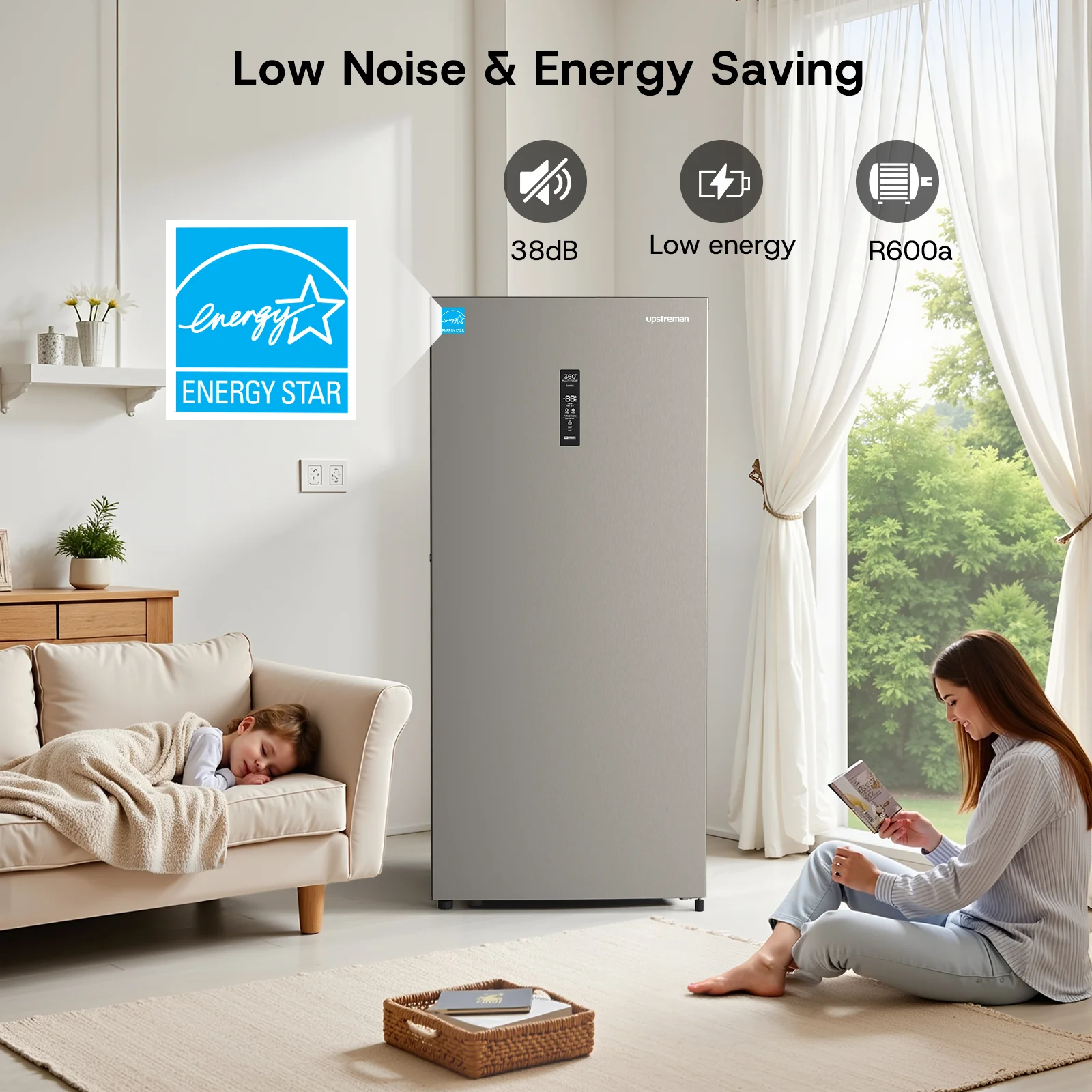 - Energy Efficient and Low Noise: The mart energy efficient system of convertible upright freezer automatically adjusts its operation based on load and ambient temperature, improve energy efficiency to help reduce electricity bills and environmental impacts, power consumption just 0.75kWH/day. The operating noise of deep freezer is only 38dB, which won't disturb your daily life and work, it is very suitable for home, office or small space.