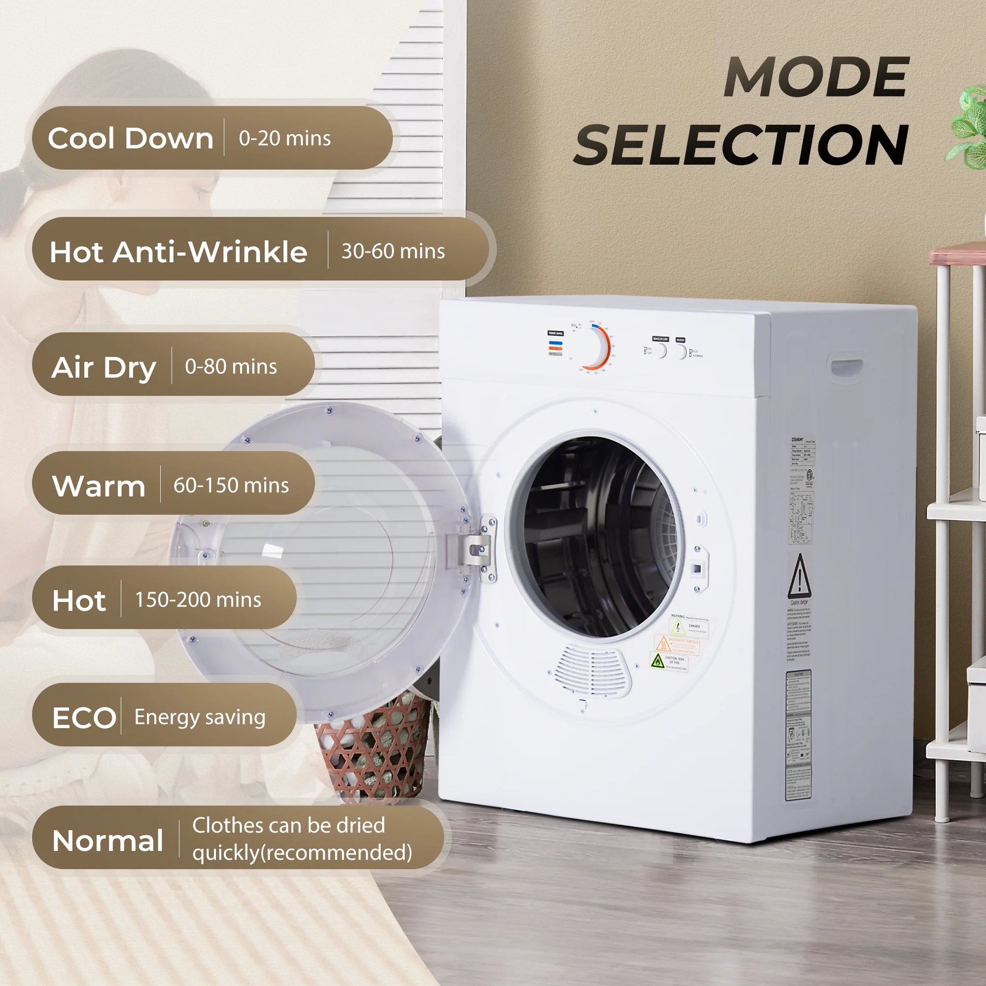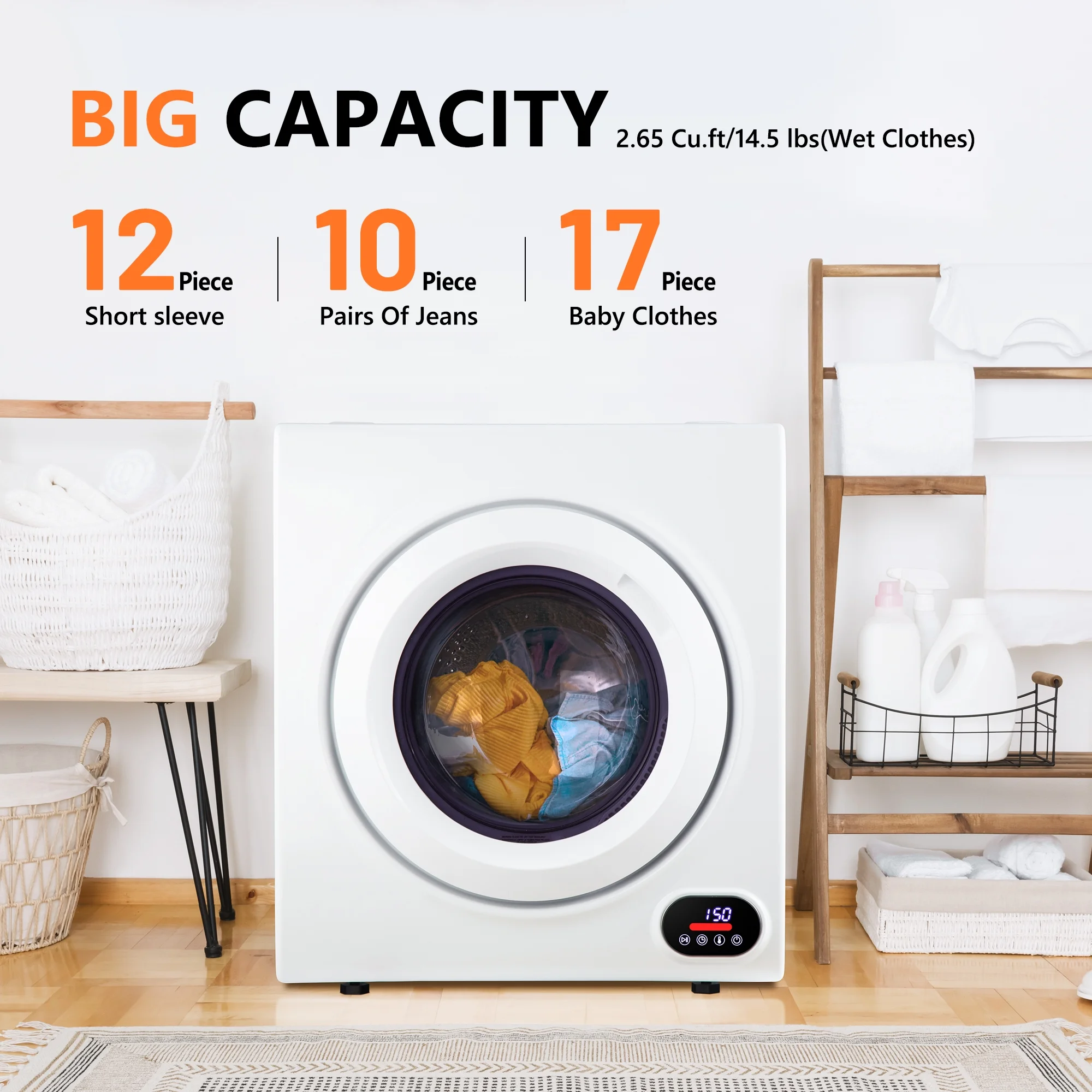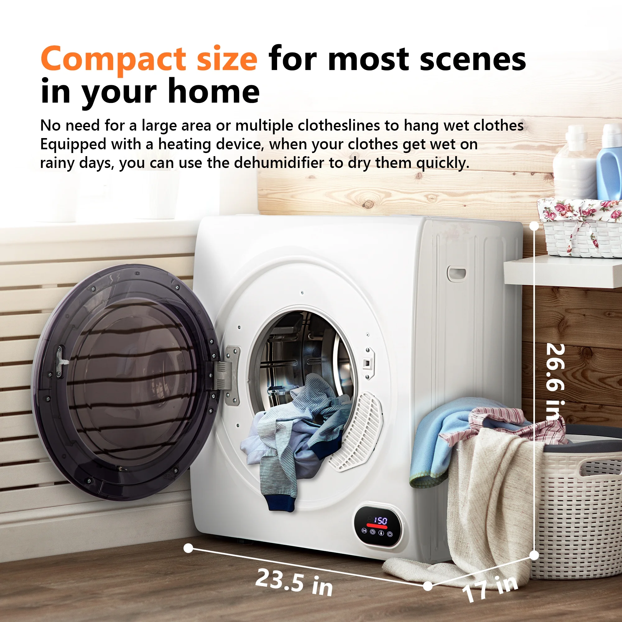 - Efficient Performance: Eliminate the hassle of drying clothes with our compact dryer. Featuring a spacious 1.79 cu ft capacity and a robust 1020W motor, it ensures rapid and efficient drying while maintaining the quality of your clothes.
