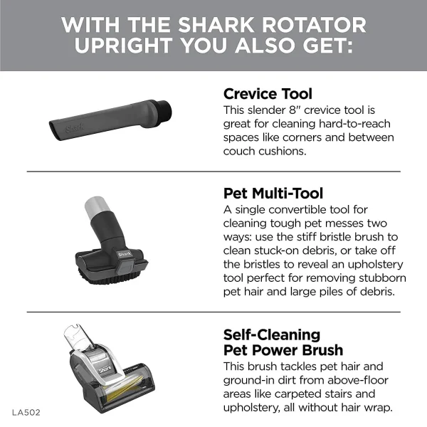 - Includes: Crevice Tool, Pet Multi-Tool, Self-Cleaning Pet Power Brush