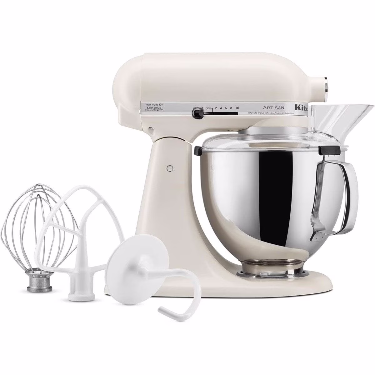 KitchenAid Artisan Series 5 qt Stand Mixer, Porcelain White with Flat Beater, Dough Hook, Whip