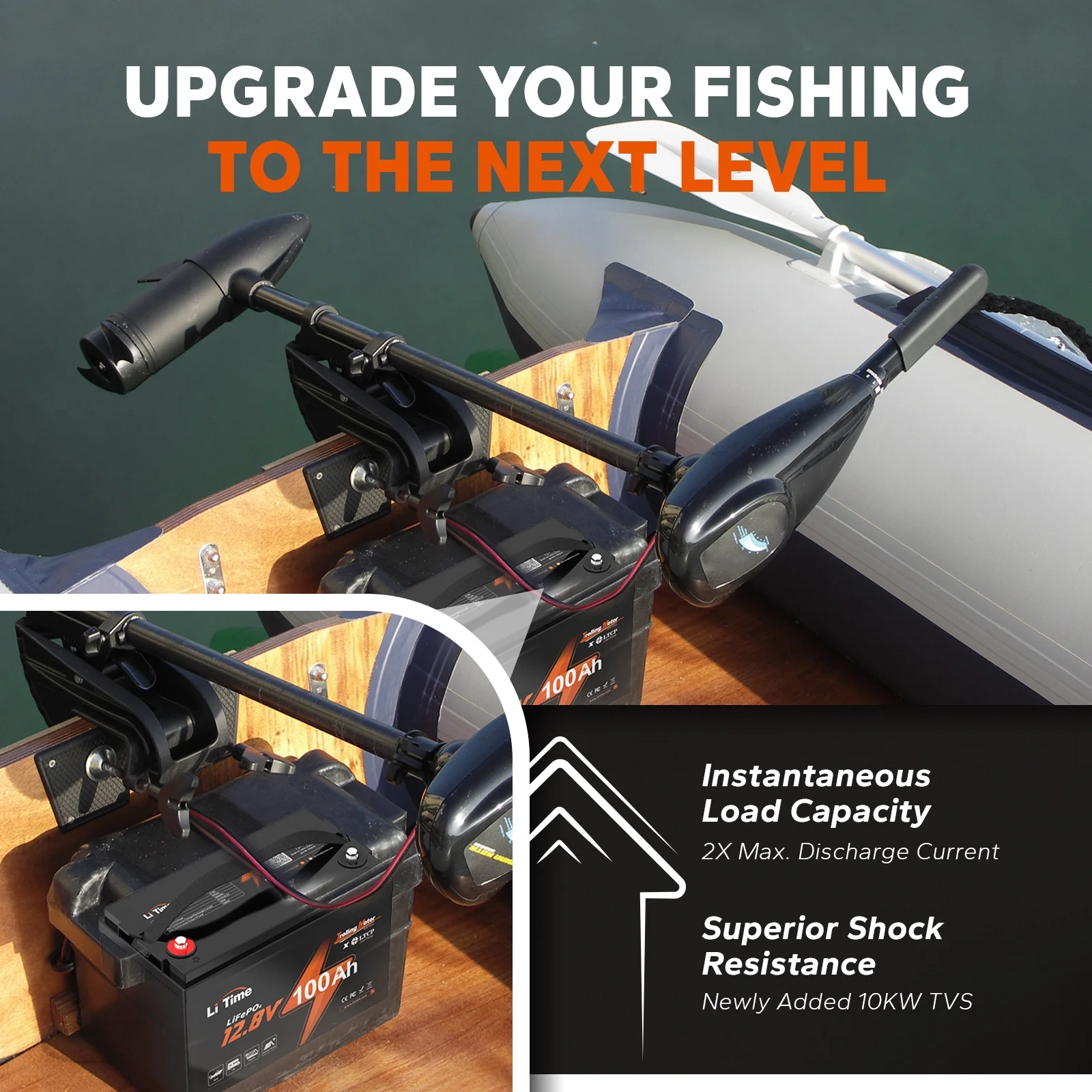 LiTime's upgraded 12V 100Ah trolling motors battery feature triple protection against dust, water. Coming with auto overload protection & recovery, the trolling motors battery, built-in TVS, ensure your battery and motor remain stable and protected in the rough waters. Each battery passes rigorous testing to ensure safety and performance. Benefit from expert support and a seamless experience with LiTime LiFePO4 batteries, backed by a dedicated team to assist you throughout your solar journey.