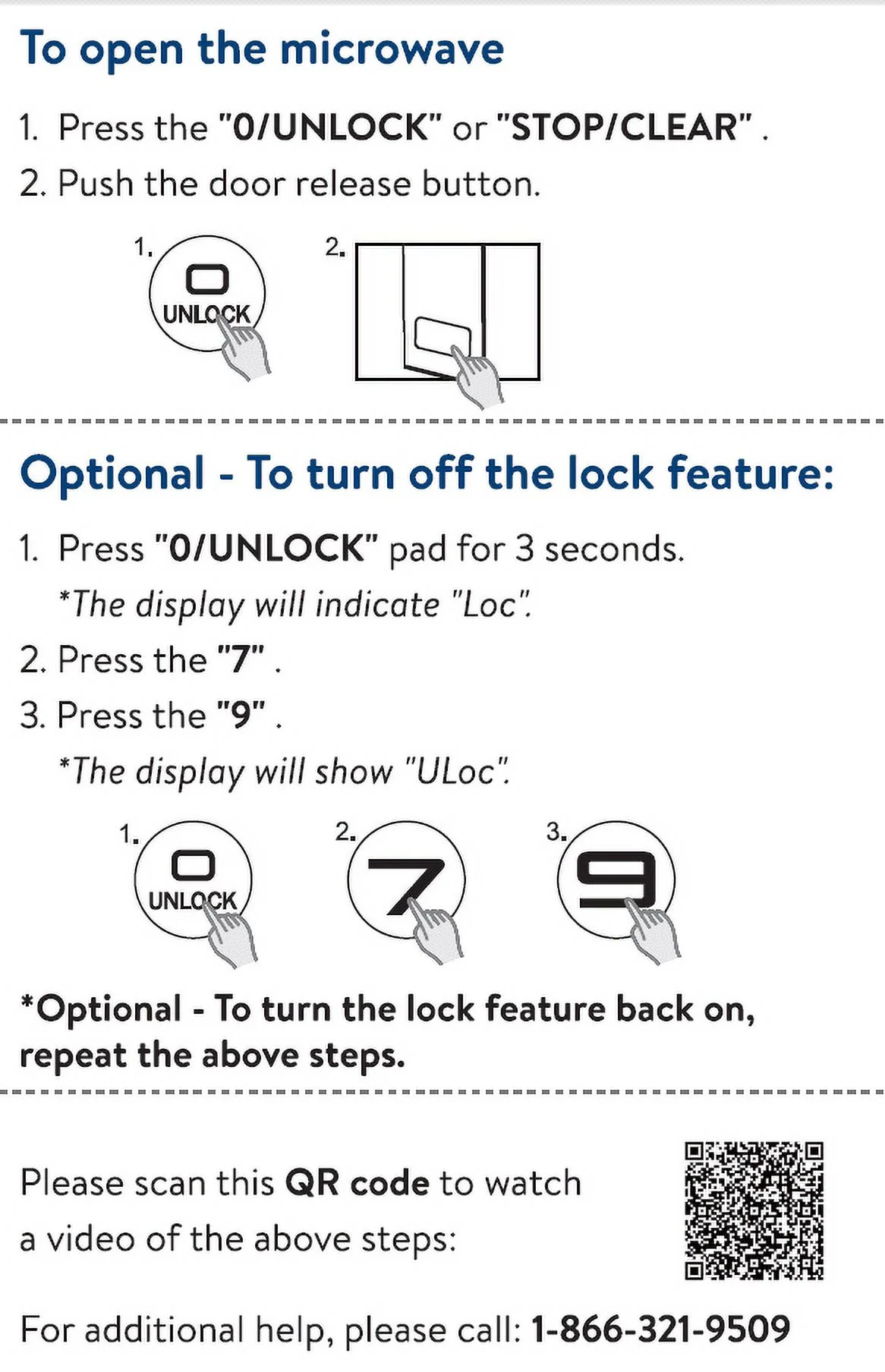 - Quick-Set Menus: One-touch buttons for potato, popcorn, pizza, frozen dinner, and reheat