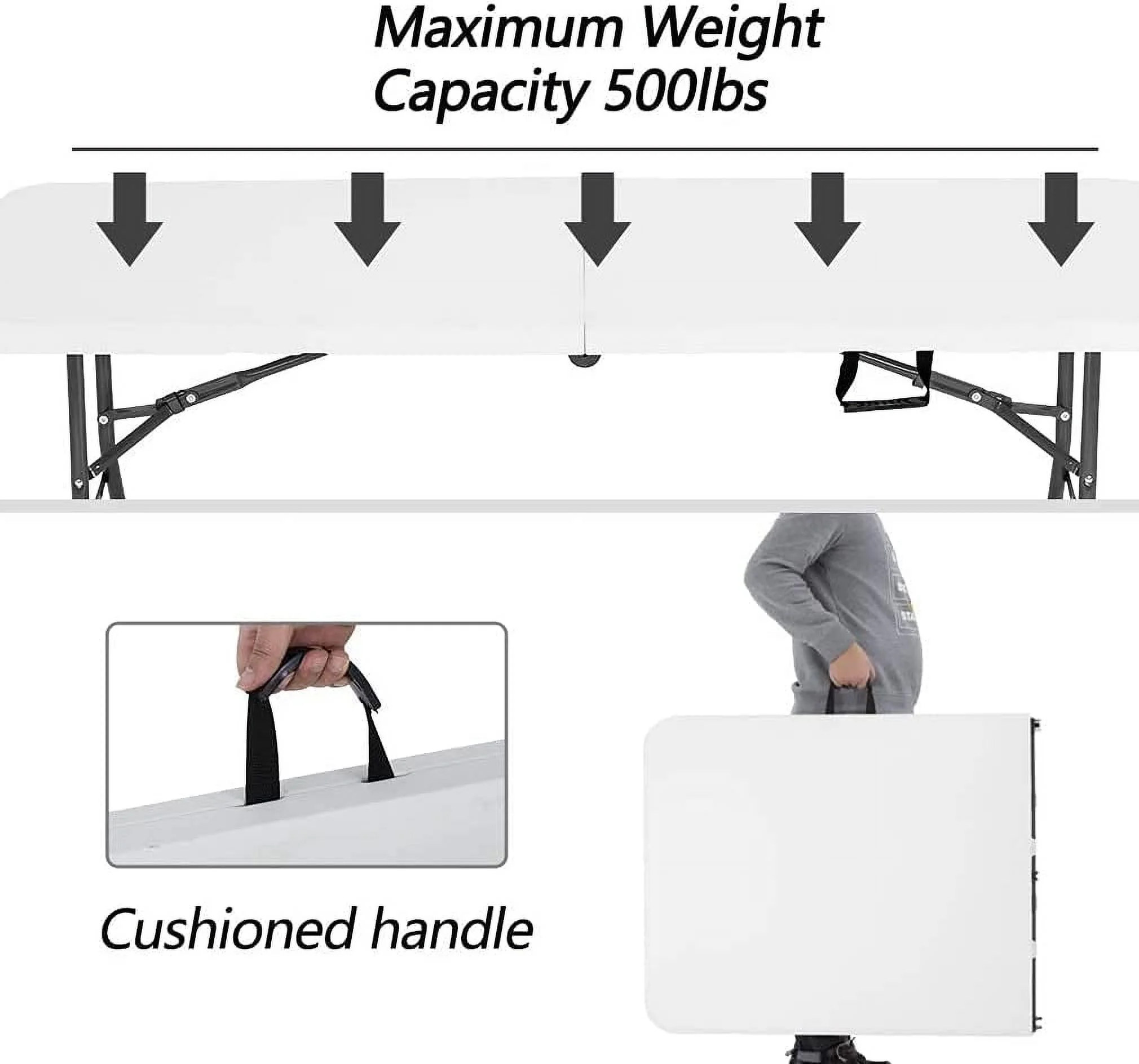 - ��Take The folding table to Anywhere��camping table comes with a handle, great for commercial use, parties, backyard events, traveling, family exercises, etc. You can take the plastic table to everywhere you want.