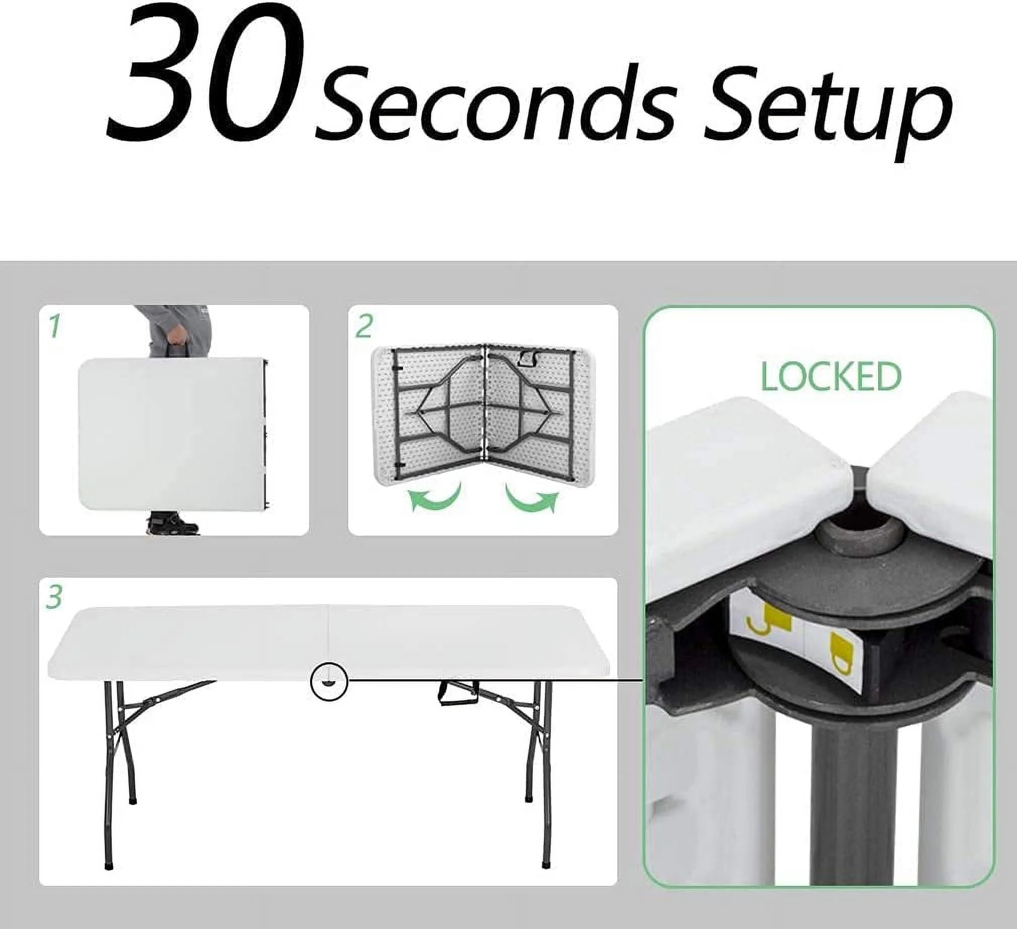 - ��No assemble needed��The folding table come fully assembled and folded of the camping table.You only need open the box,take out of the plastic table.Then you can use it.