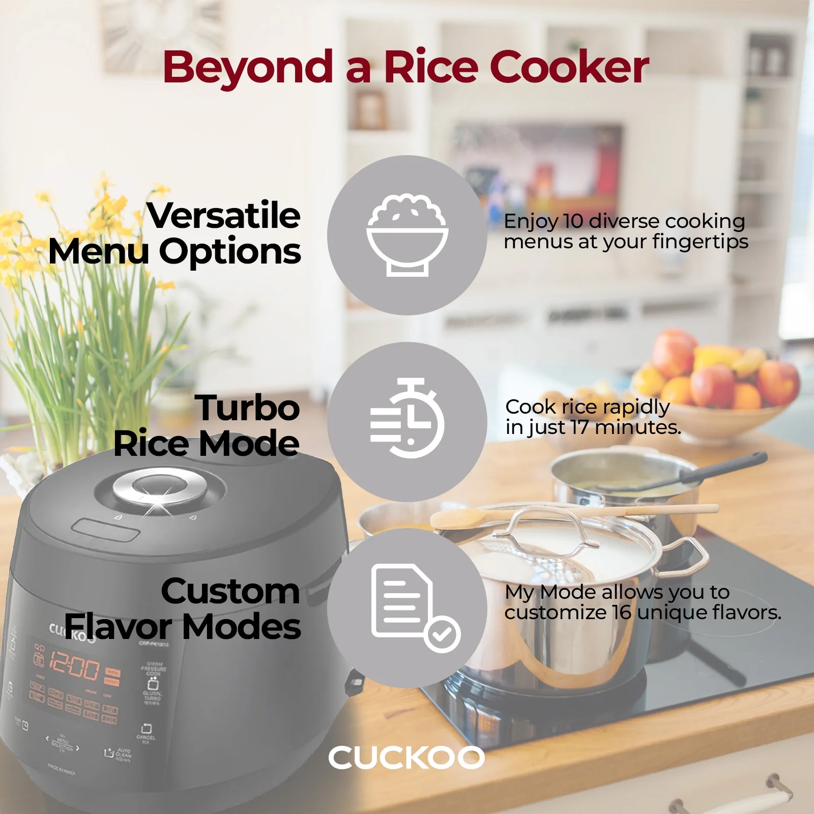 - ?Multi-Functional Cooking: This multi-functional cooker has 13 fully customizable menu options that allow a wide variety of meals, a reheat option for leftovers, and a keep-warm function to ensure none of your food is ever overcooked or burnt while serving.