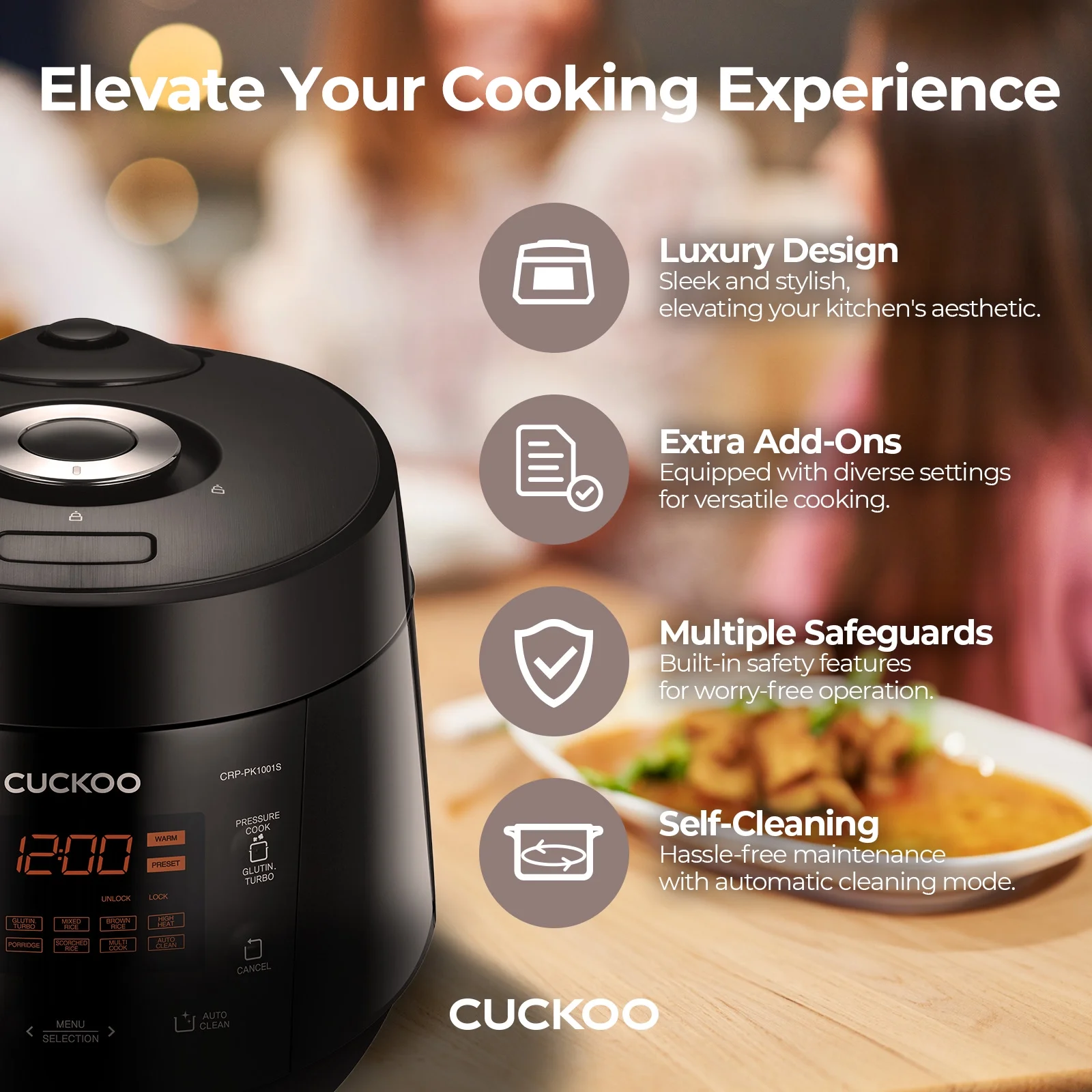 - Hassle-Free Cleaning: When cooking is completed, initiate the Auto-Clean function to automatically steam the interior of the rice cooker for a deep, quick clean.