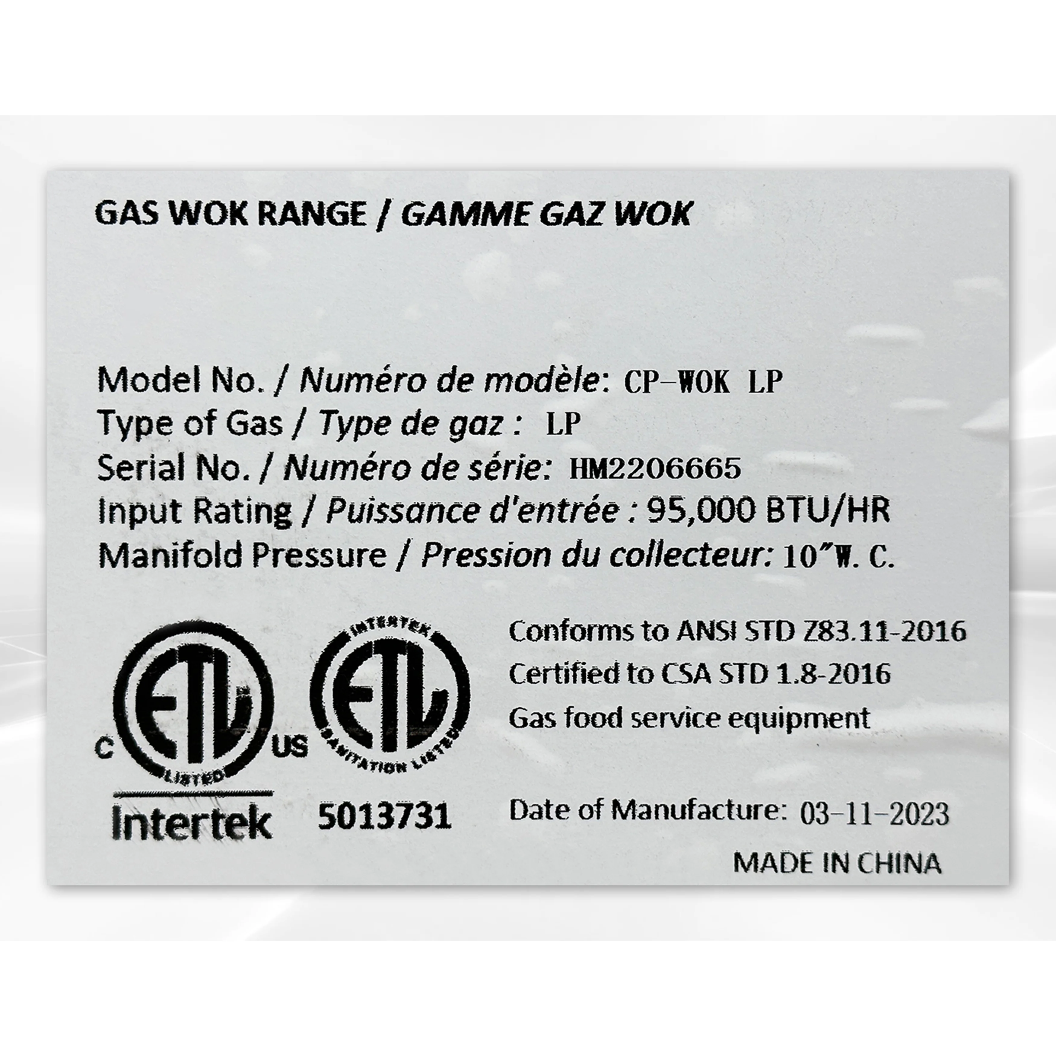 - 13'' and 16''(330 and 406mm) wok top sizes available