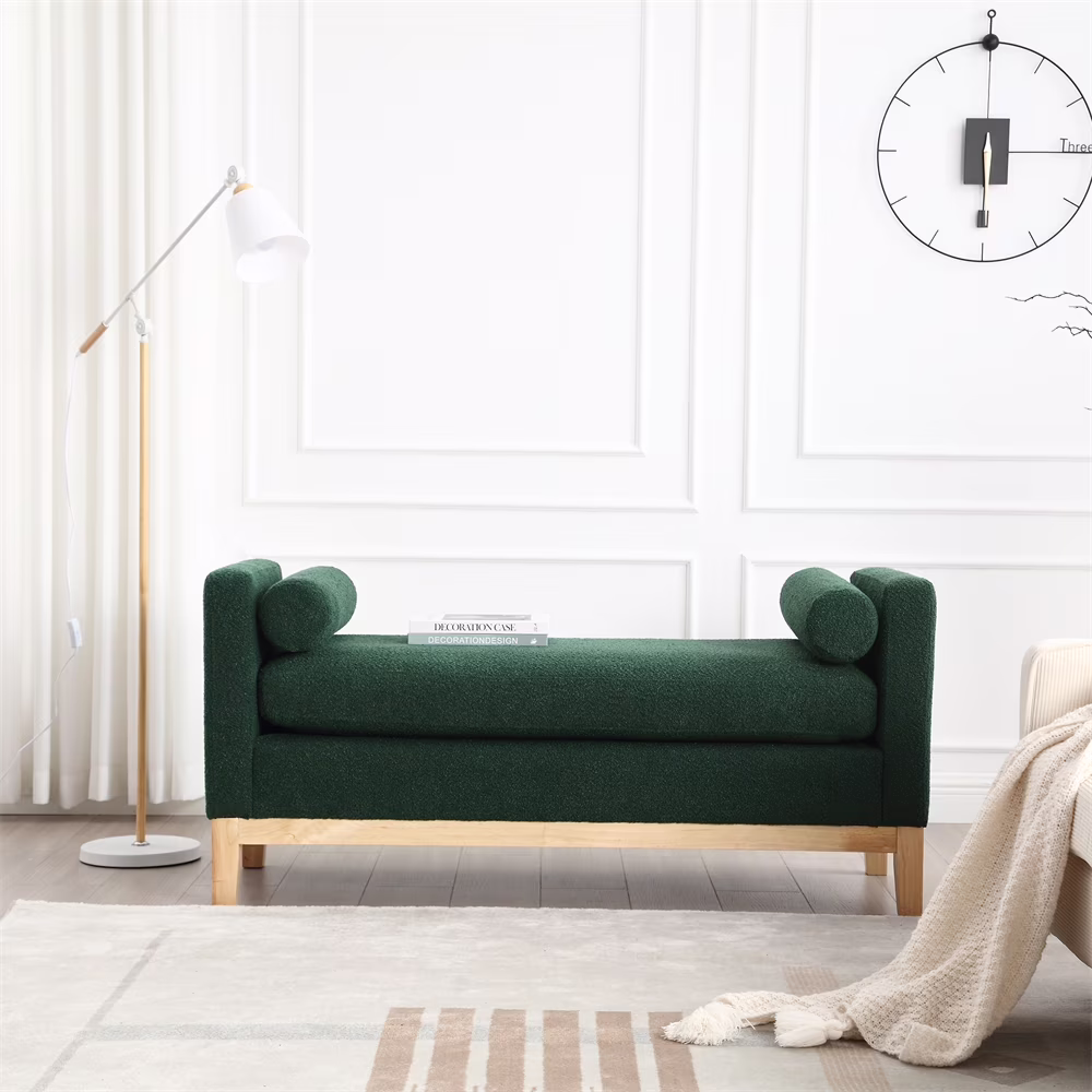 - [Fashionable Round Pillow Design]: This bedroom bench features a cute little pillow at each end that not only prevents the contents of the bench from falling out but also provides a support for your head and feet so you can rest comfortably on it.