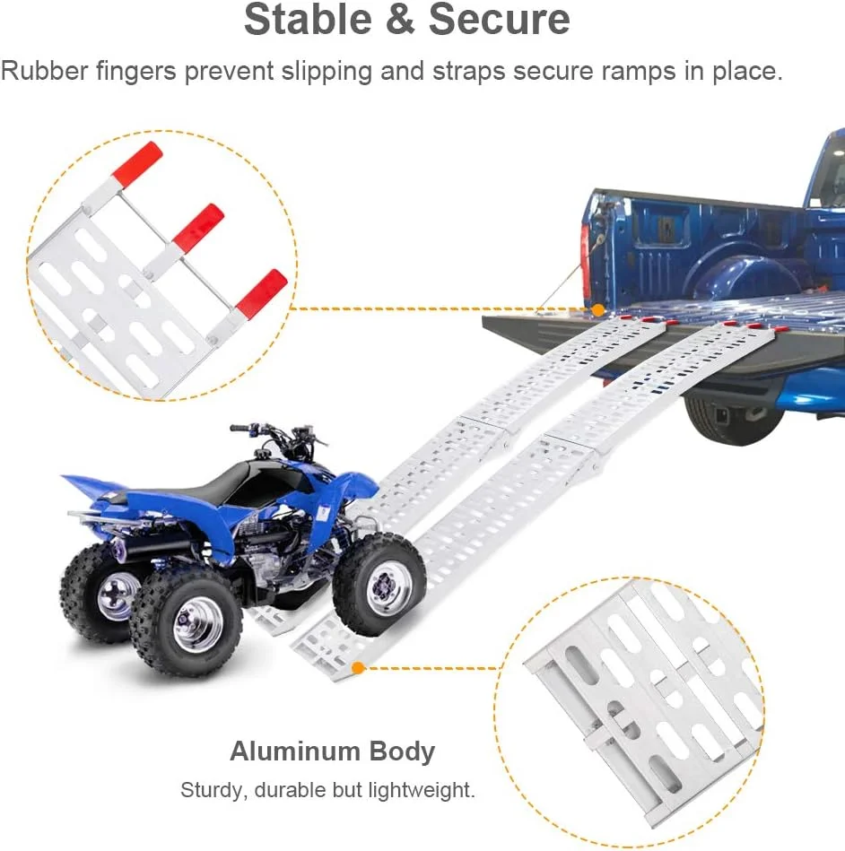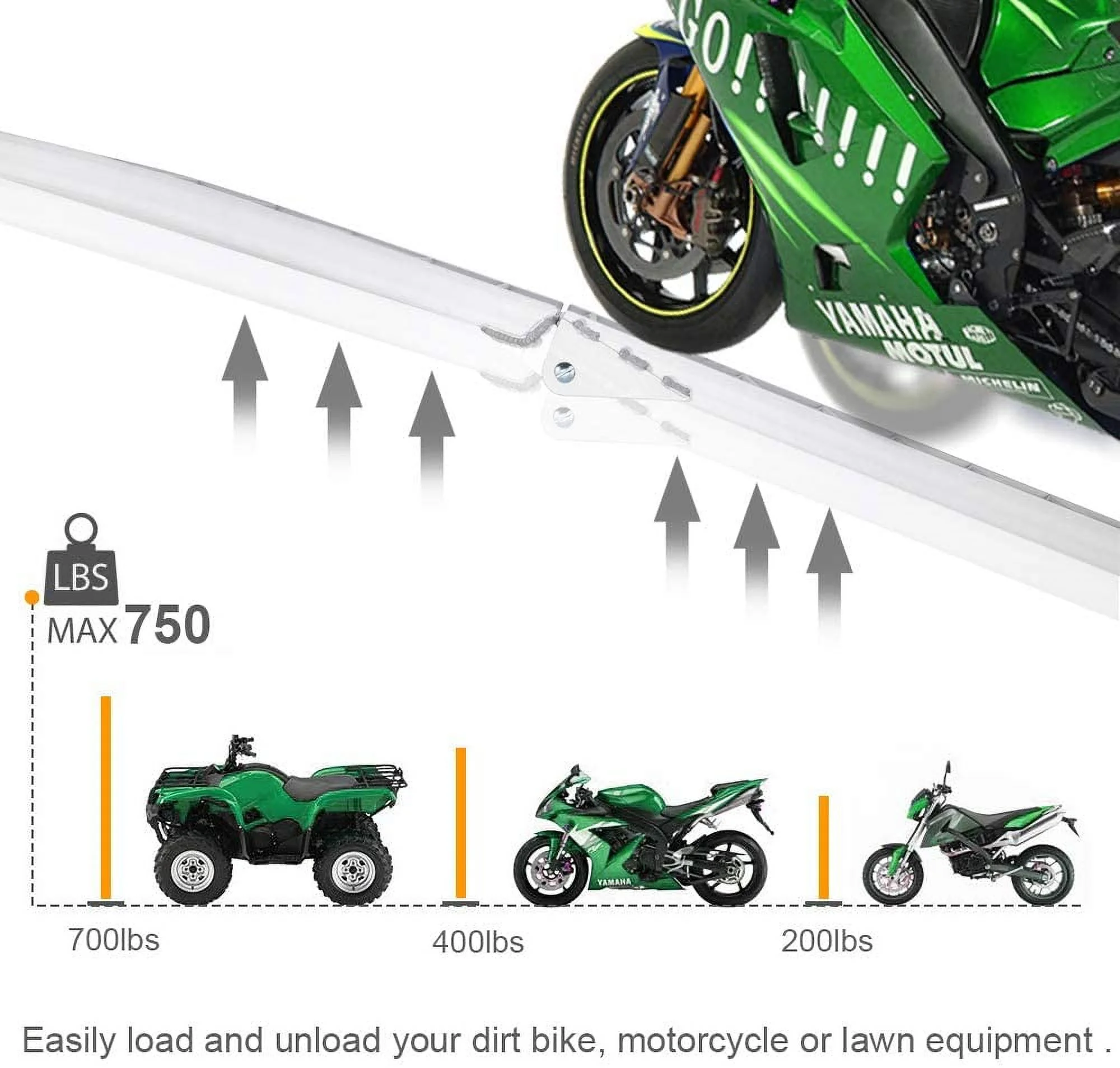 - Heavy Duty: Specially designed arched side of the ATV loading ramp allows you to load motorcycles weighing up to 750 lbs
