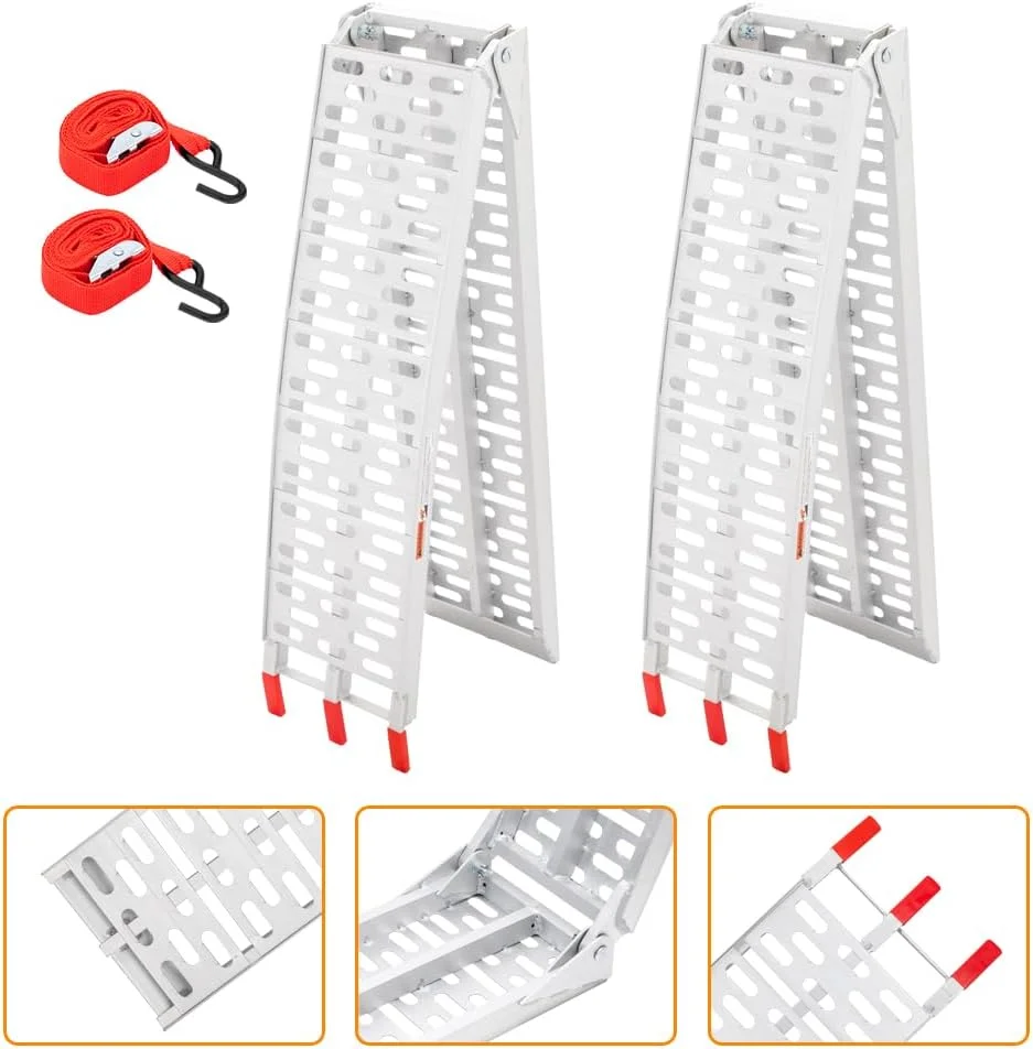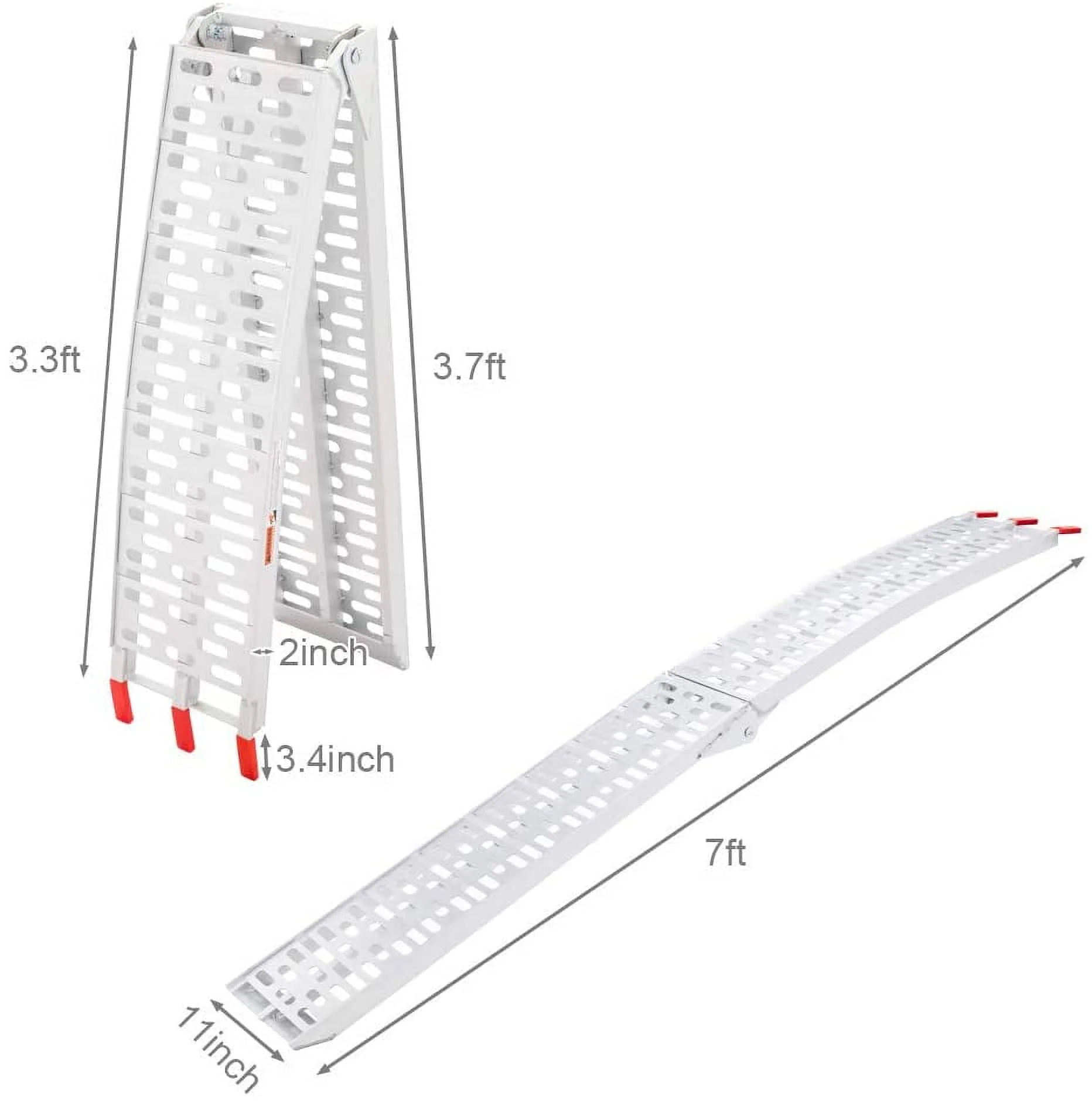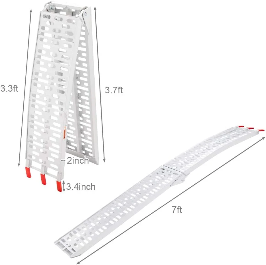 - Easy to Use & Carry: Made of aluminum, the truck tailgate ramp is durable yet lightweight. Simply unfold to use and fold to carry, making loading and unloading easier